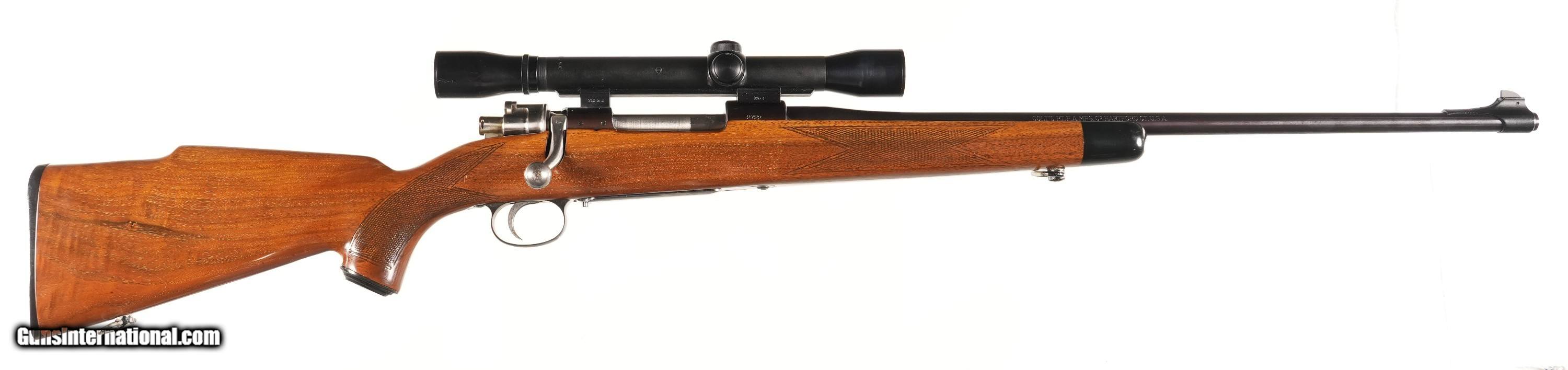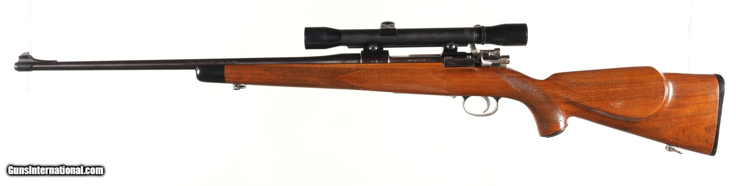 Description: Colt Model "57" Bolt Action High Power Rifle cal, 30/06 with FN Supreme action and varnished checkered walnut pistol grip stock with Rampant Colt monogrammed butt plate. Mounted with factory COLTMASTER 4 power scope. Introduced in 1957 by Colt using FN Supreme action in cal 30/06 & 243 with total production of 5000 rifles. Condition, Metal is very fine with 97% finish, Bright bore and mechanically fine Stock is very fine as refinished. Optics are slightly cloudy • Free Shipping, No Credit Card Fees. • Lay-a-way available for this firearm. • 1/3 Down, a 1/3 in 30 Days, 1/3 in 60 Days. SOLD Curio/Relic: Yes Manufacturer: Colt Model: 57 Serial Number: 2722 Barrel Length: 22 |