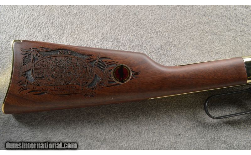 Description: Thoughtfully crafted in honor of true pillars of society. Unique engravings along the receiver. Etched tributes on stock. Henry Tribute Rimfire Rifles are an intricately detailed rifle collection thoughtfully crafted in honor of true pillars of society, Firemen. Features unique engravings on the receiver, and the stock displays tributes. Brass buttplate. Blued barrel. This is number 14 of 25 made for the Minnesota Volunteer Firerighters. This rifle is as new in box and unfired since leaving the factory. SOLD Manufacturer: 2013 Caliber Info: .22 S, L, LR Chambers: Lever action repeater. Metal Condition: ANIB Wood Condition: ANIB Bore Condition: ANIB Barrels: 20 Inch Octagon with sights. Triggers: SIngle blue. Stock: American walnut, the stock displays tributes with etched images. Stock Dimensions: 14 Inch LOP. Fore End: Matching American walnut. Butt Pad: Brass butt plate Weight: 6 Lbs 8 Oz. Sights: Adjustable rear buckhorn sight, beaded front sight. Extras: Comes with the factory box. Item Location: Owatonna, MN |
