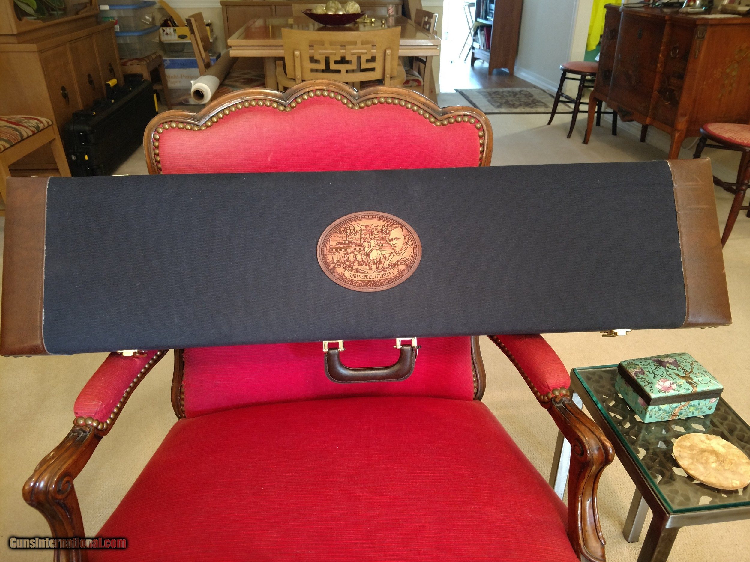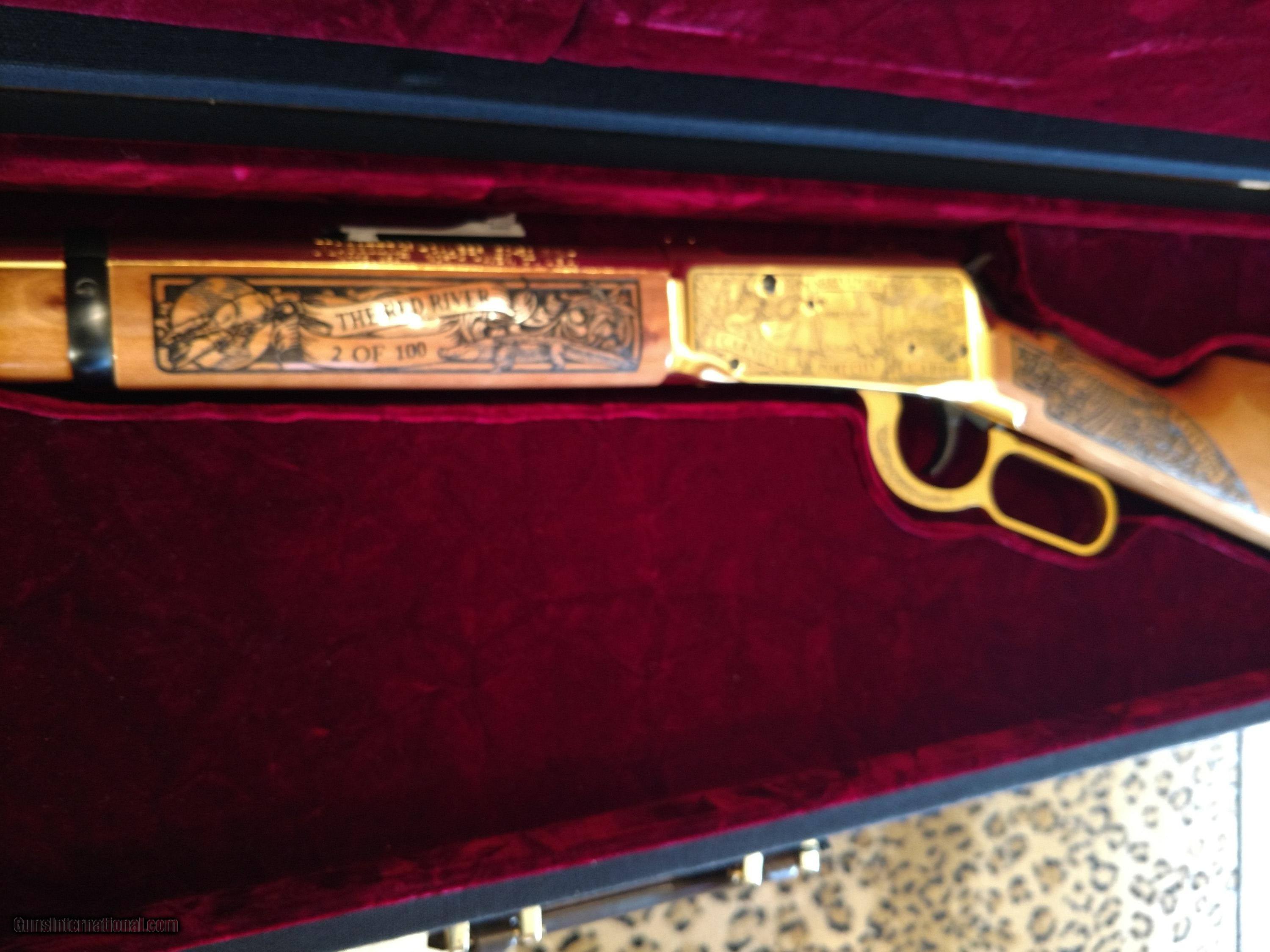 Description: MOSSBERG MODEL 464 iconic lever action .30-30 rifle presented by American Legacy Firearms. This Shreveport Heritage Rifle is #2 of only 100 produced, finished in 24KT gold plating with high gloss American birch, 20" barrel including a custom made French fitted carrying case with crushed maroon velvet interior! This fully functional beauty is seven years old but basically new in box, never been shot. This rifle commemorates the rich and vibrant history of Shreveport, Louisiana, Captain Henry Shreve, The Red River Industries and celebrations such as Mardi Gras. A rifle any historian or Louisiana enthusiast would be proud to own. This rifle sold new for $2365. I am offering the entire package for $1950 including FedEx shipping to your FFL dealer. Please call or text me at 318-780-4242 if you are interested. Sold SOLD Manufacturer: MOSSBERG Model: 464 Serial Number: LA040720 Barrel Length: 20 Ejectors: Lever action Condition: Flawless Metal Condition: Flawless Wood Condition: Flawless Bore Condition: Flawless Action: Lever action Triggers: Single Stock: Polished birch Butt Pad: Factory LOP: 14 inches Finish: 24KT GIKD Sights: open target, adjustable Manufacture Date: 2014 Engraving: extensive Extras: Luggage style carry case Case: luggage style carry case Item Location: Shreveport, Louisiana |