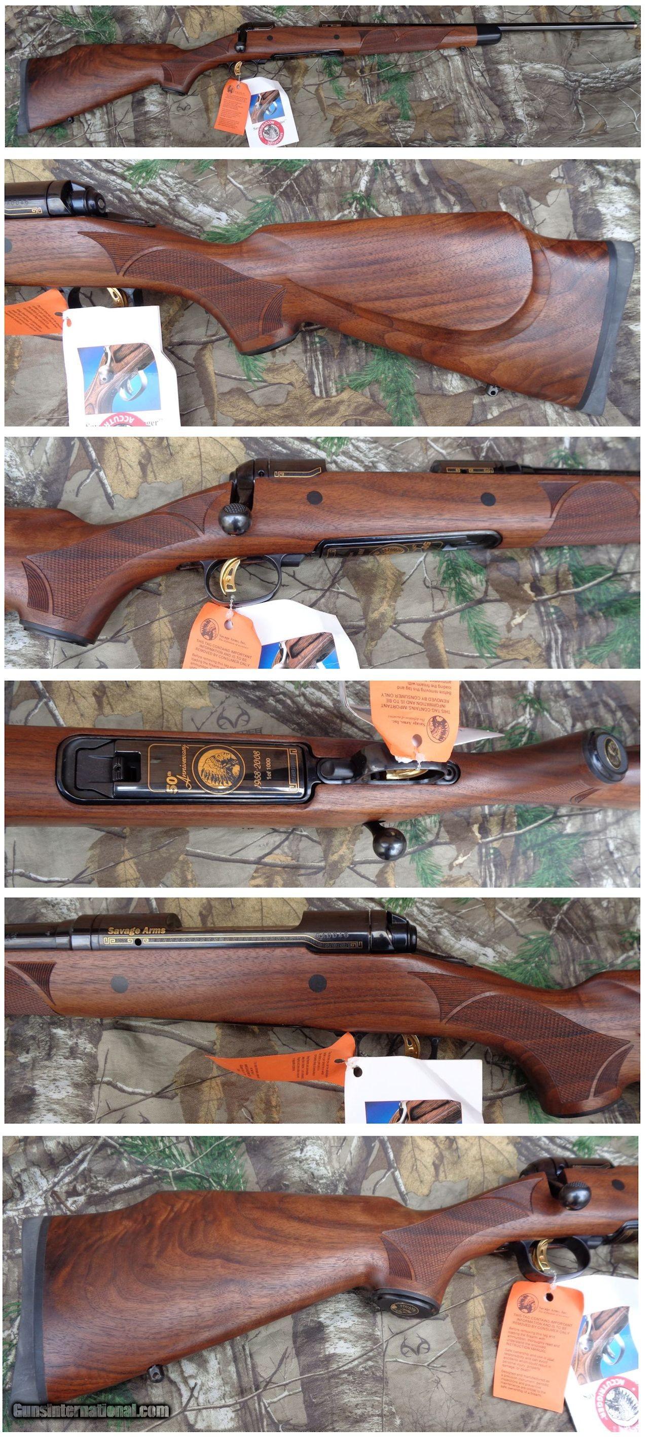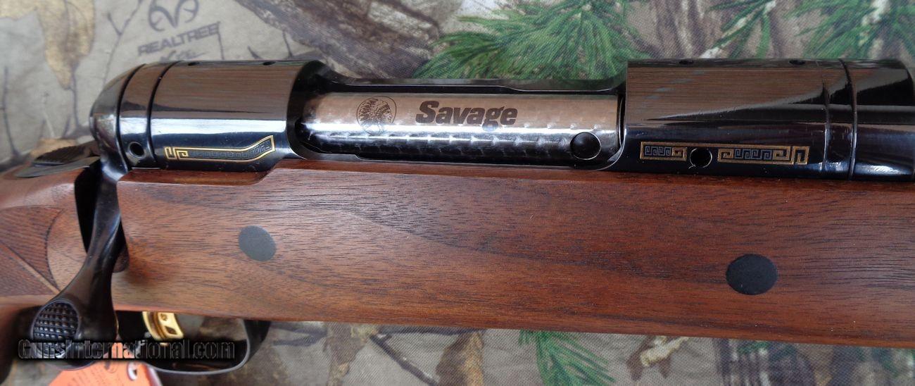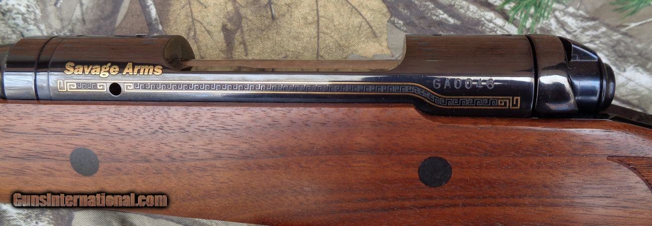 Description: *** SOLD *** SOLD *** Mint condition "Collector grade", made only in 2008, Savage Model 10 50th Anniversary Commemorative (serial # GA0046) in the 300 Savage with 22" barrel remaining as new and unfired. This limited run, 1 of 1000, special edition rifle features a high luster blued action and barrel, high-grade hinged steel floor plate with 24-karat Indian Chief gold plated engraving and 50th Anniversary markings. Scroll engraving on both sides of the receiver, 24 karat gold plated double barrel rings and a 24 karat gold plated Accu-trigger. High grade American black walnut Monte Carlo stock, with cheekpiece, having lots of figure, unique checkering pattern, and a Savage embossed recoil pad. Don't let this gorgeous Savage rifle get away from you. Look at the pictures, and then call or e-mail to make it yours! $60 S&H to most of the lower 48. Eight far west states at $70 S&H. Post office money orders preferred for payment, but I will accept checks with 2 or 3 days to clear. Consignment gun-no return. A six month lay-a-way is available !! SOLD Rifle Caliber: .300 Savage Manufacturer: Savage Model: Model 10 50th Anniversary Serial Number: GA0046 Metal Condition: as new Wood Condition: as new Bore Condition: as new Action: bolt Triggers: Accu-trigger Stock: high grade American walnut Manufacture Date: 2008 Engraving: yes Extras: 50th Anniversary model |