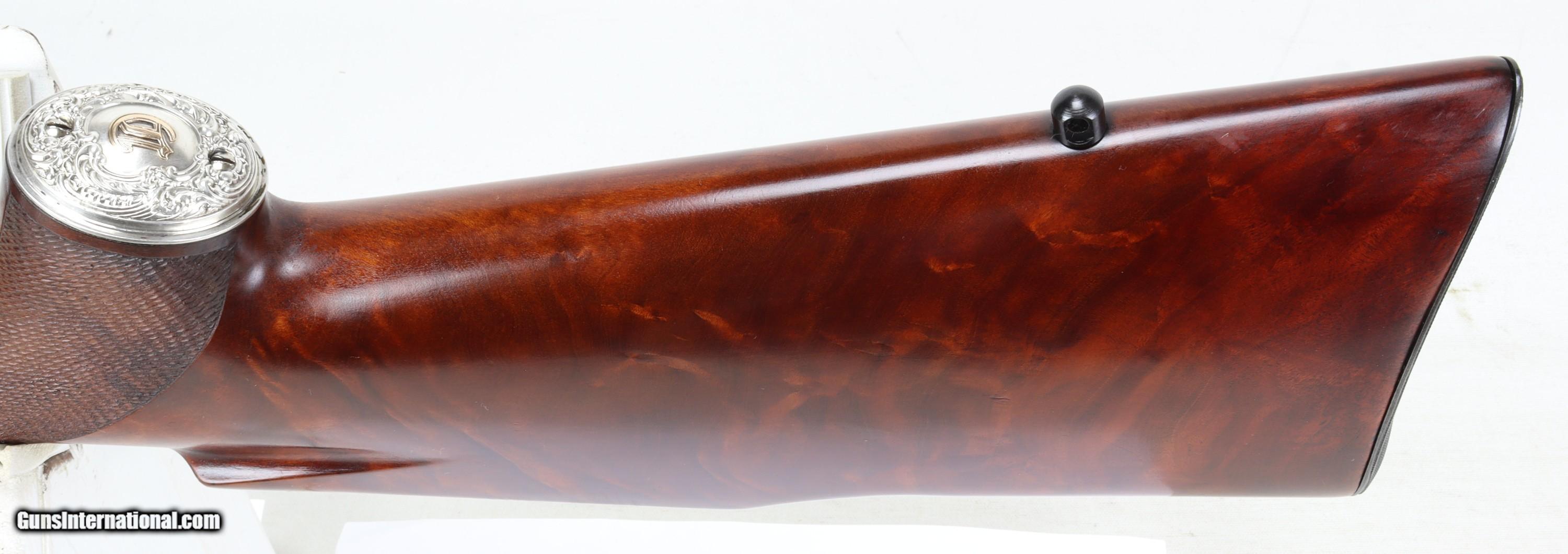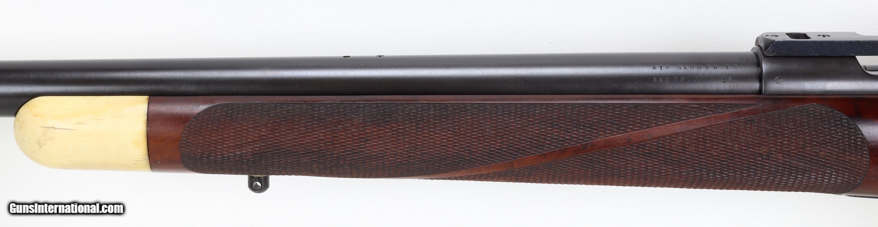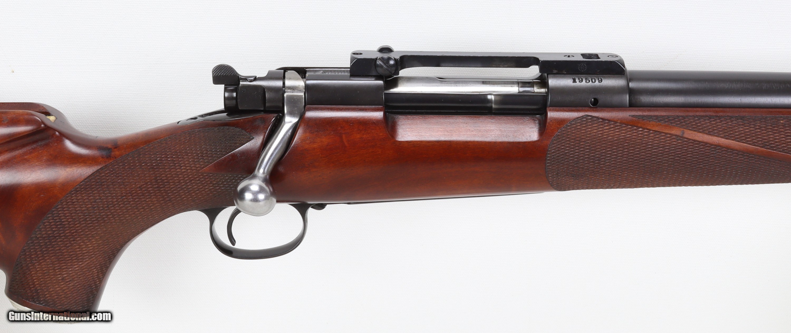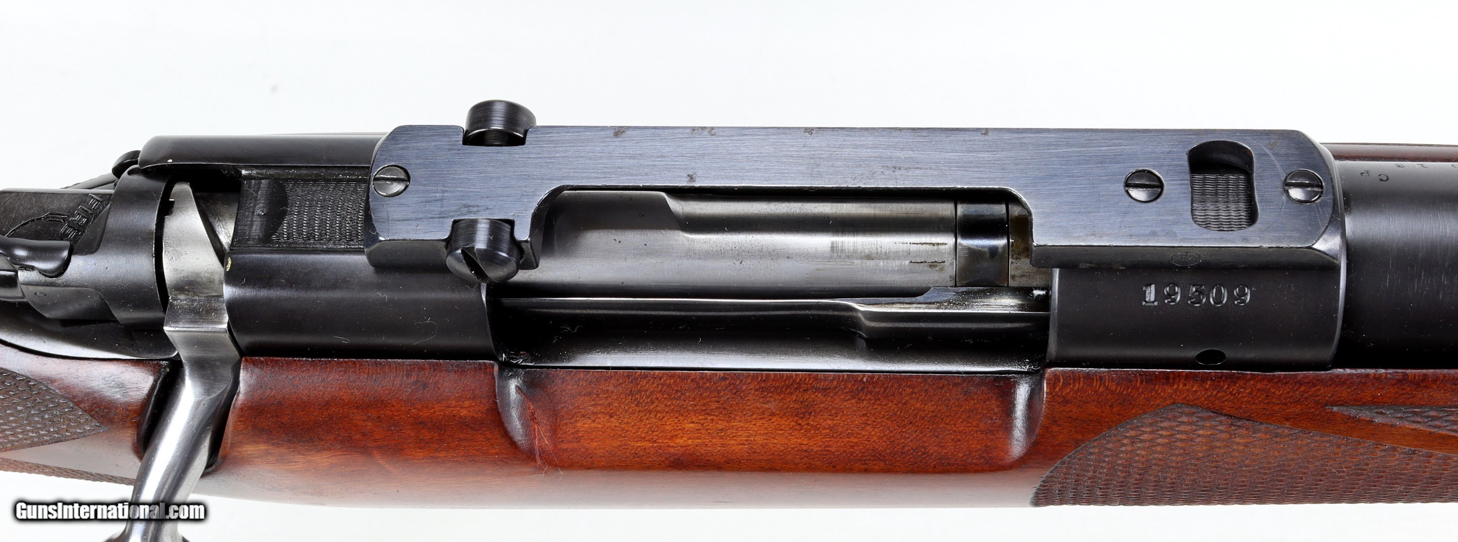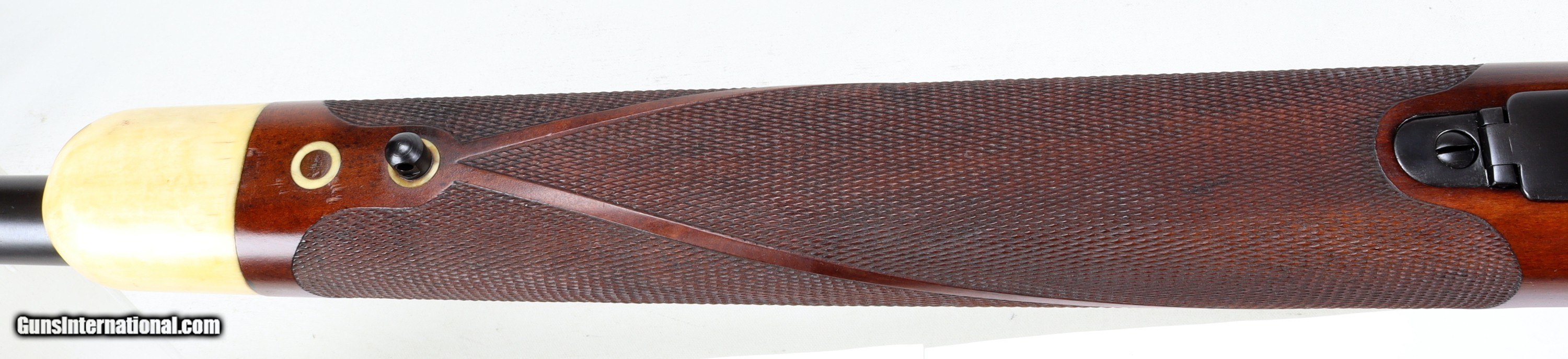 Description: WINCHESTER Model 70, Pre-64, SN# 19509, Mfg: 1939, .220 Swift, 26" Heavy Douglas Barrel, Marked, H.W. Creighton, C P, (Creighton Proofed), Fitted by Nashville, Gunsmth in 1985. Stock is Custom English Walnut Stock w/13 3/8 LOP. , by Hal Hartley, Lenoir, NC in 1984, "EXCEPTIONALLY BEAUTIFUL", WITH IVORY FOREND, Beautiful Checkering, Sterling Silver Pistol Grip Cap. The Butt Plate is Checkered, and has a Cleaning Kit Pocket. Original Sights Removed, and has Redfield Scope Base, Excepts Twist on Rings. This in an "EXCEPTIONAL TARGET RIFLE, BEAUTIFUL AS WELL. Ships to Lower 48, with Insurance: $100.00 Weight: 11lbs, Trigger Pull 1 1/2 oz, Minimum Travel. The Barrel and Receiver have been Re-Blued. ADDITIONAL PICTURES AVAILABLE ON REQUEST. Sold pending Receipt of Funds SOLD Curio/Relic: Yes |
