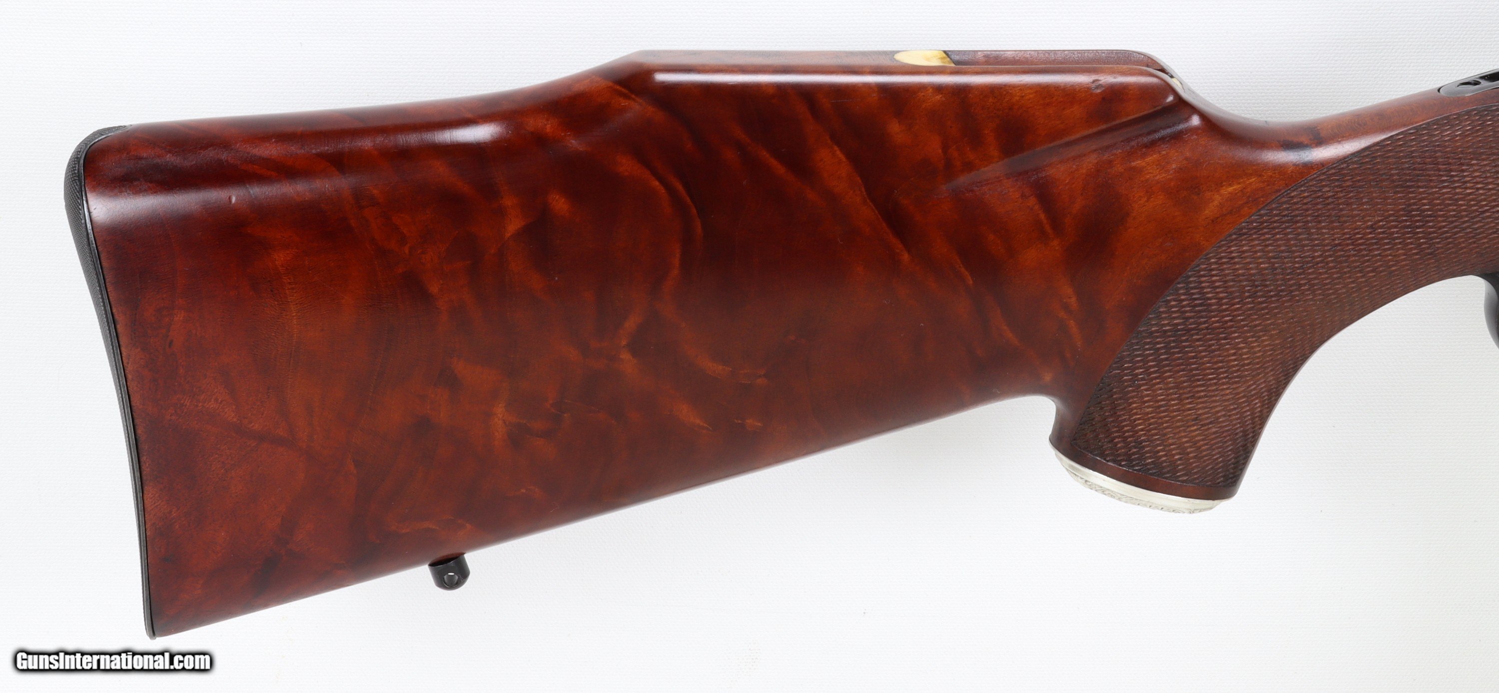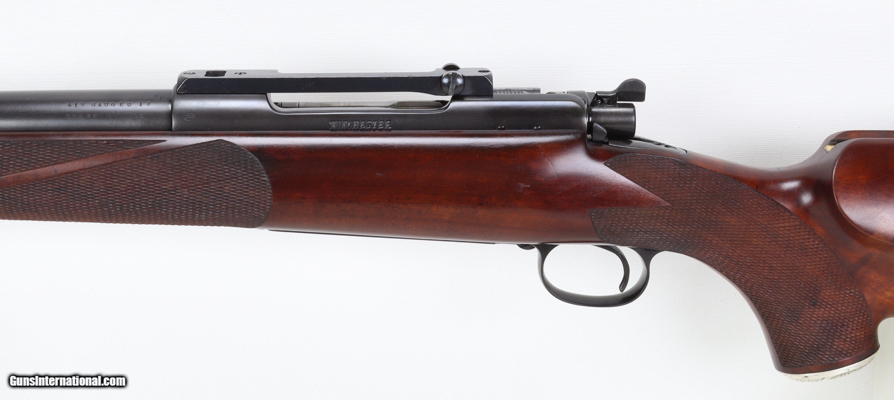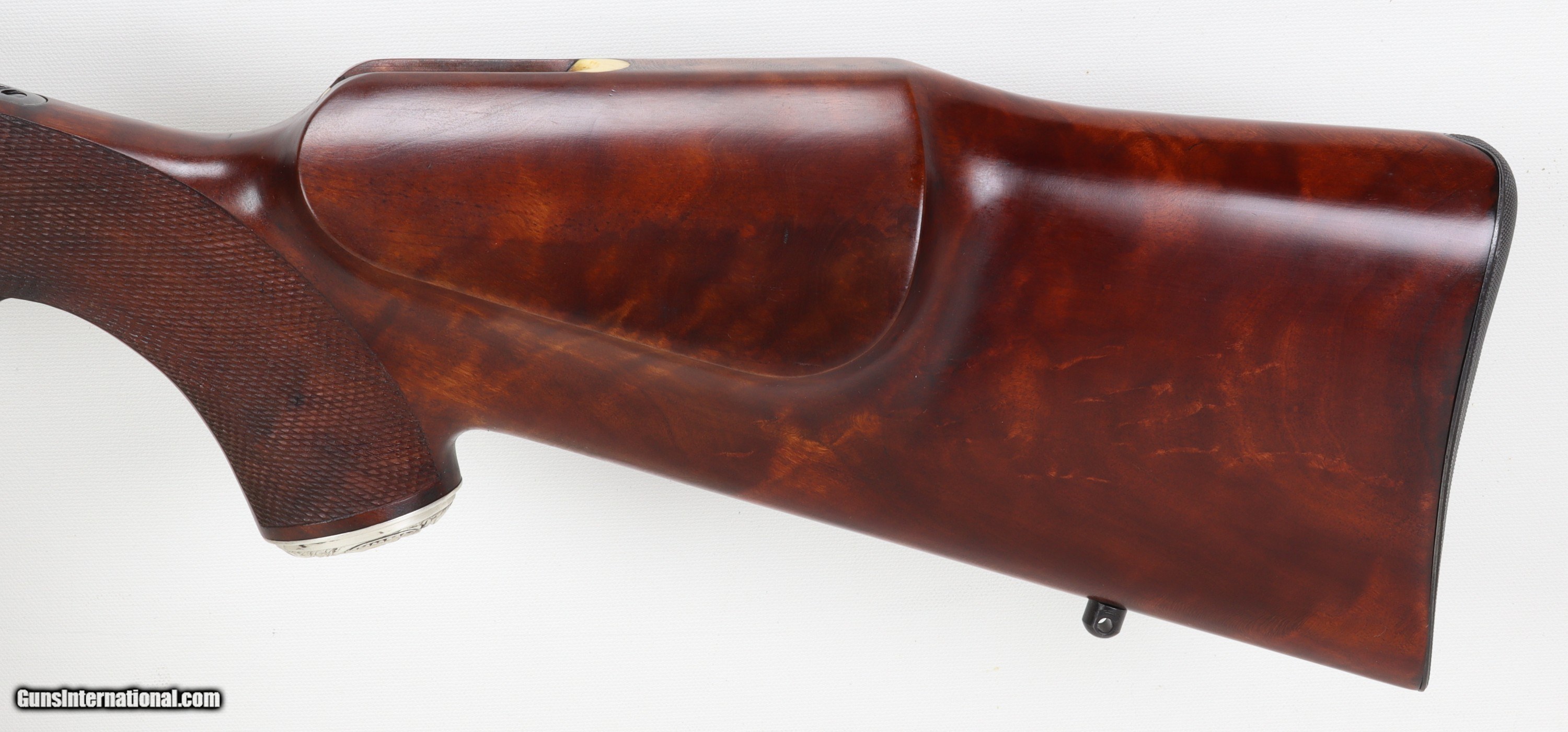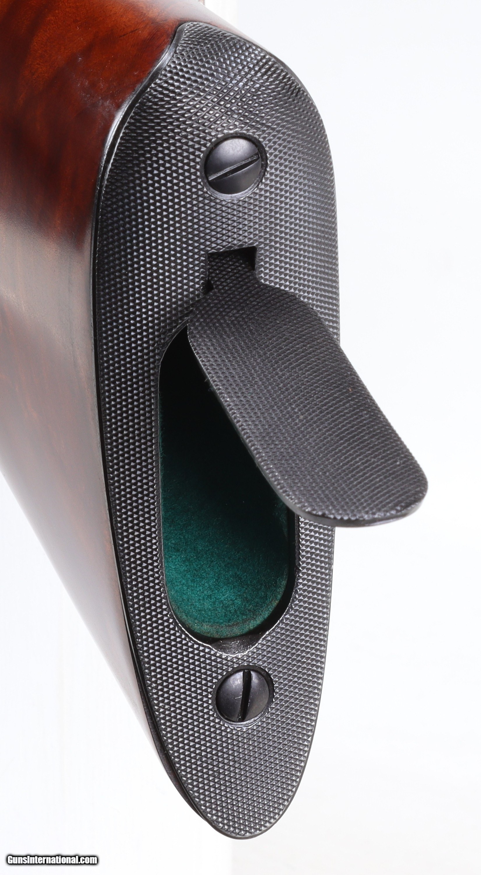 Description: WINCHESTER Model 70, Pre-64, SN# 19509, Mfg: 1939, .220 Swift, 26" Heavy Douglas Barrel, Marked, H.W. Creighton, C P, (Creighton Proofed), Fitted by Nashville, Gunsmth in 1985. Stock is Custom English Walnut Stock w/13 3/8 LOP. , by Hal Hartley, Lenoir, NC in 1984, "EXCEPTIONALLY BEAUTIFUL", WITH IVORY FOREND, Beautiful Checkering, Sterling Silver Pistol Grip Cap. The Butt Plate is Checkered, and has a Cleaning Kit Pocket. Original Sights Removed, and has Redfield Scope Base, Excepts Twist on Rings. This in an "EXCEPTIONAL TARGET RIFLE, BEAUTIFUL AS WELL. Ships to Lower 48, with Insurance: $100.00 Weight: 11lbs, Trigger Pull 1 1/2 oz, Minimum Travel. The Barrel and Receiver have been Re-Blued. ADDITIONAL PICTURES AVAILABLE ON REQUEST. Sold pending Receipt of Funds SOLD Curio/Relic: Yes |