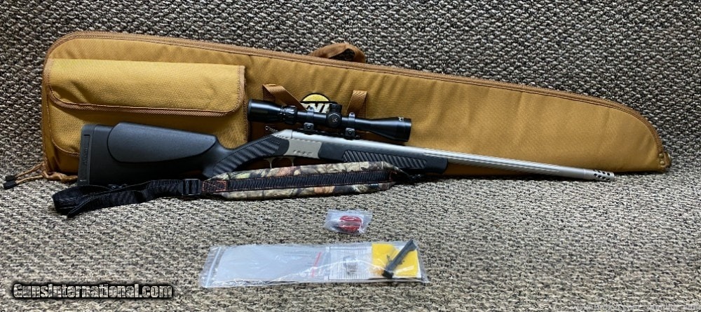 Description: Guns Listing ID: 1199815 This listing is for a USED CVA Scout Takedown 450 Bushmaster SS Finish Synthetic Furniture 25” BBL. This is a used gun, it has been fired and will have residue present. This CVA Scout Takedown is chambered in 450 Bushmaster, and it will hold one round in the chamber. This rifle comes with a 25 inch barrel. It comes equipped with a Konus Pro 3-9x40 scope. This rifle also comes equipped with an Allen camo sling. There are scratches present on the synthetic furniture, and there are a couple light scratches on the receiver. The lock up appears to be in good condition, the finish appears to be in good condition, and the bore appears to be in good condition. This rifle comes with a polymer sight, a thread protector, a trigger lock, an instruction manual for the scope, and a CVA soft case. This would be a great hunting rifle. ** DISCLAIMER** THIS FIREARM HAS NOT BEEN TEST FIRED*** SOLD Manufacturer: CVA Model: SCOUT Caliber Info: .450 BUSHMASTER Condition: Used - Non-Certified Barrels: 25 BARREL Finish: STAINLESS STEEL |