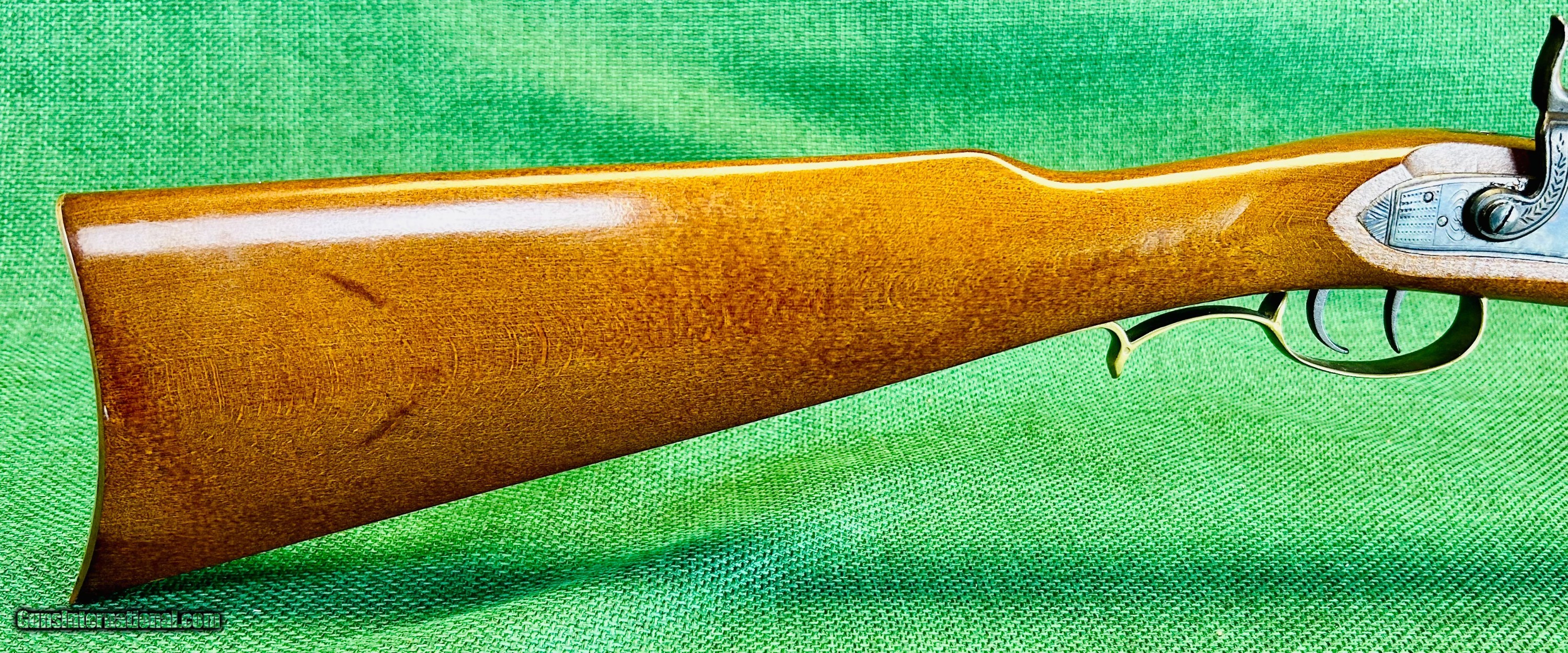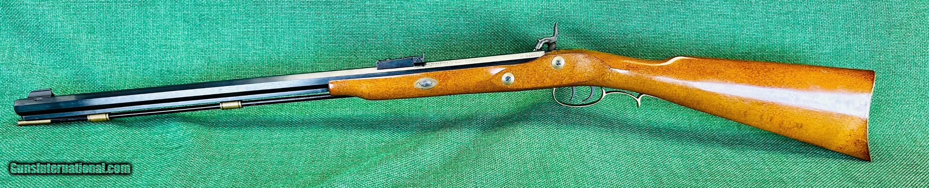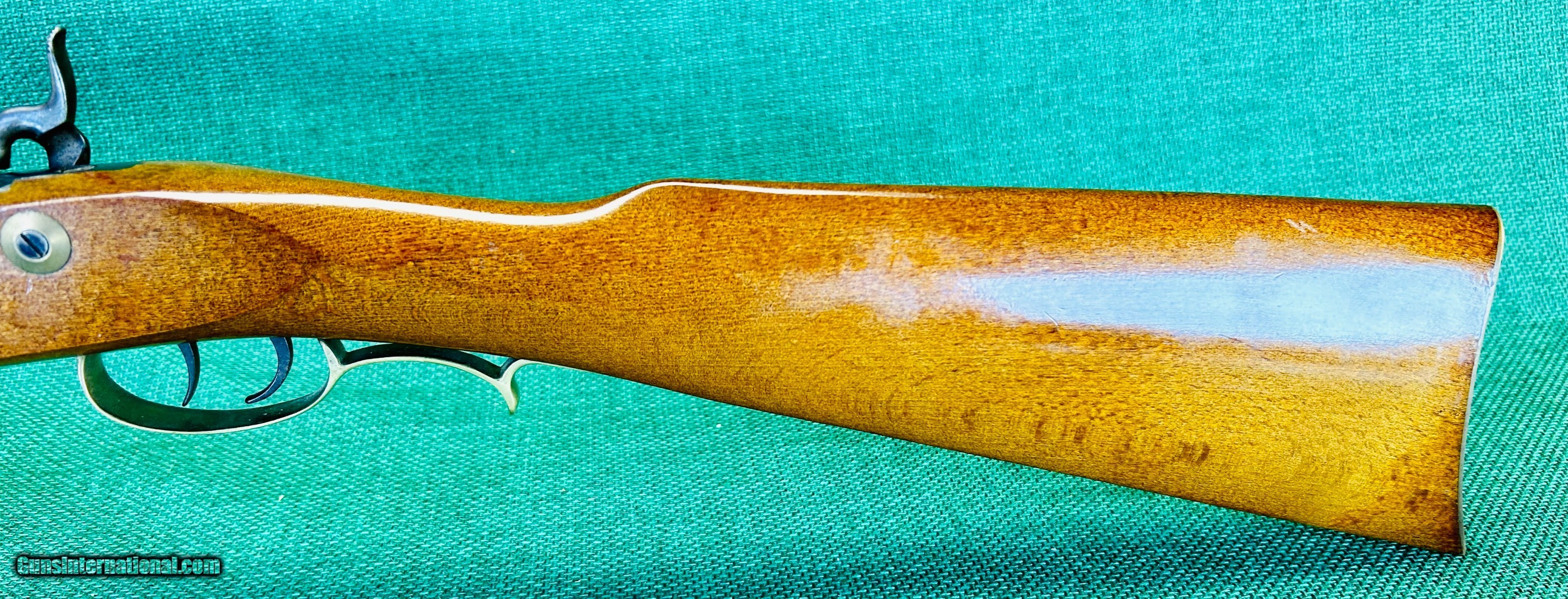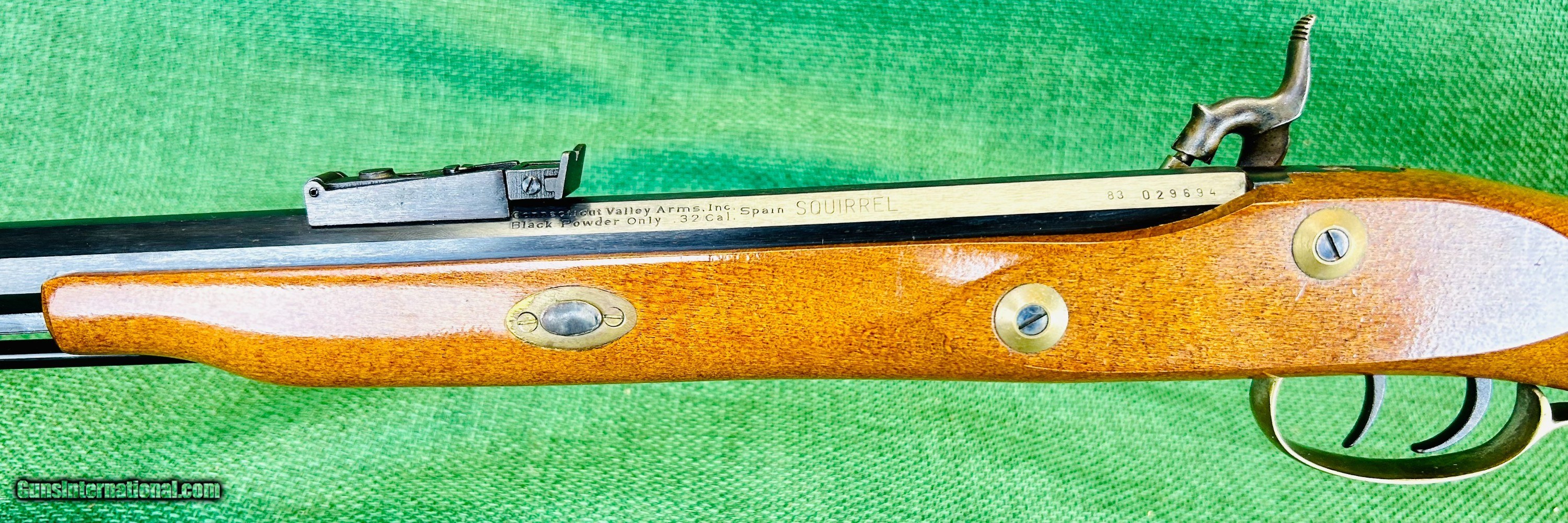 Description: Listed is a Connecticut Valley Arms black powder Squirrel rifle chambered in .32 caliber. This features a 3/4" across the flats octagonal barrel, double set trigger, percussion ignition, adjustable sights, ram rod, walnut stock, case hardened lock plate and hammer, and blue'd finish. The twist on these are 1:60, designed to use lead round ball. These rifles are lighter and compact making them a blast to hunt small game with or shoot mark. This one is in excellent shape. There is little if any evidence of being fired. Bluing and case color are excellent. Set triggers work as they should. We accept USPS Money Order or cashier’s check for immediate shipping. Shipping costs are actual postage to your door, no FFL required. We will pay the insurance for the amount sold. All items are for sale locally, so make contact as soon as you make your decision. SOLD Rifle Caliber: .32 Manufacturer: Connecticut Valley Arms Model: Squirrel Condition: Excellent Bore Condition: Excellent Triggers: Set |