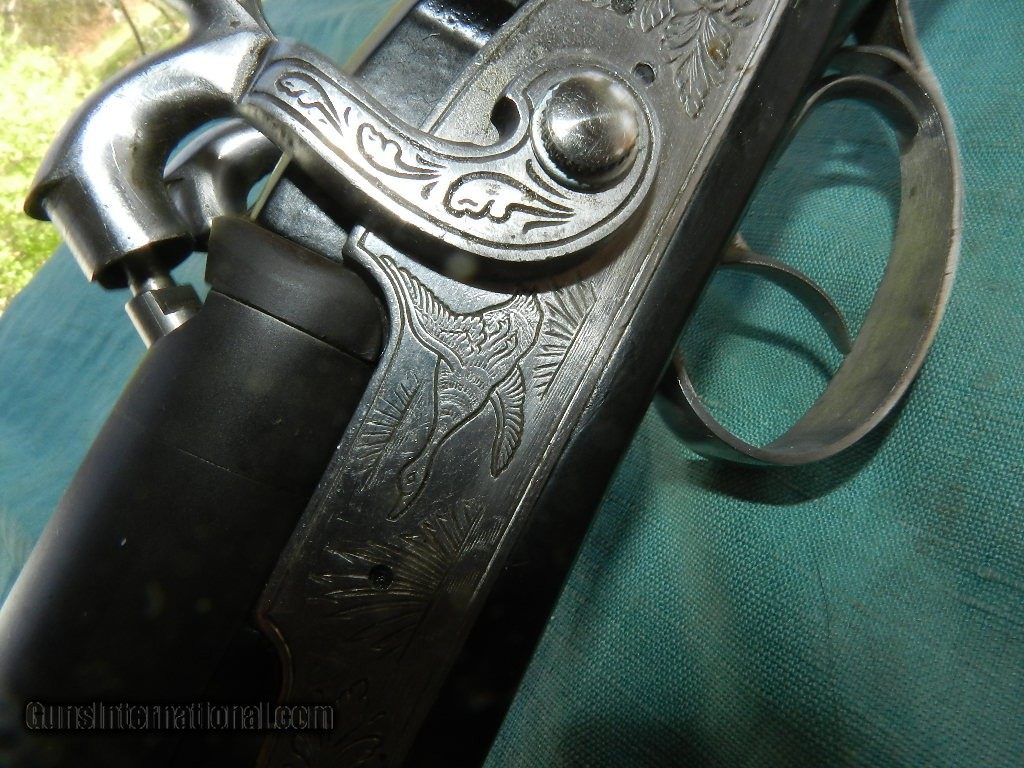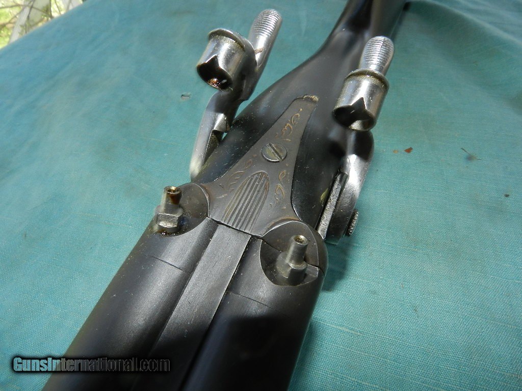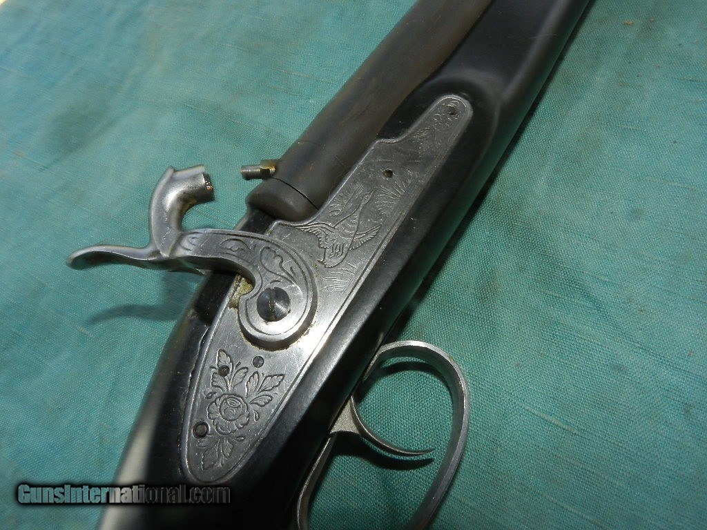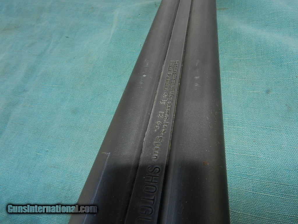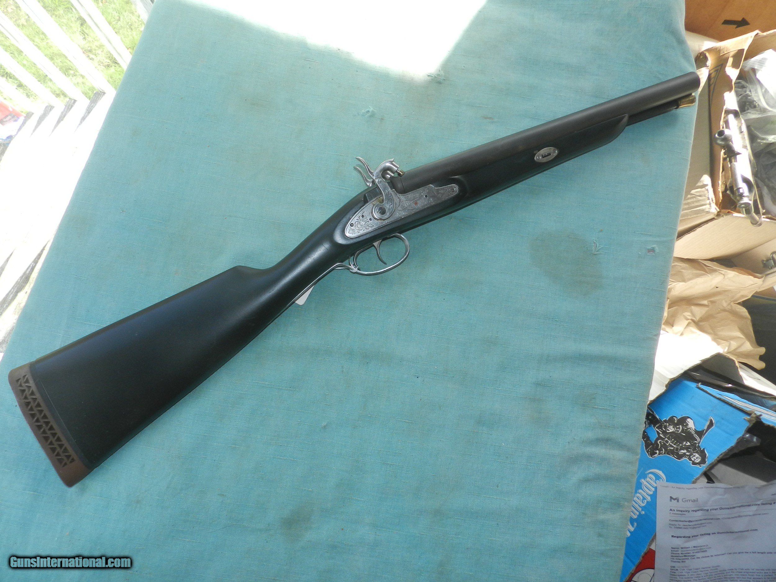 Description: SOLD A very clean 12ga hammer double made by CVA with 14" barrels with chokes of CYL and clean smooth bores. The exterior metal is soft grey parkerize, and the chisel engraved locks are in the white and work well, with un-damaged nipples. The facrtory stock as has a wrought -iron black finish that is perfect. The LOP with a red recoil pad is about 14 5/8". Has a two brass tipeed black fiberglass ram-tod that appears to be original. When buying a gun always have it examined by a competent gunsmith before shooting. To buy a gun from me you must get a direct email for me, with details, and shipping cost. We don’t have a web site .I prefer money orders or a check. Item ships when funds come in. I try to keep guns affordable, which means I make less money than most dealers. You won’t get altitude sickness, or nose bleed, with my prices! I consistently have the best selection of older guns If you attempt to buy, you must still contact us for details . Best to email to buy. Sometimes a local person can stop buy and purchase before the gun is removed. Sometimes not home to get calls. Some guns are required shipment to a gun dealer near you for a transfer to you when it arrives. Otherwise many older or black powder guns ship to your door. With the widest selection of older guns at great prices, We don’t have a store, and sell on the internet only. I’m easy to get along with. Thank You[JB1] [JB1] SOLD |