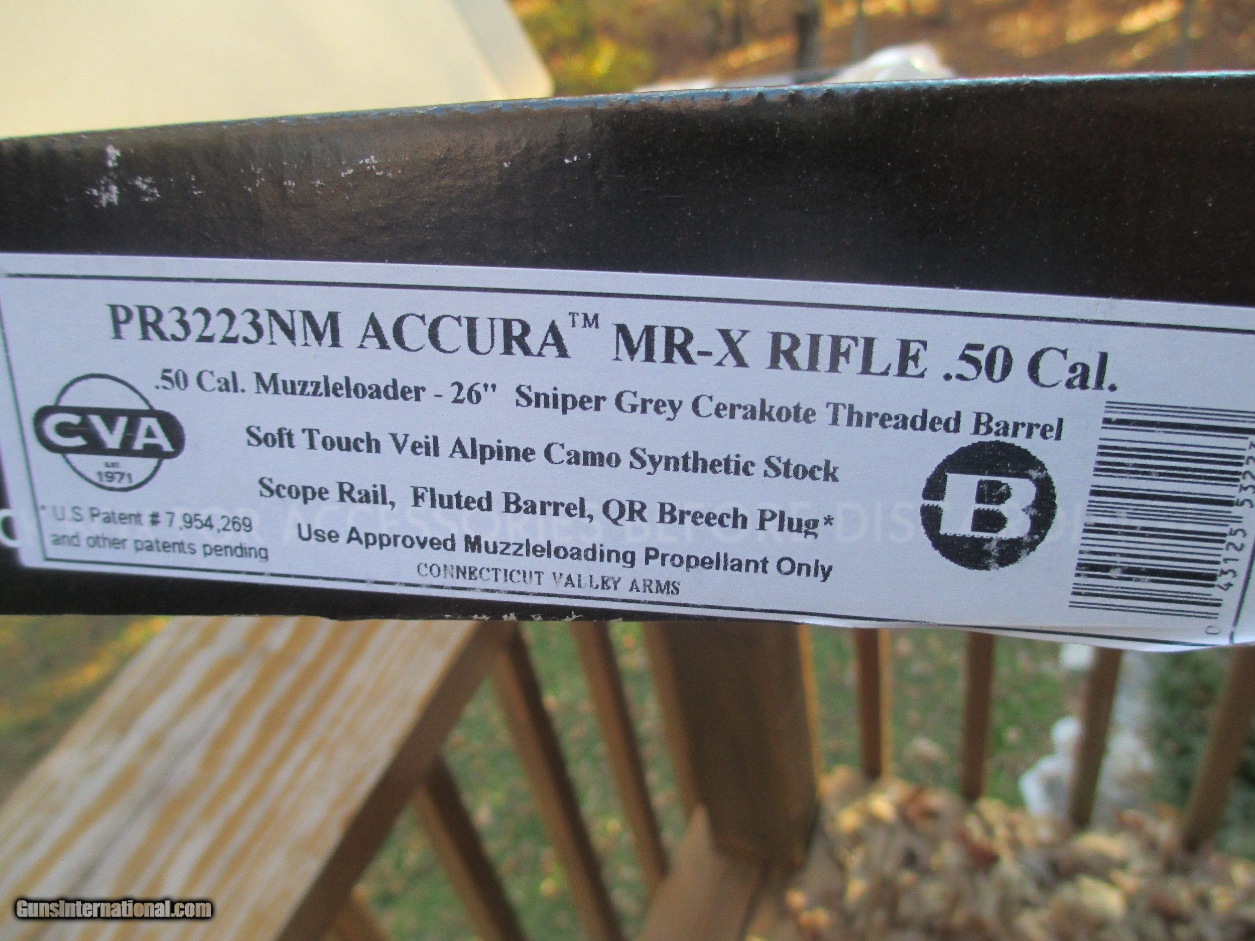 Description: CVA Accura Mr-X Rifle in .50 Cal. 26 inch barrel. Soft Touch Veil Alpine Camo Synthetic Stock. Fluted barrel. QR breech plug. New in box. Nitride rustproofing process. Comes with sling and ramrod. Ramrod is collapsible carbon fiber stored in its own pouch. Ships directly to you. I do not check my email freqently. Call or text for best results with inquiries. 417-844-5828 SOLD |