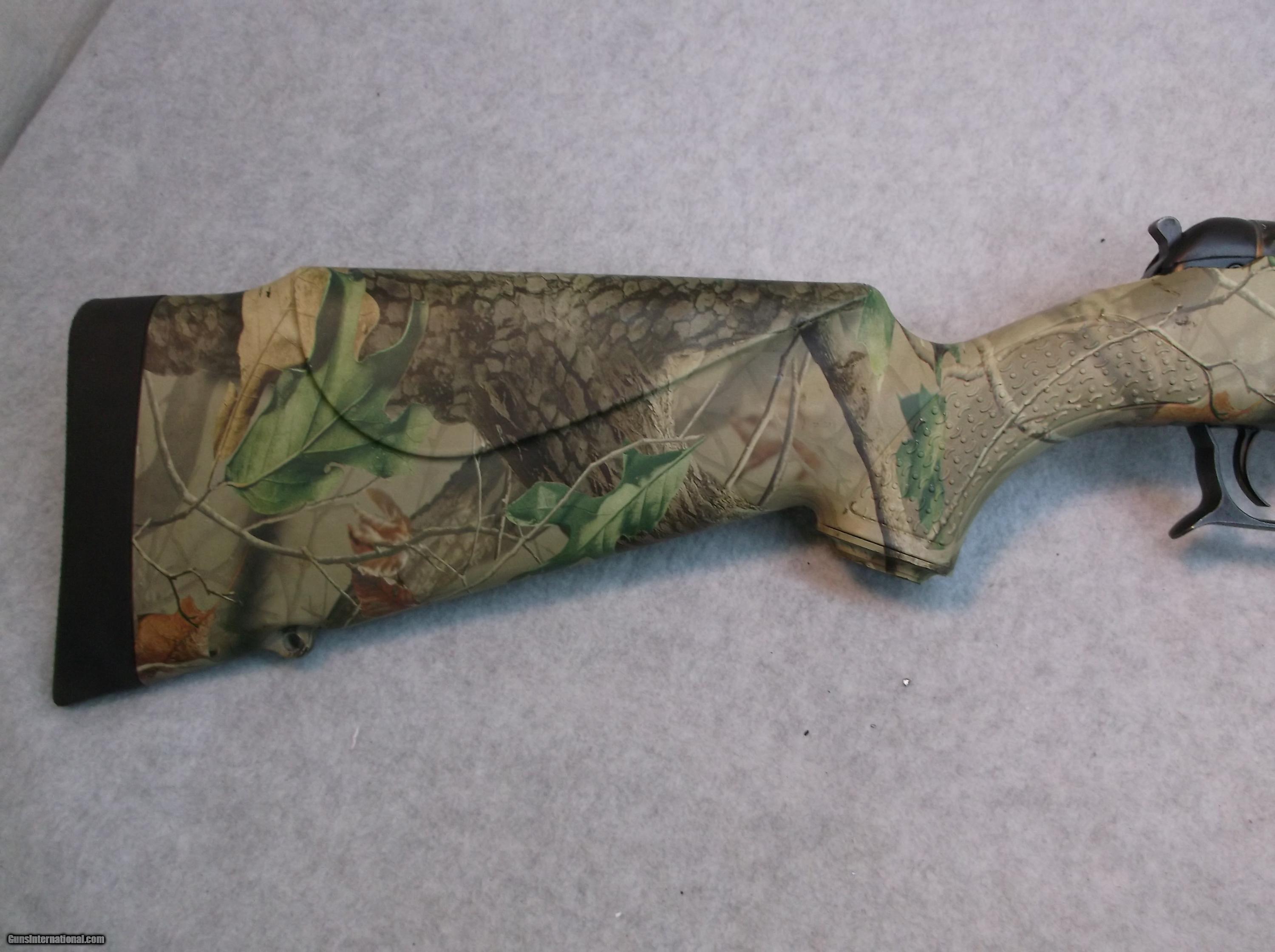 Description: Connecticut Valley Arms .50 caliber Kodiak Pro Magnum rifle has a tapered round 7/8" to 13/16" x 28" fluted camo barrel with 1:28 twist and comes mounted with both scope blocks and with adjustable fiber optic sights. Real Tree Hardwoods Camo Synthetic stock with checkered wrist and forend is mounted with sling swivel studs and a recoil pad. The in-line 209 ignition system is activated by a single trigger. Length of pull is 14-1/2". Please Note: This rifle has CLOSED 209 ignition and is not legal in Oregon, Washington or Idaho for muzzleloading hunts. Condition: Good. Our stock number P-99-25 A016, please use this number when referencing this item. Will ship anywhere in the USA, buyer pays freight and insurance. SOLD Manufacturer: CVA Connecticut Valley Arms Model: Kodiak Pro Magnum Caliber Info: 50 Black Powder LOP: 14-1/2 |
