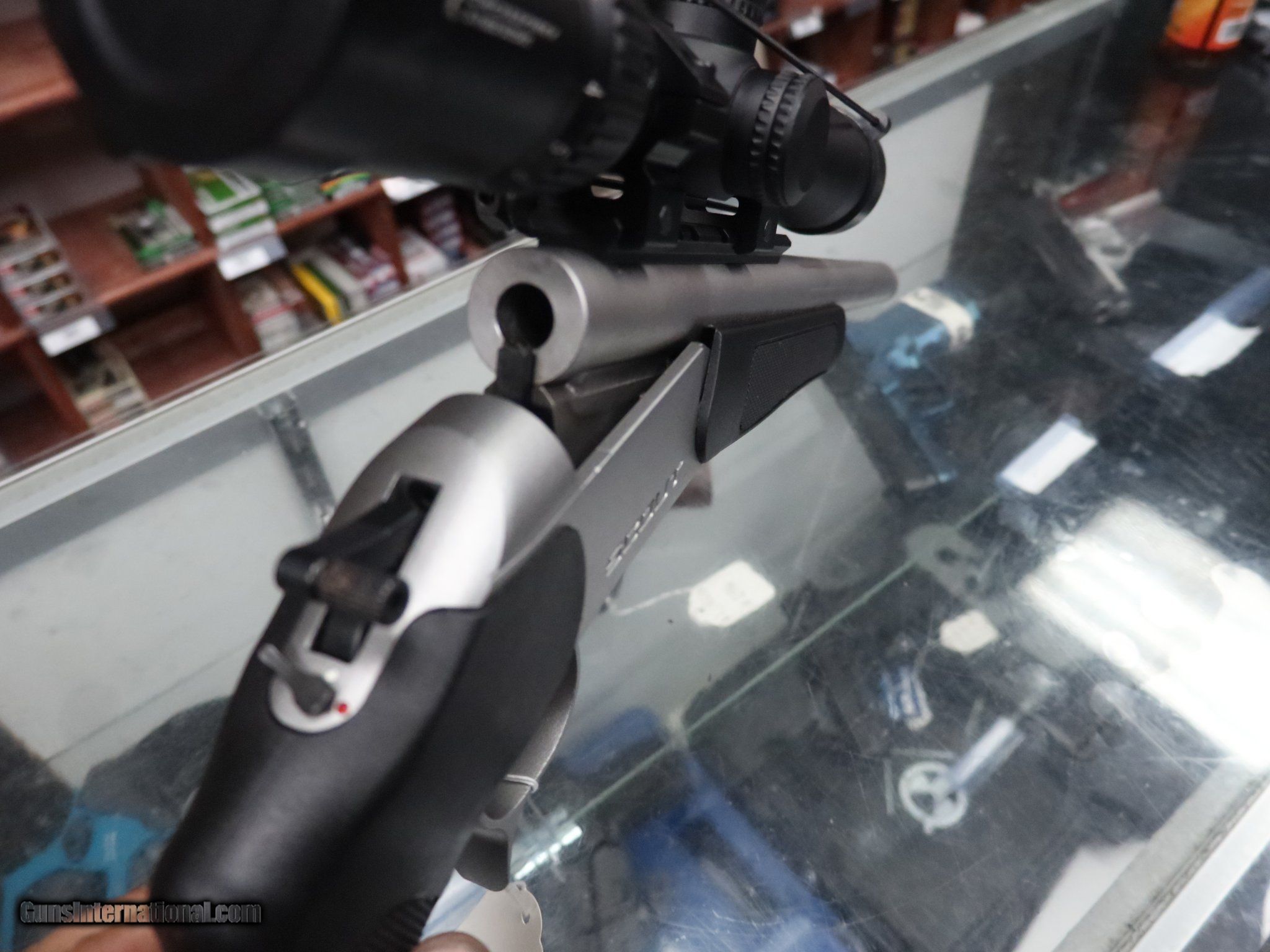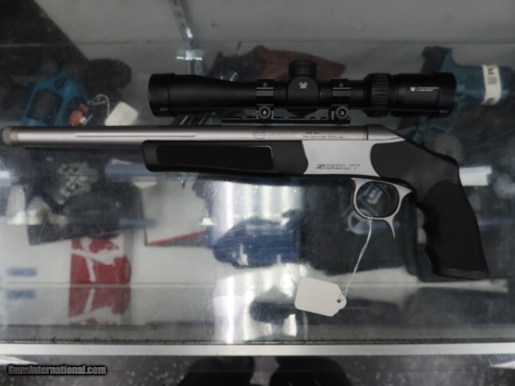 Description: Guns Listing ID: 547474 Here is an interesting piece. The break action single shot scout chambered in .243. It‚s in great condition and features a Vortex Crossfire 2-7x32 Scout mounted and bore sighted. SOLD Manufacturer: CVA Model: CVA SCOUT V2 Caliber Info: .243 WIN Condition: Used - Non-Certified Barrels: 14 BARREL Action: SINGLE SHOT Finish: BLACK AND NICKEL |