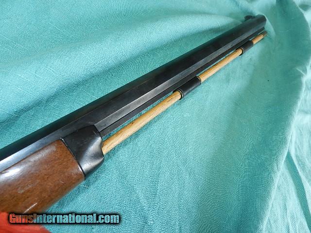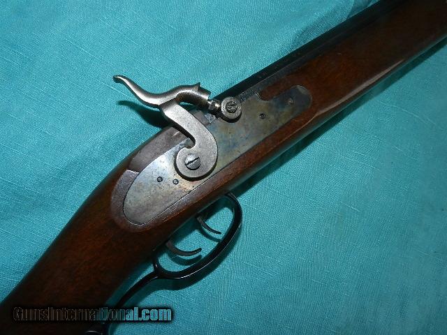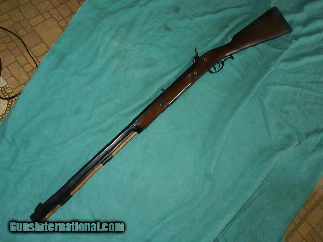 Description: A clean CVA HAWKEN MISSOURI rifle in .50 cal. With a 28" HEAVY octagonal barrel, with an good bore, strong rifling, and surface corrosion for the 5" of muzzle downward from storage, rest of bore very good. This gun will spin a bullet good. A good beginner gun. Has a color case hardened lock plate. Action works good, and has a good nipple. Has set triggers. Couple handling dings in the stock, nothing serious, Has about 93% original blue, some color touch-up. Fine pits in the metal ahead of the nipple and a few dents on top of the barrel Comes with a hardwood ramrod, with a brass tip. The hardwood stock is very good. Comes with original sights. To buy a gun from me you must get a direct email for me, with details, and shipping cost. We don’t have asite .I prefer money orders or a check. Item ships when funds come in. If you can only pay with a card let me know. I’m sorry I don’t list my phone number, did that for 30 days, never again.. I can’t talk on the phone all day…who will ship the guns? I’m just one person, and it’s very busy here! I do a brisk volume! I hope you like my wide selection of unusual guns, knives and gun parts. Shipping price determined by zip code. I try to keep the prices affordable, which means I make less money than most dealers. You won’t get altitude sickness with my prices! I consistently have the best selection of older guns If you attempt to buy, you must still contact us for details, buying doesn't end the sale, it just sends an email telling us you want to buy this gun. A phone call won’t secure a sale! Not home many times, the first buyer by email buys the gun !Thissite does not close down a sale when you do a BUY! I can get six buys in an hour, first buyer to email gets the guns, others are in second place! Best to send another email . Sometimes not home to get calls. Some guns are required shipment to a gun dealer near you for a transfer to you when it arrives. With the widest selection of older guns at great prices, We don’t have a store, and sell on the internet only. SOLD |