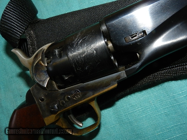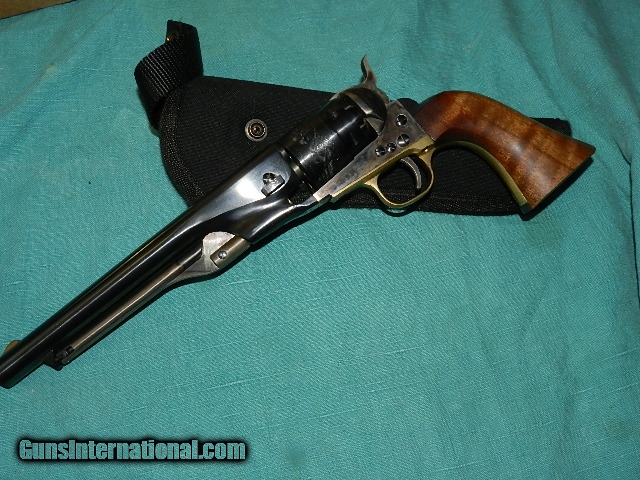 Description: Very good condition CVA made percussion 1860 REVOLVER marketed by CVA in the 1960's Lock works good, and has strong case coloring on the frame . Hardwood walnut stocks are excellent with good grain color. Barrel is rifled for the .45 cal, and is 8" long, medal full blue at 99% no rust or pits. Brass furniture, looks clean. Looks like is was used sparinglyes with a black nylon fine fitting holster. We don’t have asite .I prefer money orders or a check. Item ships when funds come in. If you can only pay with a card let me know. I hope you like my wide selection of unusual guns, knives and gun parts. Shipping price determined by zip code. I try to keep the prices affordable, which means I make less money than most dealers. You won’t get altitude sickness with my prices! I consistently have the best selection of older guns If you BUY IT NOW you must still contact us for details buy it now doesn't end the sale, it just sends an email telling us you want to buy this gun. A phone call won’t secure a sale! Not home many times, the first buyer by email buys the gun !Thissite doesnot close down a sale when you do a BUY IT NOW like Ebay!I can get six buy it nows in an hour, first buyer to email gets the guns, others are in second place! Best to send another email . Sometimes not home to get calls. Some guns are required shipment to a gun dealer near you for a transfer to you when it arrives. With the widest selection of older guns at great prices, We don’t have a store, and sell on the internet only. SOLD |
