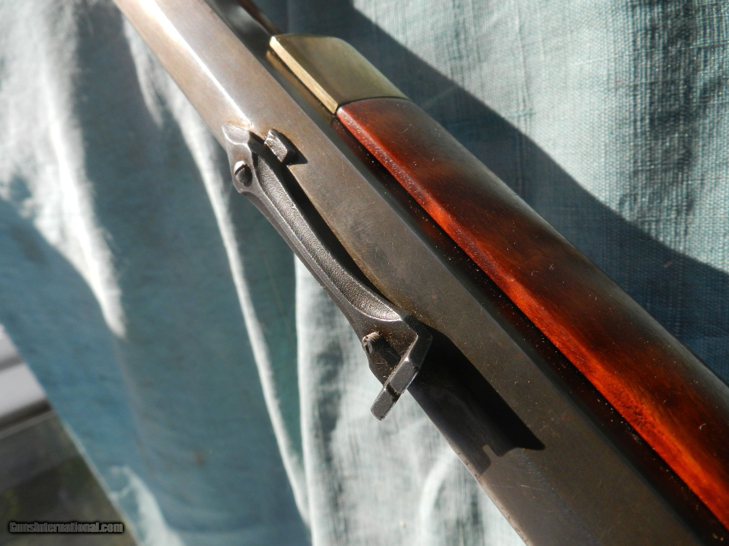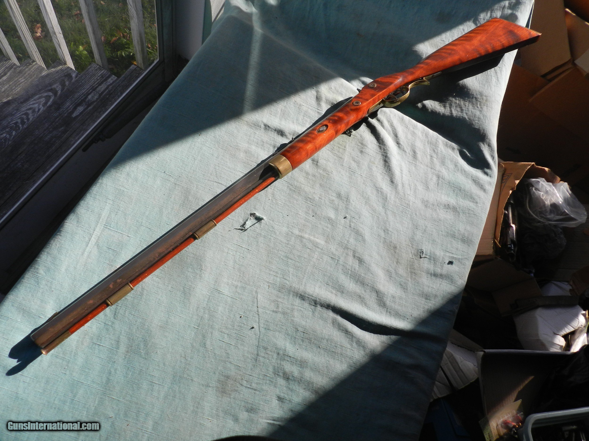 Description: A CVA mountain carbine with a Lock that works good and set triggers, uncommon on a CVA. With a very good , with a clean, strong rifled 28" bore and stamped on the barrel is SN 0008915. Comes with a wooden ramrod, and a brass tip. Wood is very good and has no issues , finished professionaly to a cherry color, tiger maple grain. . Furniture is brass, with bright yellow color. Bore has strong rifling and , would make a really good shooter. Barrel is in the white as issued on original 19th century rifles.When buying a gun always have it examined by a competent gunsmith before shooting. To buy a gun from me you must get a direct email for me, with details, and shipping cost. We don’t have a web site .I prefer money orders or a check. Item ships when funds come in. I try to keep guns affordable, which means I make less money than most dealers. You won’t get altitude sickness, or nose bleed, with my prices! I consistently have the best selection of older guns If you attempt to buy, you must still contact us for details . Best to email to buy. Sometimes a local person can stop buy and purchase before the gun is removed. Sometimes not home to get calls. Some guns are required shipment to a gun dealer near you for a transfer to you when it arrives. Otherwise many older or black powder guns ship to your door. With the widest selection of older guns at great prices, We don’t have a store, and sell on the internet only. I’m easy to get along with. Thank You. SOLD |