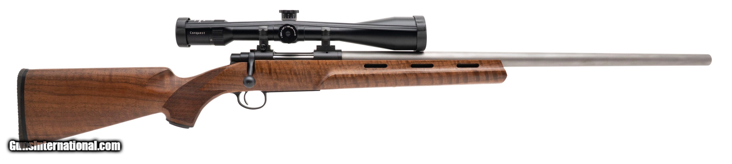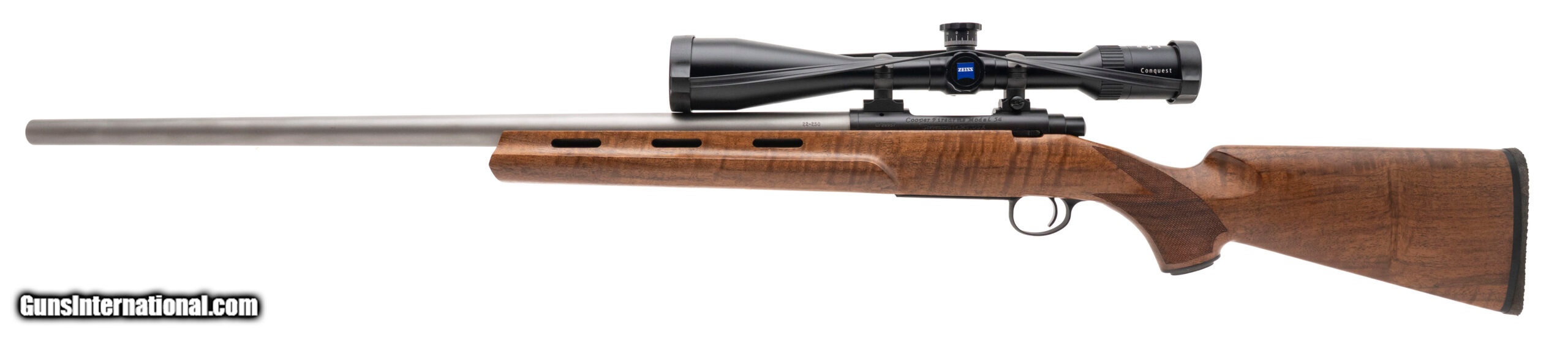Description: "SN: CF28957. Modern production, .22-250 with a 26"" barrel. Bore is excellent. Bolt-action varmint rifle with a Carl Zeiss 6.5-20X50 MC scope, stainless barrel, and checkered wood stock. Includes box. Overall condition is excellent. (CONSIGNMENT) SOLD |