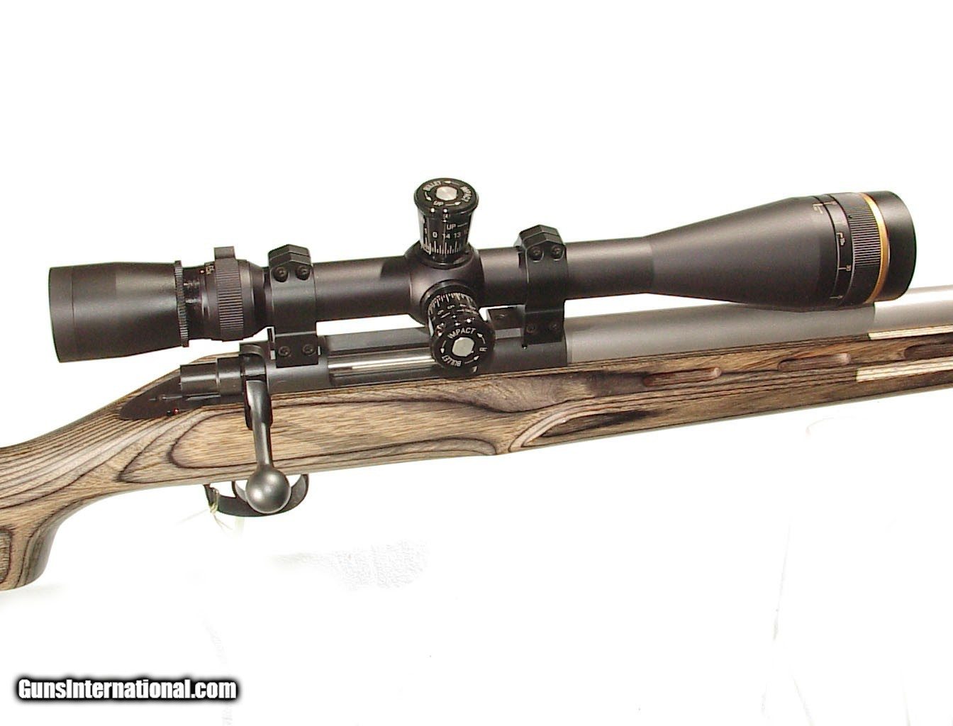 Description: .223 Rem. caliber, 24" stainless steel heavy barrel. Single shot bolt action with Varmint-Laminate stock. Topped with Leopold VX III 6.5x20 power 40mm scope. In as new, appears unused original condition SOLD |