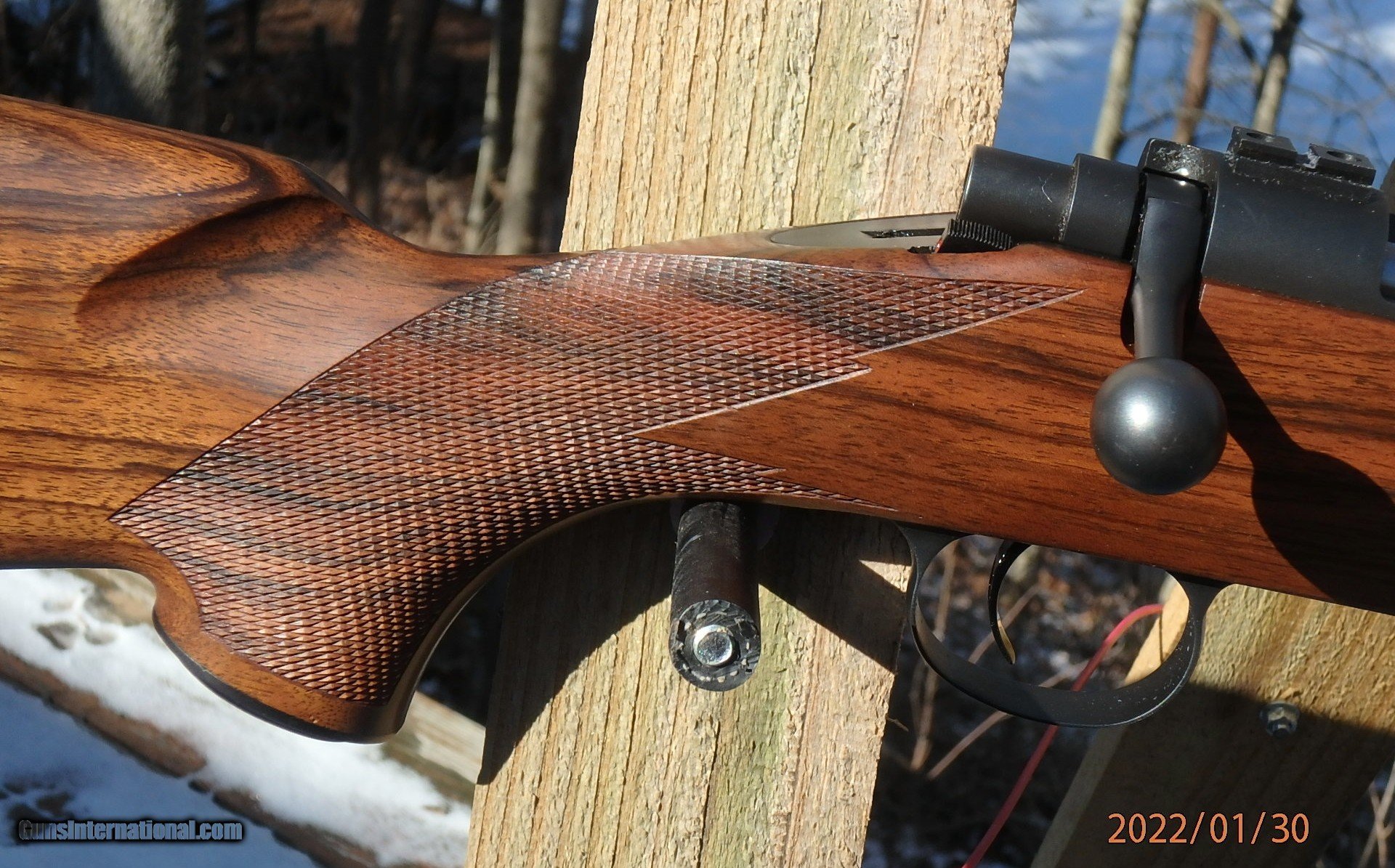 Description: SOLD PENDING FUNDS. In the many years of owning, shooting and looking at Cooper rifles, this is the only single shot .17 CCM in Varmint configuration I have ever seen. It has a pretty special serial number - DLC5. I'm pretty sure this indicates Daniel L Cooper, rifle number 5. I've not contacted Cooper to see how many single shots they made in .17 CCM, but I bet it wasn't many. Many folks are put off of the .17 and .22 CCM rifles because they think they can't find dies or brass. If you want a set of dies contact CH4D in Ohio and they will make you a set for a reasonable price. They are great dies. If you need brass, Steve Schroeder makes runs based on demand. I have his cell phone number. This rifle has been shot, but not much. There are some handling marks in the stock, but nothing that will make your stomach churn. The bore is pristine. These little rifles have three locking lugs. Since you hand load for them, you can work up very accurate loads. Cooper is known for their accuracy and these little sweethearts will typically print little bug holes. The last picture shows a .17 CCM cartridge next to a .22 Hornet, it's parent cartridge, so to speak. 50 virgin rounds of brass in the factory box. The dark mark on the right side of the barrel near the receiver is hardly noticeable in person. You can't feel it. The angle of the sun on the matt barrel finish makes it really stand out. In person, it won't be enough to distract from the rifle's looks. I do not have an FFL. Check with your dealer to see if he will accept the rifle from an individual. I provide a copy of my driver's license for his records. I they require the rifle be shipped from an FFL I have to pay my fellow $20 to do the transfer. That will be in addition to the shipping charge. Shipping will be $35 east of the Mississippi and $45 west of it. SOLD Rifle Caliber: .17 CCM Manufacturer: Cooper Model: 38 Serial Number: DLC5 Barrel Length: 22.5 Condition: Excellent Metal Condition: Excellent Wood Condition: Very Good Bore Condition: Excellent Barrel Type: Stainless Action: Steel Triggers: Adjustable |