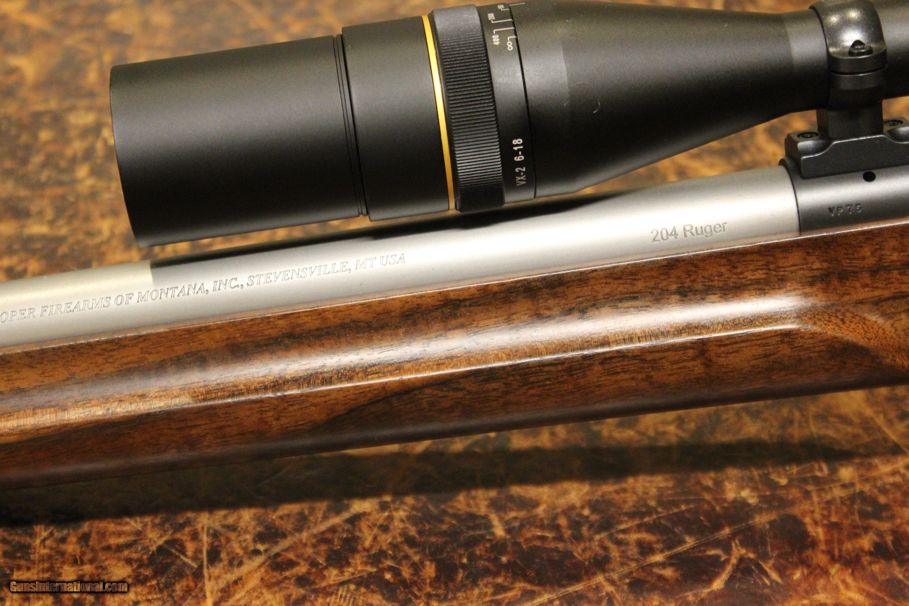 Description: COOPER MODEL 21 SINGLE SHOT CHAMBERED IN .204 RUGER. 24" STAINLESS BARREL OUTSTANDING CLERO WALNUT! 13 3/4" LOP SOLD |