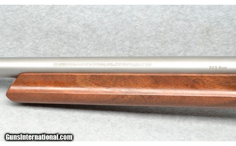 Description: This Cooper single-shot has a short 60 degree bolt throw. SOLD Caliber Info: .223 Rem Metal Condition: Very good - a few scuffs Wood Condition: Very good Bore Condition: Bright with sharp rifling Barrels: 26 Triggers: Crisp 2-lb. Stock: Walnut Stock Dimensions: LOP = 13 3/4 Fore End: Wide bag-style Butt Pad: Pachmayer Weight: 7.7 lbs. Sights: Scope bases installed Item Location: Cheektowaga, NY |