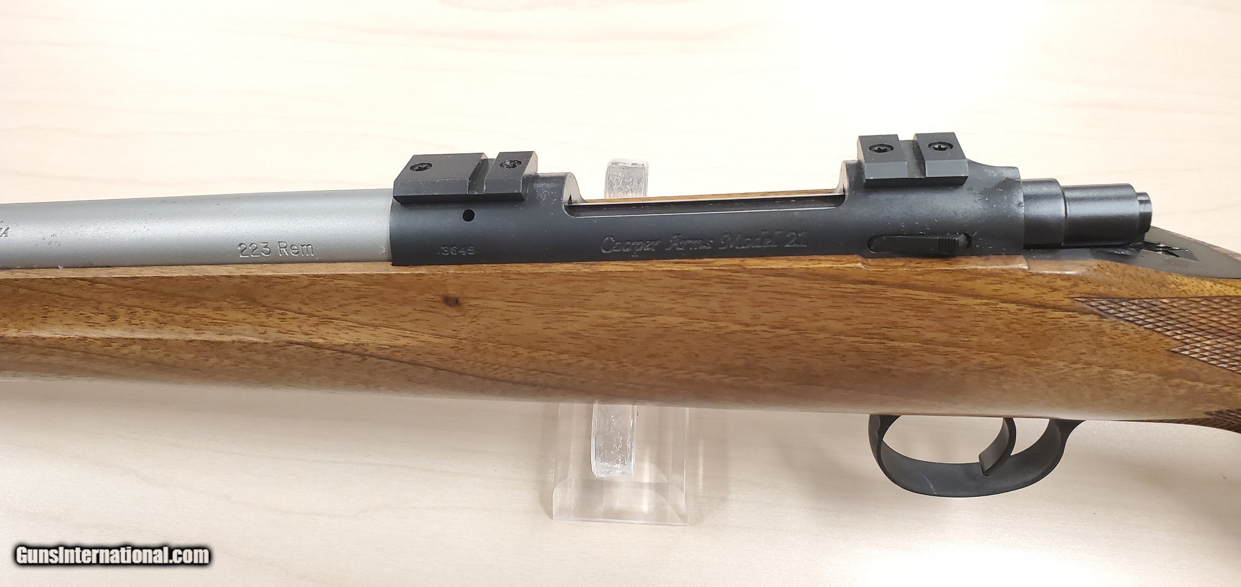 Description: Stainless 24" barrel with Jackson style XXX walnut stock. SOLD Manufacturer: Cooper Model: 21 Serial Number: 3649 Caliber Info: .223 Rem Condition: 98% |