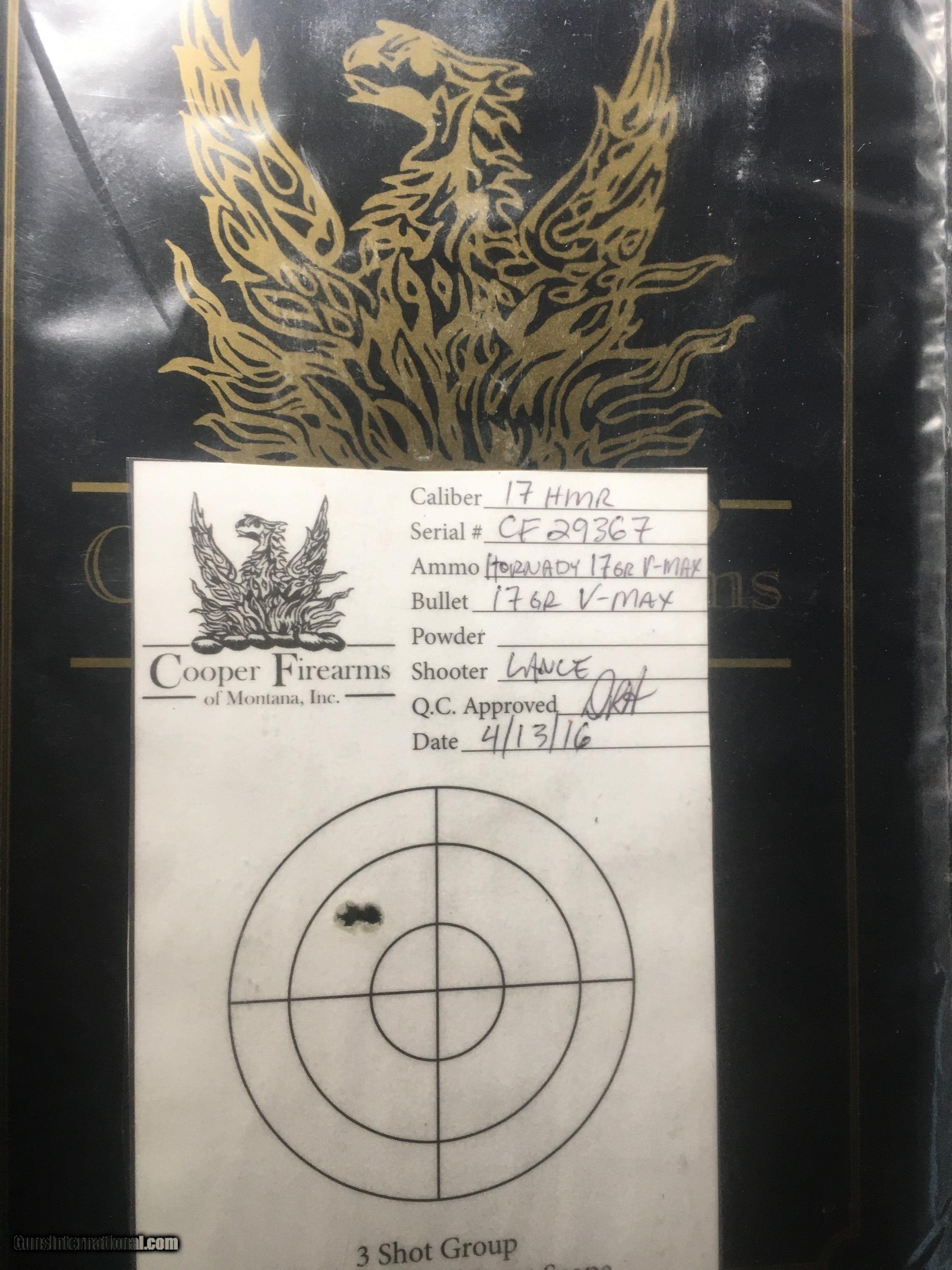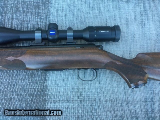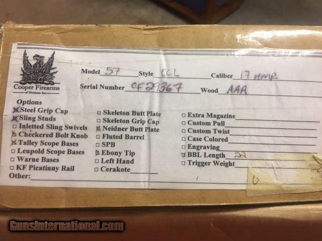Description: As new in original box with test target and manual. Fired less than 100 rounds. Options include AAA wood, Neidner buttplate and checkered bolt knob - $400 in options in all. Talley bases and rings included. Scope not included - if you want the Zeiss Conquest 3-9x40MC scope add $350 to the price. $3000 for rifle with bases and rings only delivered to your FFL dealer in the lower 48. Please make sure your dealer will accept a firearm from a non FFL dealer. Personal checks ok but held until cleared. SOLD Rifle Caliber: .17 HMR |