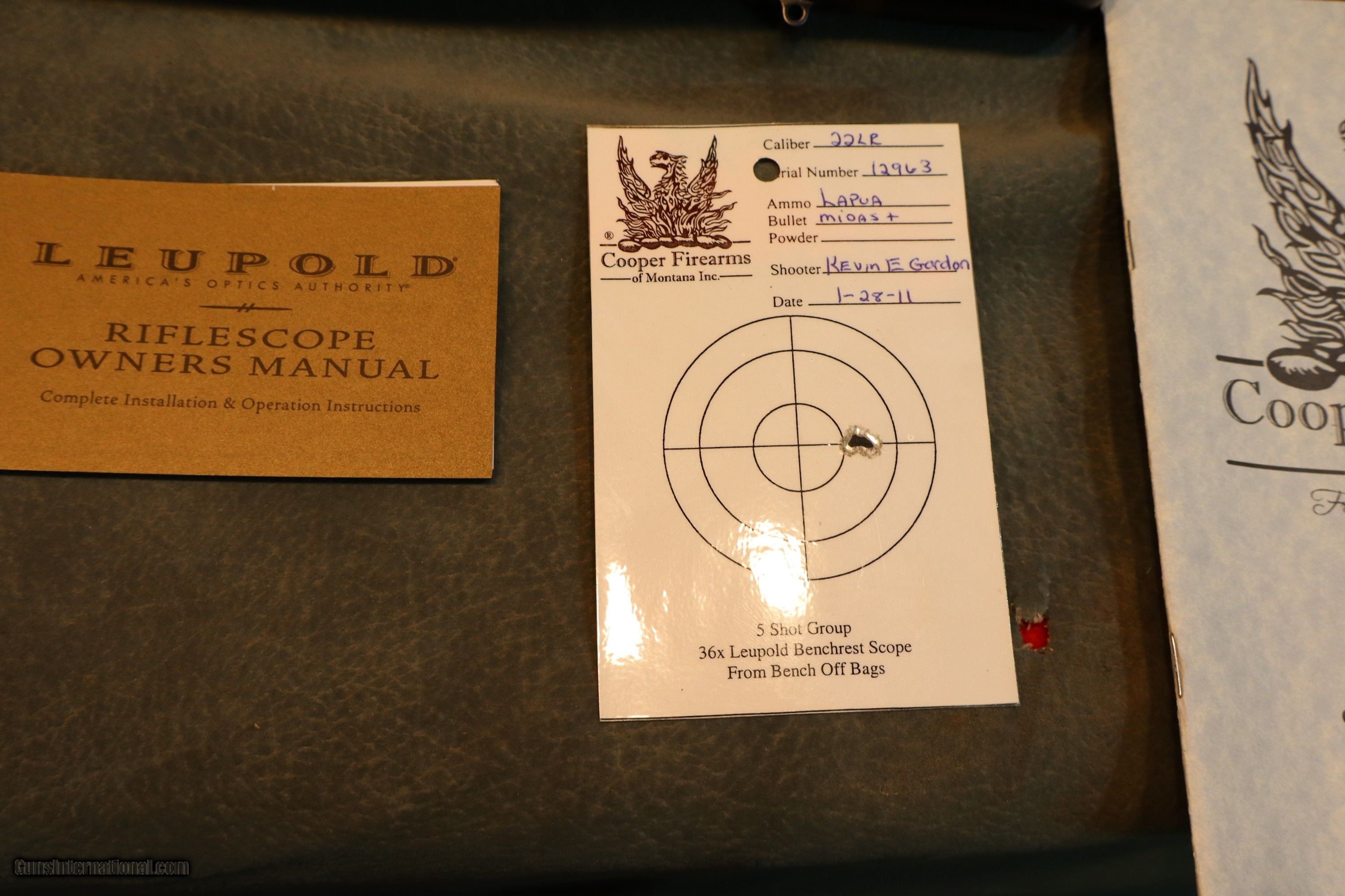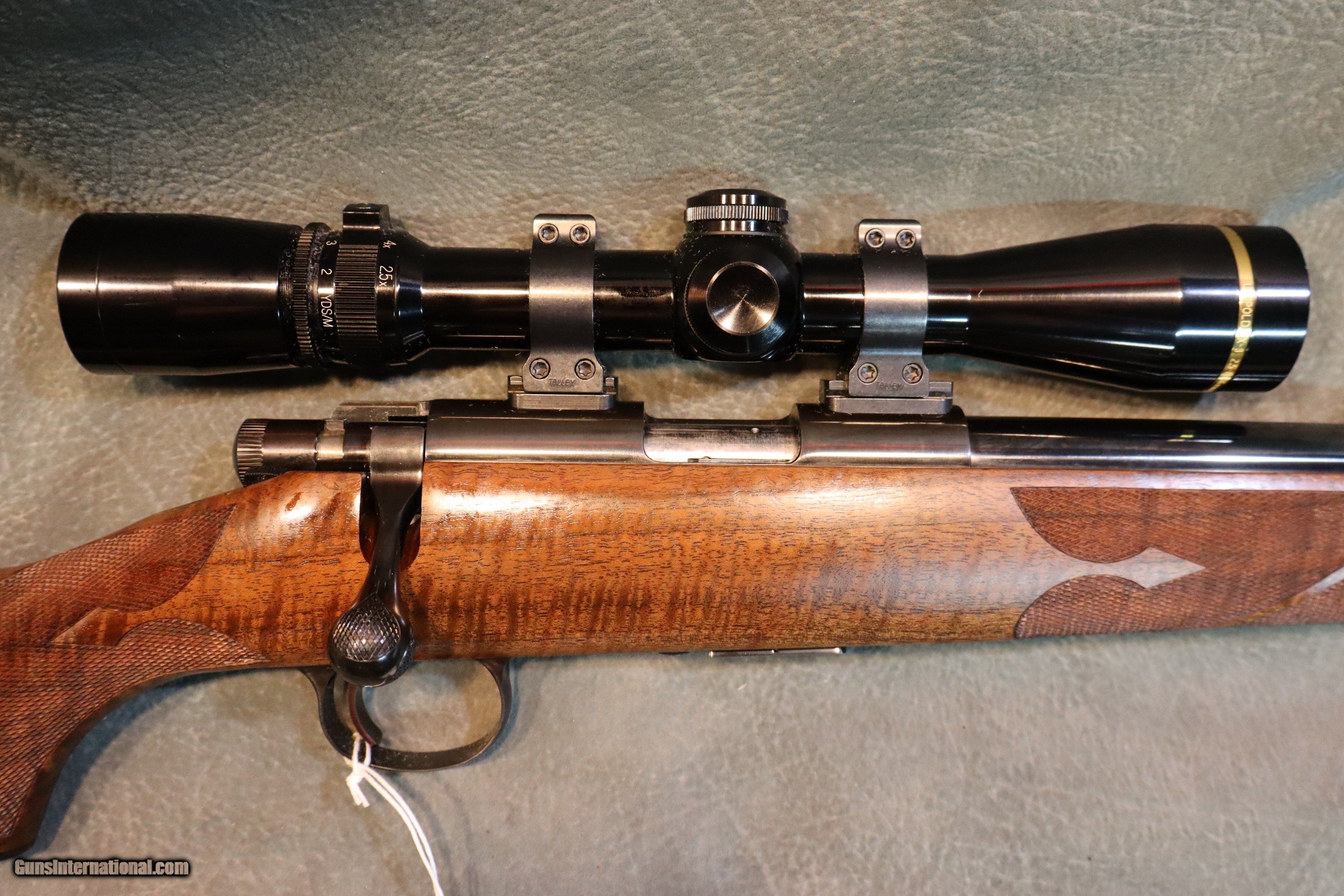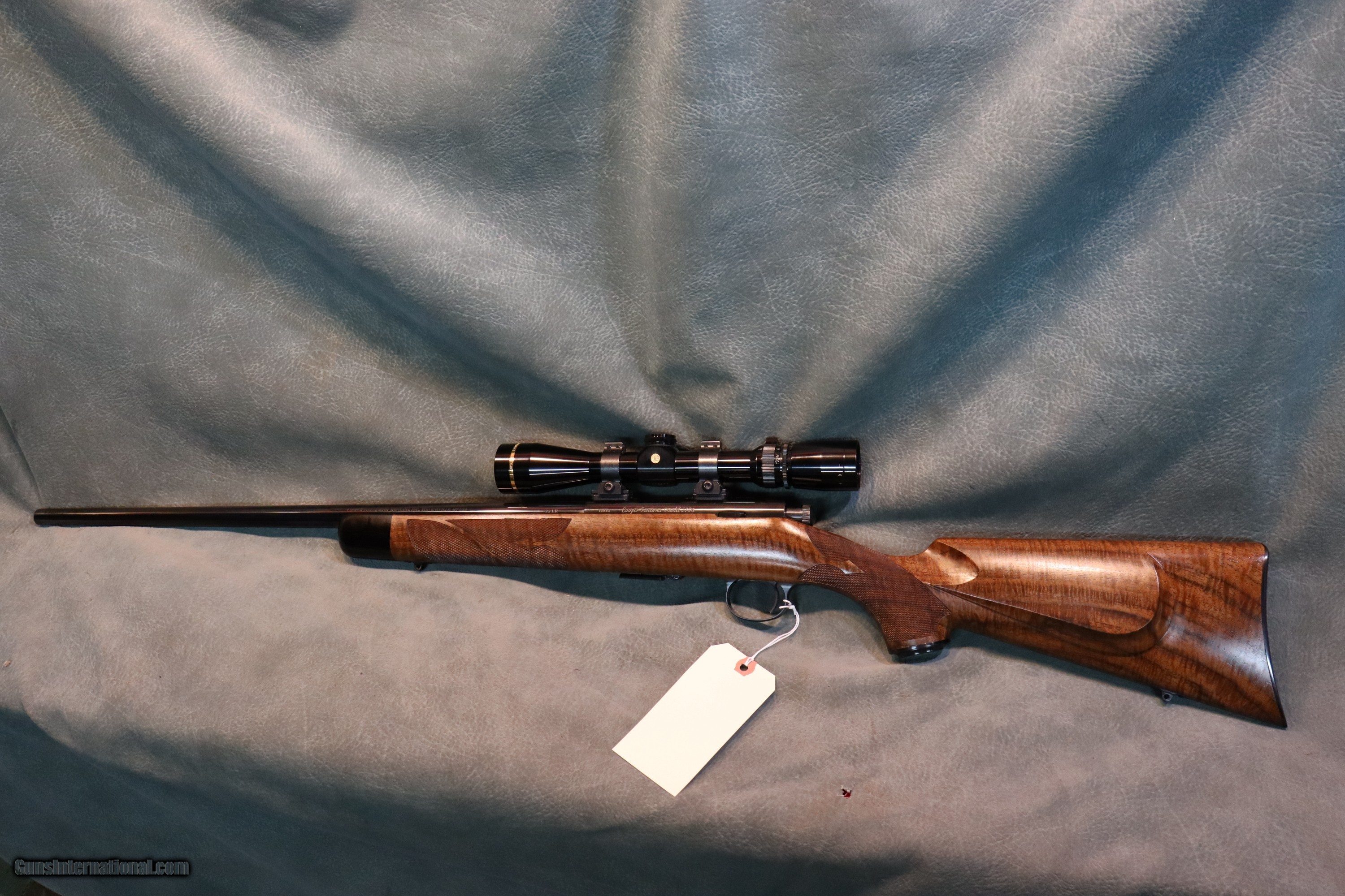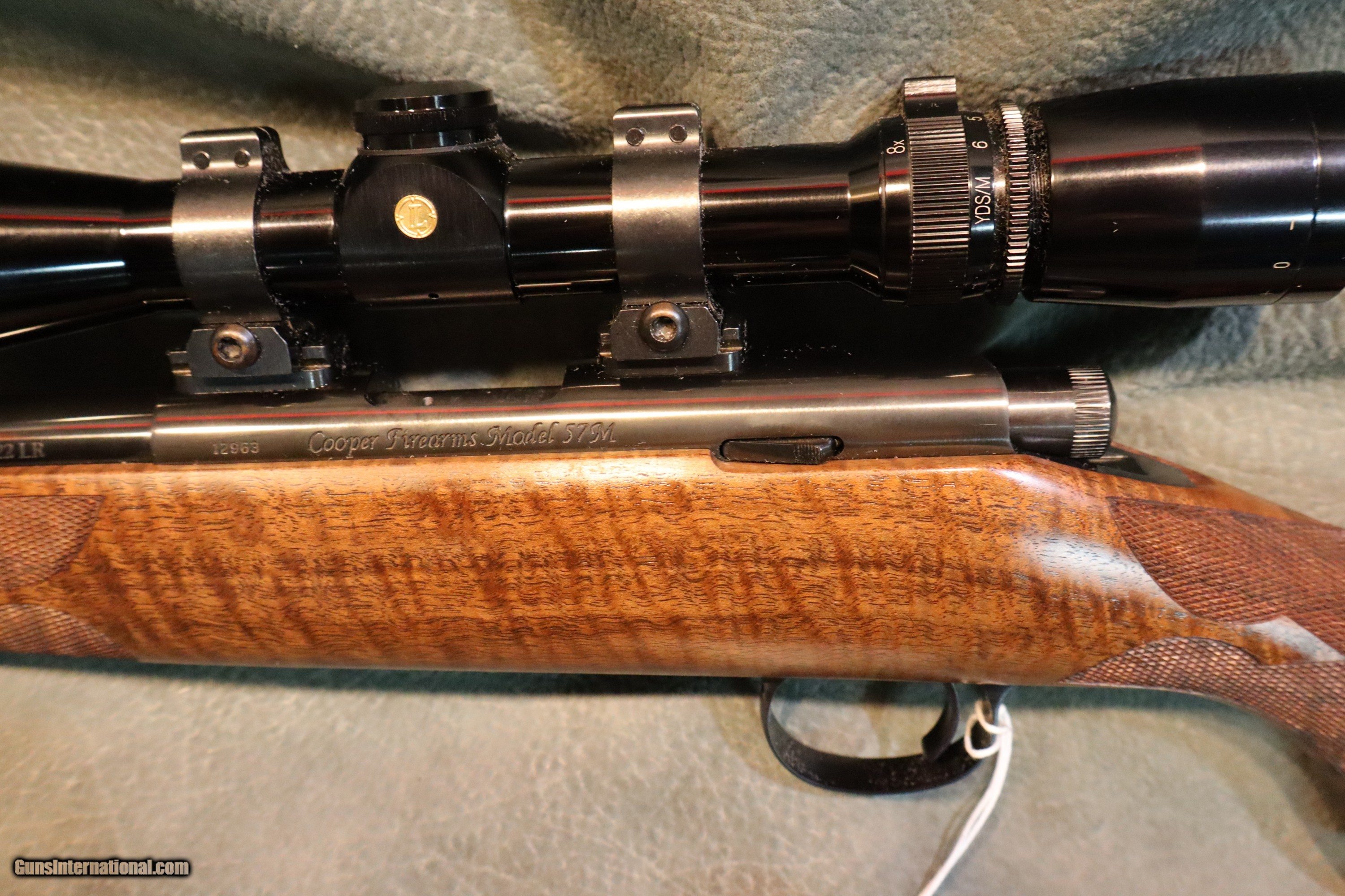 Description: Cooper 57M Custom Classic 22LR,beautiful highly figured walnut stock with full fiddleback,cheekpiece,fluer de lis checkering,ebony forend tip,22" barrel,high gloss blue finish,niedner checkered steel buttplate,inletted sling swivels,checkered bolt knob,Talley 1" rings and bases,excellent condition with the factory box,test target and manual $4595,with Leupold VX-3 2.5-8x gloss scope $4895.Great rifle! GUN COLLECTIONS WANTED FOR CASH! We buy, sell, consign and trade new and used firearms.We travel for large collections,finders fee available. This is our 49th year in business. We offer 90 day layaways with 20% down. No return on layaways. Firearms will need to be transferred through a FFL dealer. Prices reflect a cash discount. There will be 3% added to credit card sales. We trade for gold and silver. THANK YOU! SOLD |