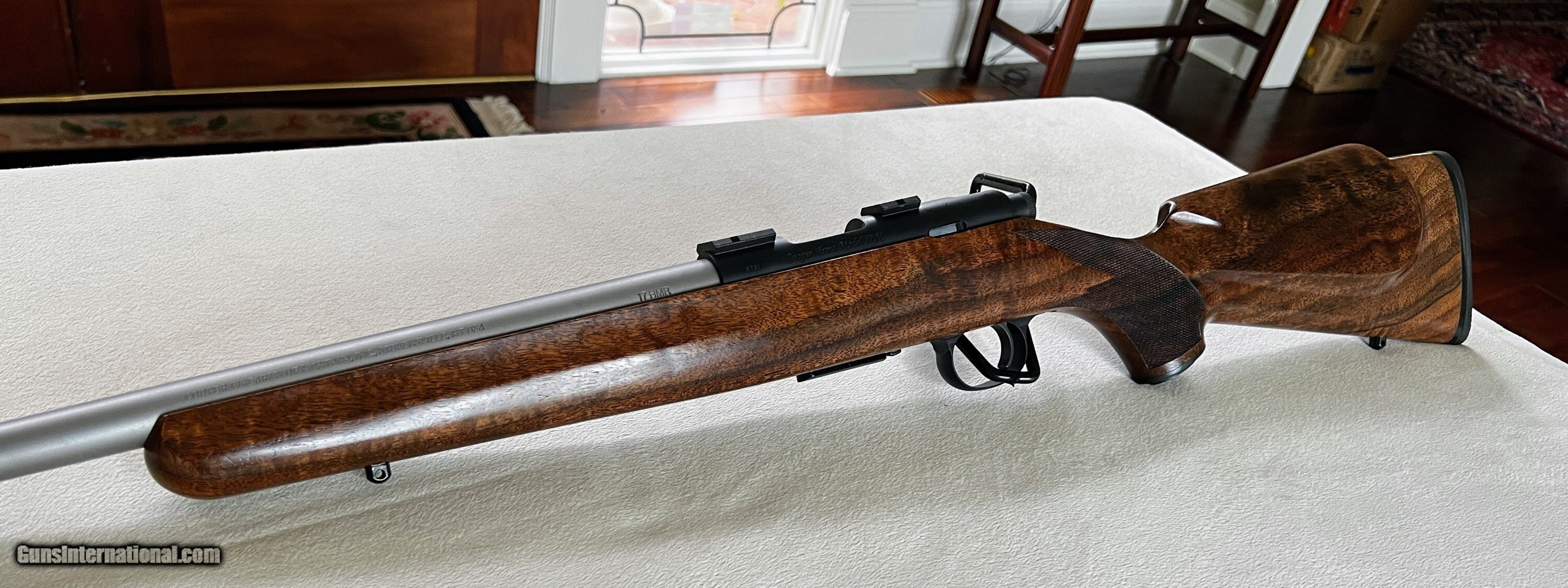 Description: Up for your consideration is a used Cooper Model 57M Jackson Squirrel in 17 HMR . I have not fired this gun nor do I have the history. It is being sold "As Is" with a 3 day, no fire, no disassembly return condition. The gun comes with everything you see in the photos. It is in excellent condition, please see the high quality photos to determine condition for yourself. Please ask any questions before purchasing. Let me know if you require additional photos. I will consider trades on high end rimfires (Cooper, Kimber or Anschutz). Sold only where legal to own and you are expected to know your local laws. Price listed represents a 3 1/2% discount for cash. Credit cards are available, but you must call me to use. Shipping will be $50 to the lower 47 (no shipping to CA). Insurance is not included but is highly recommended. The gun is available for sale locally and if there are no offers, I reserve the right to end the sale early. Thanks for looking. Rifle Caliber: .17 HMR Manufacturer: Cooper Model: 57M Barrel Length: 22 Bore Info: Excellent Condition: Excellent Metal Condition: Excellent Wood Condition: Excellent Bore Condition: Execellent Barrels: Stainless Barrel Type: Sporter Action: Bolt Triggers: Adjustable Stock: Walnut Price: $2,695.00 Contact Seller |