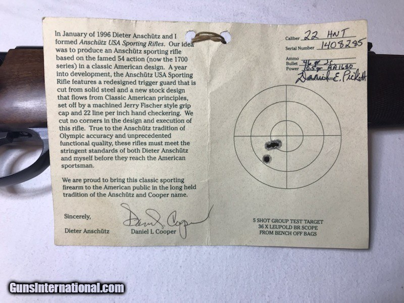 Cooper / Anschutz 1733 Mannlicher 22 Hornet