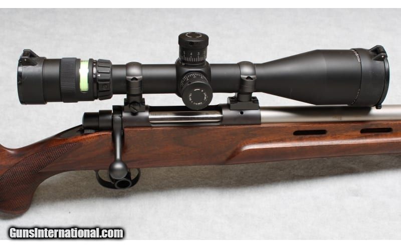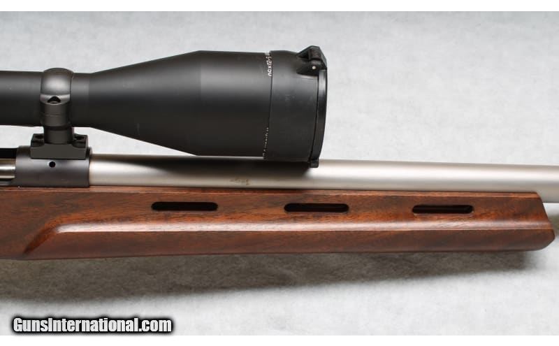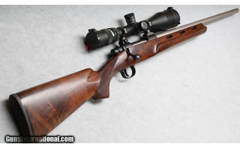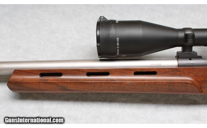 Description: Excellent condition, few light wear and handling marks. Superbly crafted single shot bolt action rifle with 24" stainless bull barrel, slick action and crisp target type trigger. Premium wood with wide flat vented forend and minimalist factory recoil pad. Chambered for the .22-250 cartridge, this is an excellent rifle for varmint hunting. .22-250 Remington SOLD Chambers: Bolt action Metal Condition: Excellent Wood Condition: Excellent Bore Condition: Bright Barrels: 24 Triggers: Factory Stock Dimensions: 13 1/2" LOP Fore End: "Smooth, vented Butt Pad: Factory pad Sights: Trijicon 5-20x scope Item Location: La Vista, NE |
