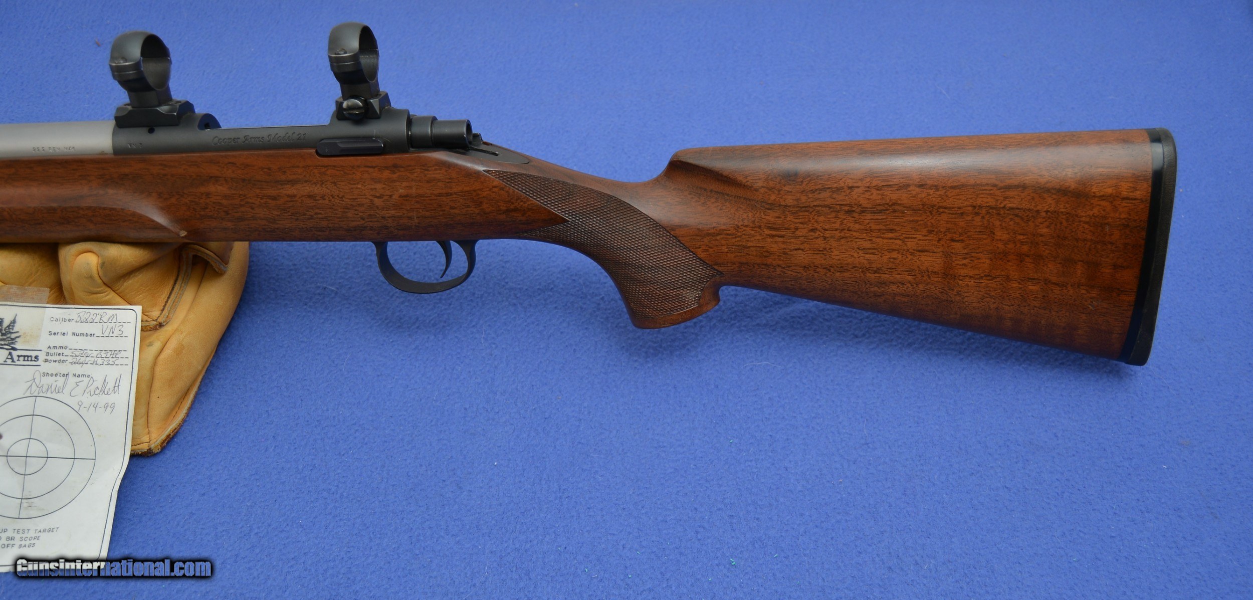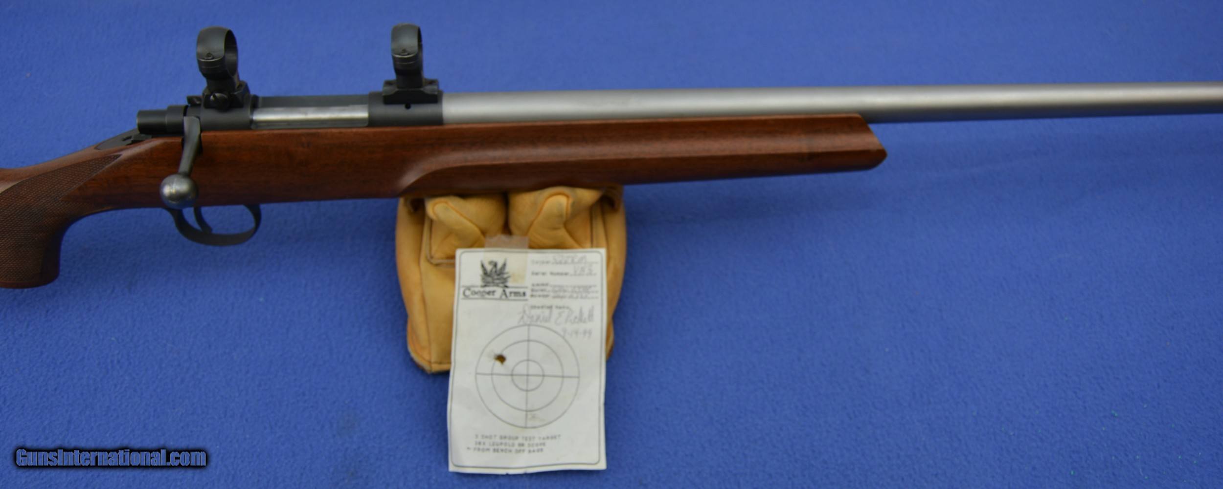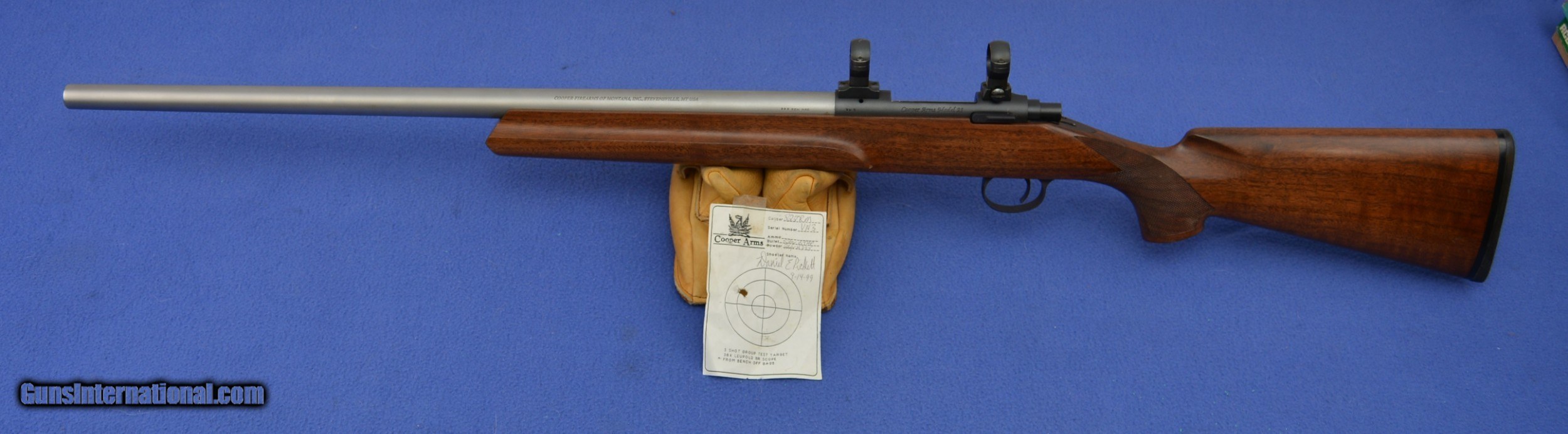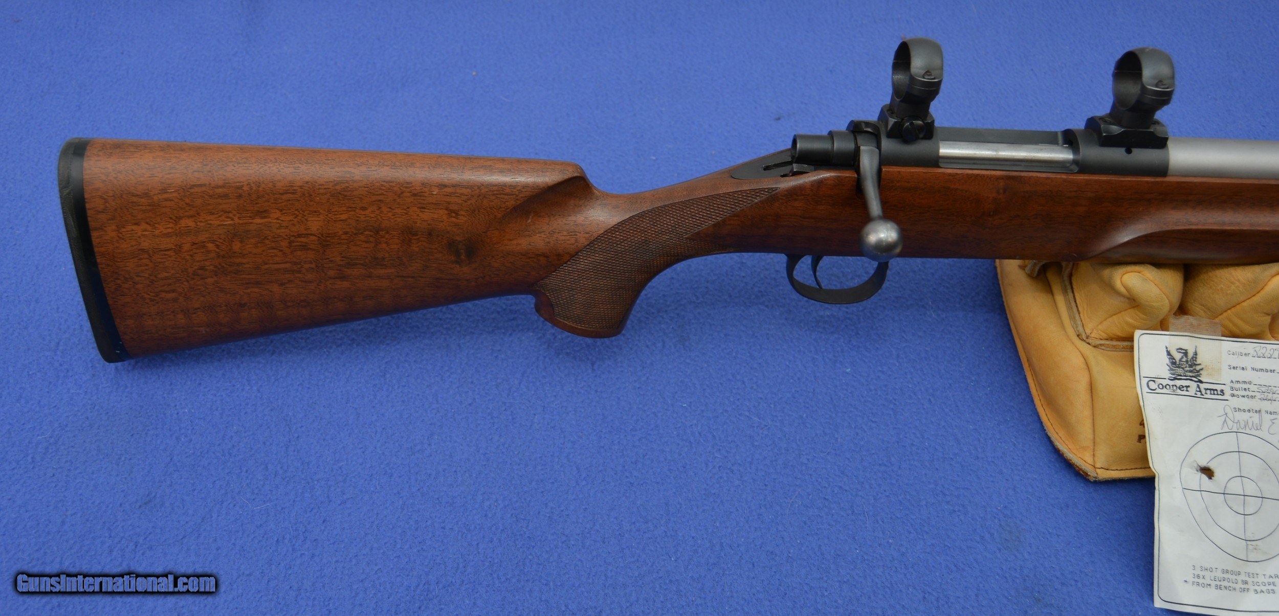 Description: Cooper Arms Model 21 222 Remington Magnum Offering this fine Cooper Arms Model 21, 222 Remington Magnum Bolt Action single shot rifle, serial VN3. See attached group shot at the factory and the factory target will ship with the rifle. Bore and chamber are excellent. UPS dropped this one and it suffered a crack in the wrist area. I had it professionally repaired and its now virtually invisible. To ensure it remains strong and solid for use my stock guy installed brass pins inside as well. Now stronger than ever. Nice tiger stripe in the stock a few slight depressions in the wood from use and safe storage. 1-inch Leupold Bases are included. Payment: Please make payment to Treys Clays Inc by Money Order, Cashier’s Check or Personal Check. We accept, American Express, Discover, MasterCard and Visa with a 3% convenience fee. PayPal can be used for some items but never firearms. Please let us know if you would like to pay via PayPal. Shipping: Yes, we can and do ship firearms into California if legal there. Shipping will be $25.00 USPS Priority Mail if east of the Mississippi, 30.00 if west and 38.00 to West Coast States. If illegal to own in your area don’t buy. Payment with US Funds from US Banks ONLY!!! Returns: Our return policy is simple. It is important to us that you are happy. Guns must not be fired or dissembled before returning them and they must be returned in the same condition as received. Notification of a return must occur with-in 3 days of delivery at your dealer. Shipping, convenience and dealer fees are not refundable and are the sole responsibility of the buyer. Ammunition cannot be returned. Lay-a-way: If desired, we offer a 30,45 or 60 day lay-a-way option on most firearms. It is 1/3 now, 1/3 in 30 days and 1/3 in 60 days. Lay-a-way firearm sales are final and if not completed the payments cannot be returned. Consigning your firearms with Treys Clays Incorporated: Presently no accepting new consignments. Selling through Houses typically costs the seller 15% and the buyer an addition 10-15% buyers premium (so 30%) and you may have to wait several months to sell and longer to receive funds. If properly priced, we will sell your firearms in a few weeks. Send us an email or give us a call and we’ll explain how easy it is for you to get top dollar. Trading: Trading for us is really just TCI buying your gun to re-sell. If you have a gun you want to trade, please email a picture and we will let you know what we can give for it. You will always get more if we sell it for you on consignment. SOLD Manufacturer: Cooper Firearms of Montana Model: 21 Serial Number: VN3 Caliber Info: 222 Remington Magnum Bore: Excellent Chambers: Excellent Condition: Excellent Metal Condition: Excellent Wood Condition: Very Good Bore Condition: Excellent Barrels: 24 inches Barrel Type: Stainless Action: Bolt Triggers: Single Stock: Walnut Butt Pad: Factory LOP: 14 Sights: nonr Manufacture Date: 1999 |