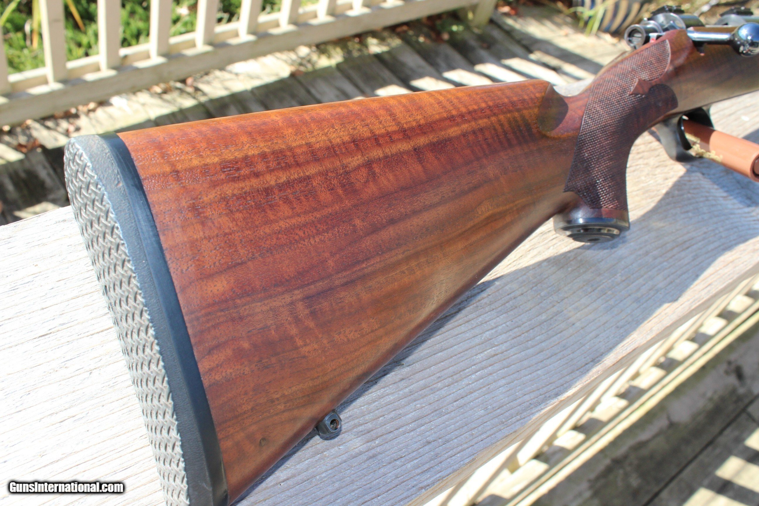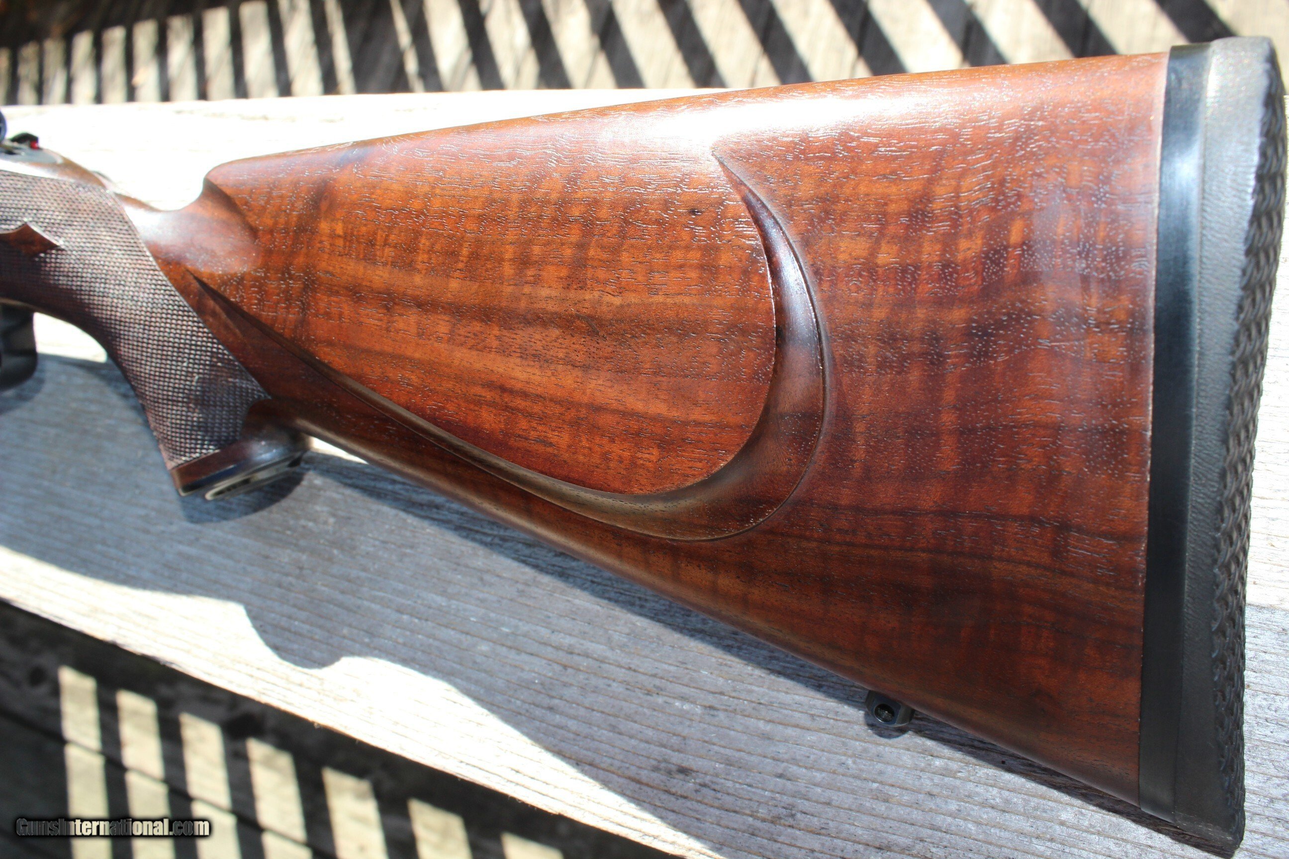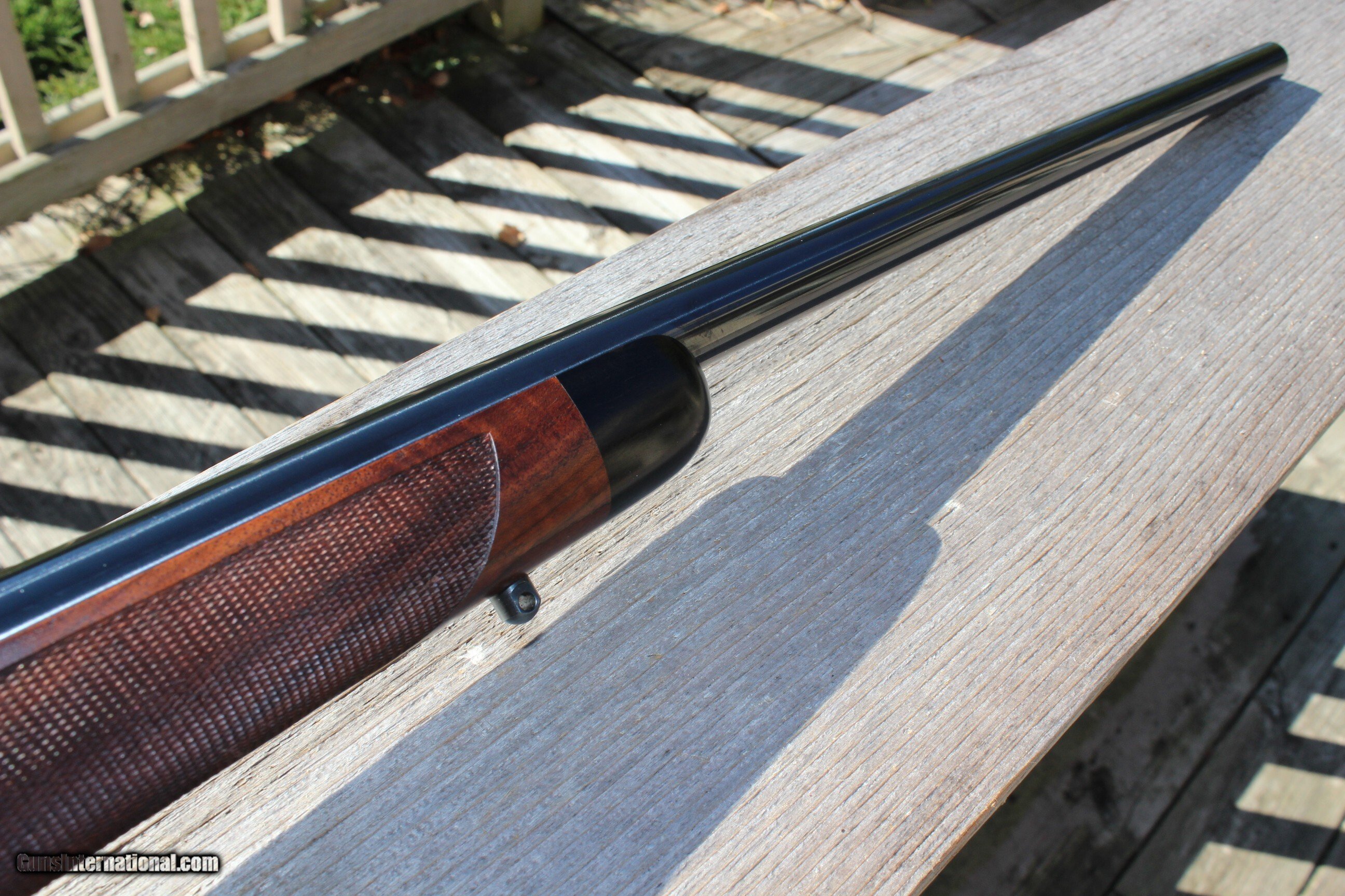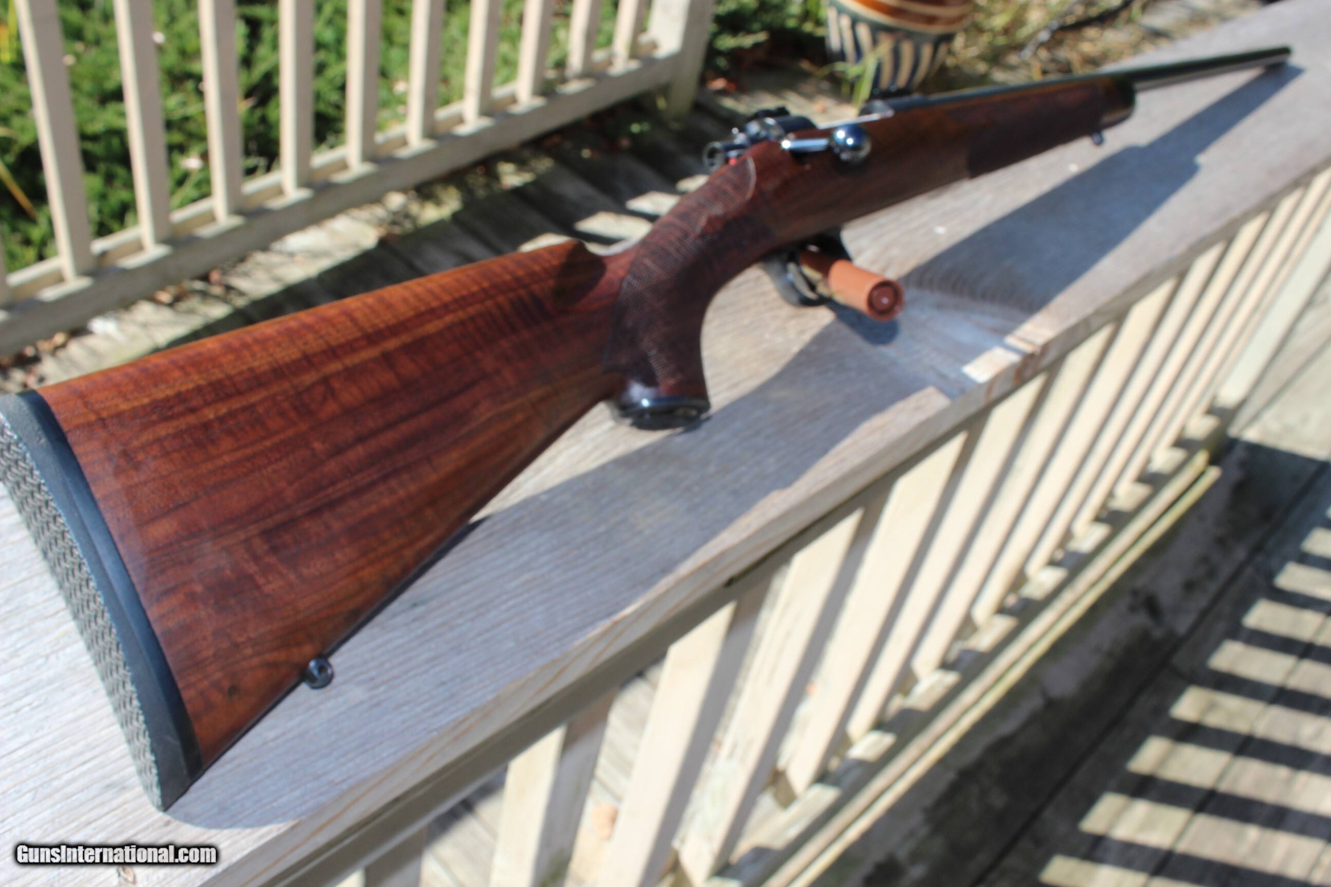 Description: COOPER ARMS of MONTANA *CUSTOM CLASSIC* Model 21 chambered in 6x45. This is an early Model 21 with a two digit serial and a prefix of "D"...which I have learned from a knowledgeable friend is the Prfix for the 6x45 caliber on Cooper's early rifles. Additionally, this is the only Cooper rifle that I have personally seen with the brass inlay in the bolt with the letters "CC" which stands for "Custom Classic". The rifle remains in excellent original condition. 6x45 is a necked up 223. Most folks that have them, love them. Very versatile chambering. Beautiful walnut stock that exhibits several shades of fiddleback, shadow line cheek piece, sharp Fleur de Lis checkering with ebony fore end tip, rubber recoil pad. Polished blued receiver, polished blued bolt handle and 24" medium weight polished blued barrel with recessed crown. Blued steel grip cap and bottom metal. Rifle balances wonderfully in the hands. Pictures don't do the rifle justice. This is a simply awesome rifle. Rifle Caliber: 6x45mm Manufacturer: COOPER ARMS of MONTANA Model: Model 21 Barrel Length: 24 Condition: Excellent Metal Condition: Excellent Wood Condition: Excellent Bore Condition: Excellent Manufacture Date: Early Cooper Rifle Price: $2,850.00 Contact Seller |