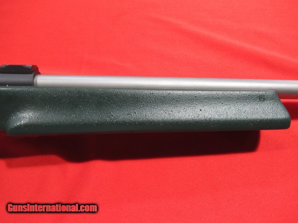 Description: Very good condition overall with some light handling wear: sage green painted stock, matte black receiver, matte sainless match grade barrel, adjustable single stage trigger, Leupold bases. Comes with the factory box and test target. SOLD |
