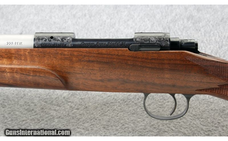 Description: This Cooper Arms Model 21 Varmint Extreme 25th. Anniversary Limited Edition, chambered in .223 Remington, is number 21 of 25 produced. This rifle features No. 2 engraving and a well figured walnut stock. It would be a fine addition to any collection. Manufactured 2014. .223 Remington SOLD Metal Condition: Excellent Wood Condition: Excellent Bore Condition: Excellent Barrels: 24 inch heavy stainless barrel Stock Dimensions: 13 3/4 inch LOP Fore End: Beavertail fore end Butt Pad: Neidner plate Weight: 8 lbs. 1 oz. Sights: Drilled and tapped for scope mounting Item Location: Lehi, UT |