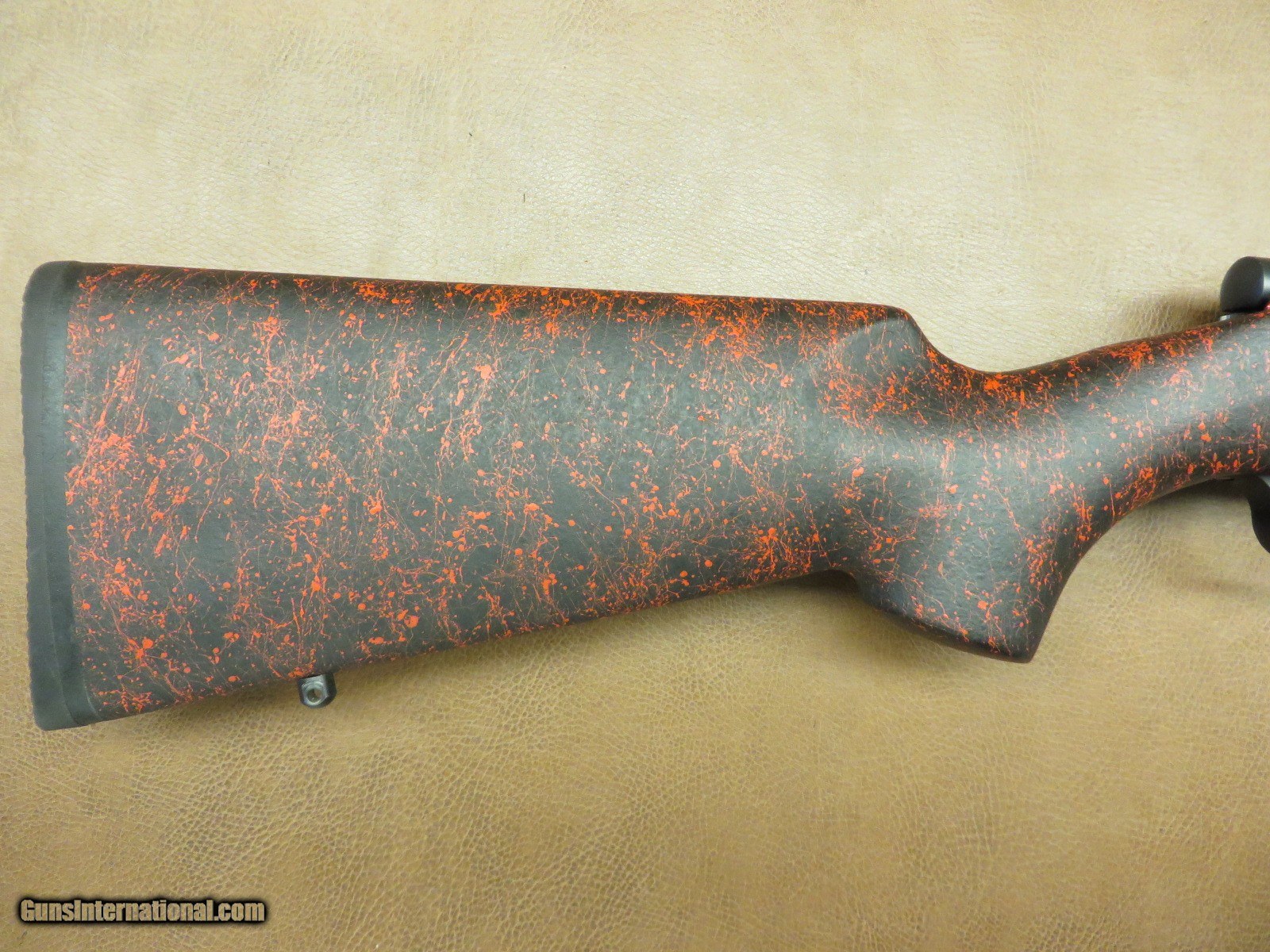 Description: .22-250 has 26 inch stainless steel heavy barrel. Matte blued action with detachable magazine and Weaver style scope mounting bases. Black synthetic stock with red spiderwebbing, vented beavertail forend, sling swivel studs, and original rubber butt pad. All in 99% near new condition. SOLD |