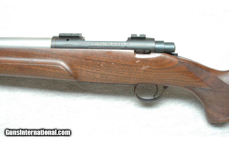 Description: Cooper Firearms Model 54 Varminter. Chambered for .220 Swift, the first factory-loaded rifle cartridge with a muzzle velocity of over 4,000 ft/s. This rifle came with a 1/2 MOA accuracy guarantee using premium ammunition. It comes with an AA Claro Walnut stock with hand checkered grip, hand rubbed oil finish, and Pachmayr recoil pad. It also has a fully adjustable, single stage trigger. .220 Swift SOLD Chambers: .220 Swift Metal Condition: Excellent Wood Condition: Very good with slight handling marks Bore Condition: Bright Barrels: "26 inch stainless steel, straight taper, premium match barrel Triggers: "Fully adjustable, single stage trigger Stock Dimensions: LOP 13.5 Inch Fore End: Smooth flat fore end for a stable rest Butt Pad: Rubber factory pad Sights: Bases for scope mounting Item Location: La Vista, NE |