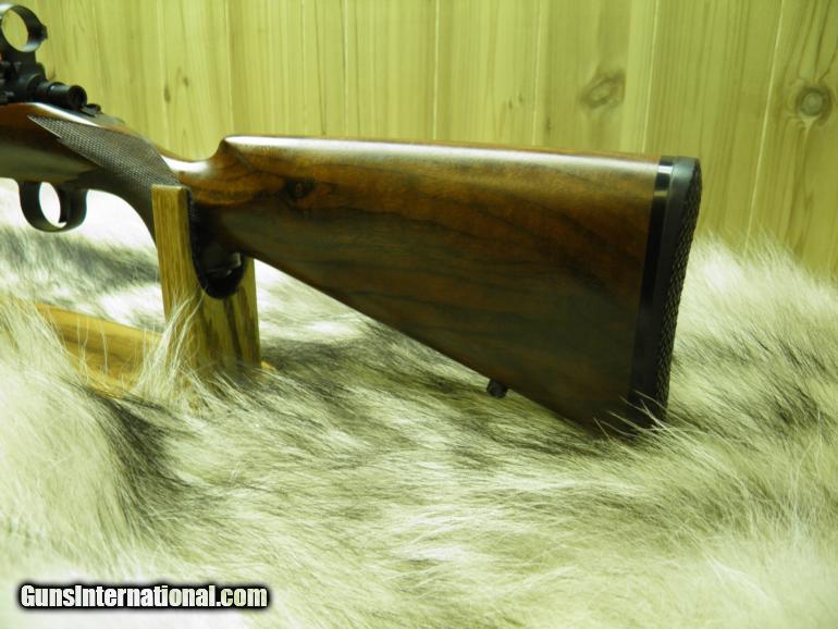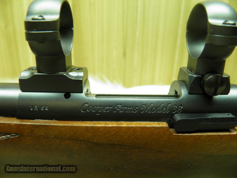 Description: COOPER FIREARMS MODEL 38 CAL: 22 HORNET, MANF: 1999, 22" MATCH GRADE BARREL, WITH A 1-16" TWIST, APPROX> WEIGHT 7 1/4 LBS, OVERALL LENGTH 39", LENGTH OF PULL 13 3/4", BOLT HAS THREE LOCKING LUGS, SINGLE SHOT ACTION,TRIGGERVERY SMOOTH AND CRISP, SAFTEY, THUMB TYPE ROCKER, BEAUTIFUL AA CLARO AMERICAN WALNUT FINISHED IN A HAND RUBBED OIL, 20 LINES PER INCH HAND CUT CHECKERING, STOCK FITTED WITH A PRESENTATION PAD METAL GRIP CAP AND SWIVEL STUDS, METAL SURFACES ARE COMPLETED IN A MATTE BLACK FINISH. "CONDITION" WOOD AND BLUE , 99.5%++, BORE NICE BRIGHT, WITH SHARP PRONOUNCED RIFLING, LEUPOLD MATTE FINISHED, BASES AND RINGS, SHOT VERY, VERY LITTLE. COOPER GUARANTEES THEIR ACCURACY TO 1/2 MOA,TRULY A BEAUTIFUL HAND-CRAFTED RIFLE. SOLD |