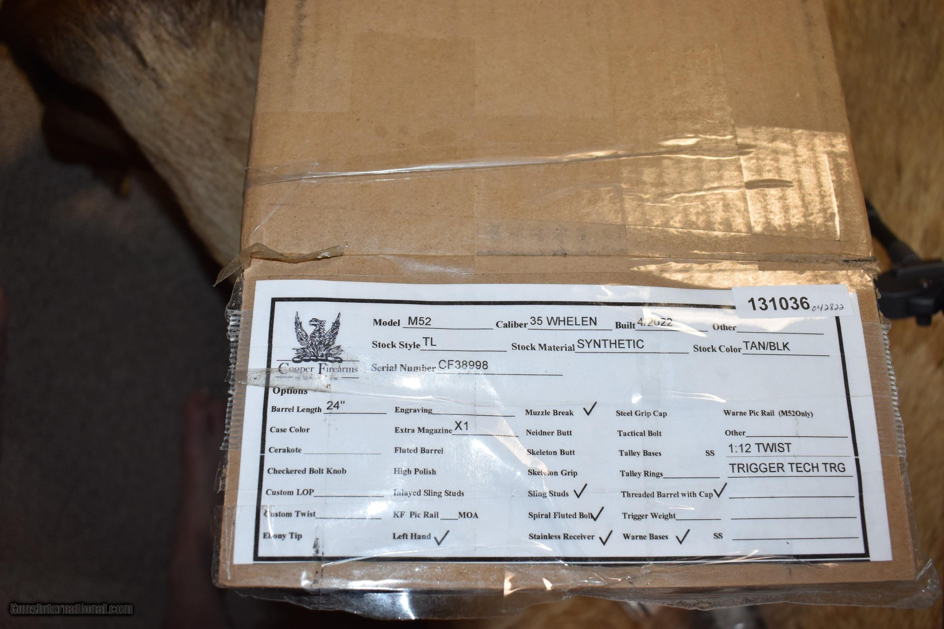 Cooper, Left Hand, Model 52, 35 Whelen, NIB