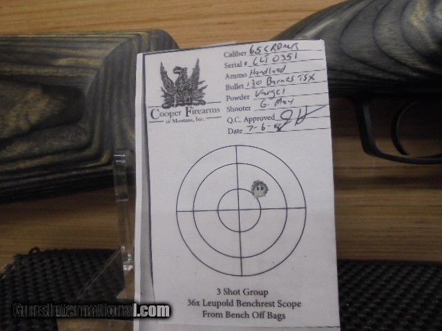 Description: USED GOOD CONDITION COOPER M-2012CLT 6.5 CREEDMOOR 22" SS FLUTED BARREL W/ MUZZLEBREAK GREY LAMINATE STOCK 5 RND MAG ****PLEASE CALL IN THE WITH THE SELLER’S INVENTORY NUMBER IF INQUIRING ABOUT A FIREARM****** WE DO NOT SHIP FIREARMS AND/OR FIREARMS’ PARTS OUT OF THE 50 UNITED STATES, SO DON’T ASK PRICE REFLECTS PAYMENT BY MONEY ORDER / CASHIERS CHECK. A 3% PREMIUM IS ADDED FOR CREDIT CARDS. WE DO ACCEPT PERSONAL OR BUSINESS CHECKS, BUT THERE IS A GRACE PERIOD OF 10 BUSINESSS DAYS ON THEM. Shipping is $40 for handgun and $30 for long gun. Shipping to Alaska and Hawaii will be more based on weight of firearm. WE DO OFFER LAYAWAY PLANS FOR 30,60, OR 90 DAYS. THERE IS A $5.00 CHARGE FOR EVERY 30 DAYS ITEM IS ON LAYAWAY. WE ALSO REQUIRE A 20% DOWN PAYMENT ON TOTAL OF LAYAWAY SALE. LAYAWAYS ARE NON- REFUNDABLE. HERE IS HOW THIS PROCESS WORKS. YOU WOULD CALL US AT 540-337-9218 WITH LISTER # TO PURCHASE THE GUN. THEN ONCE I HAVE RECEIVED PAYMENT AND AN FFL (FEDERAL FIREARMS LICENSE) FROM A LICENSED DEALER IN YOUR AREA OF YOUR CHOICE. WE WILL THEN SHIP THE GUN TO THEM. YOU WOULD THEN PICK UP THE GUN AT YOUR LOCAL DEALER AND DO PAPER WORK THERE. Please have your FFL Dealers contact information when you call. DOMINION OUTDOORS 15 ANGELA COURT FISHERSVILLE, VA 22939 540-337-9218 540-337-2422 fax M – F 9 to 6 ETZ Sat 9 – 4 ETZ ****PLEASE CALL IN THE WITH THE SELLER’S INVENTORY NUMBER**** ***PLANO HARD CASES AVAIABLE FOR PURCHASE $19.99 WITH THE PURCHASE OF A FIREARM** ****PLEASE CALL IN THE WITH THE SELLER’S *** Online prices compared to in store prices will vary. *** SOLD |