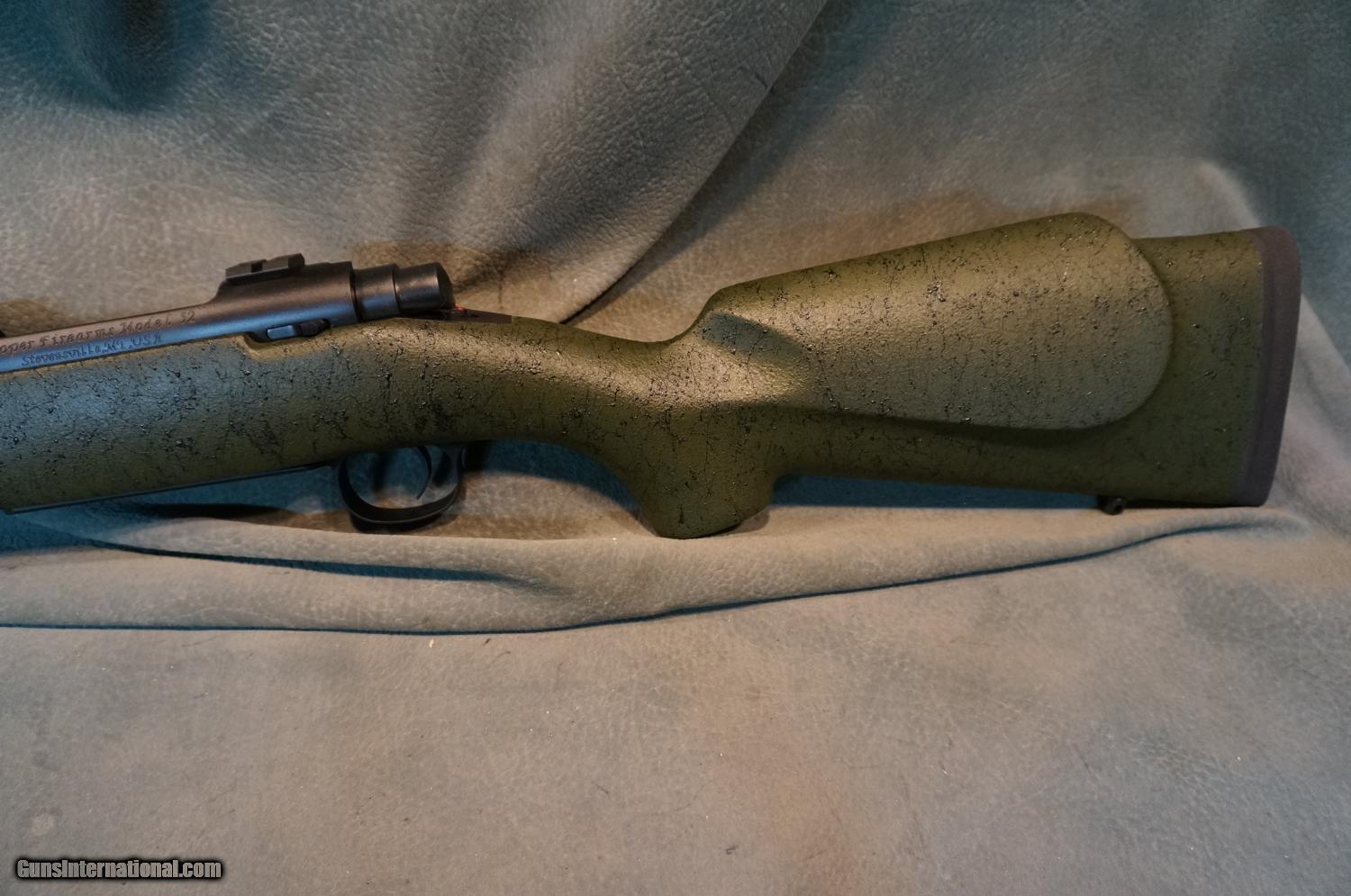 Description: Cooper Model 52 Jackson Excaliber 280AI 24" stainless fluted barrel,fluted bolt,Jackson style stock in olive with black webbing.New in the box with bases. SOLD |