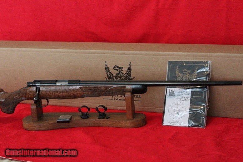Description: Cooper M57 22MAG. Custom Classic ANIB. SN: CF29993. 22” factory barrel. High polish blue. AAA Claro walnut stock with Fiddleback, cheek piece, ebony tip Point Wrap Checkering patterns. Extra Magazine. Leupold Mounts. Box and papers included. We are selling this for an estate and therefore do not know the history on this gun. Shipping $35.00 UPS Ground Service to lower 48. I am a licensed FFL dealer. A copy of my FFL will be included with the firearm(s) when shipped. The Buyer must have his/her local FFL email or fax to me before I can ship the firearm. You may also choose to include a copy with your payment. Local pick available by appointment. $35.00 back ground check fee and 5.13% Colorado tax will be added to total. PAYMENT MUST BE RECEIVED WITHIN 10 DAYS FROM END OF SALE OR WE WILL RELIST AND REPORT YOU AS A NON-PAYING . My email address is kevinweaverrifles. Fax 719-683-7453. Colorado sales tax(es) are required for Colorado residents. We accept Money order, certified cashier’s check or credit card with an additional 4% non-cash fee. Shipping fee will be added. SOLD |