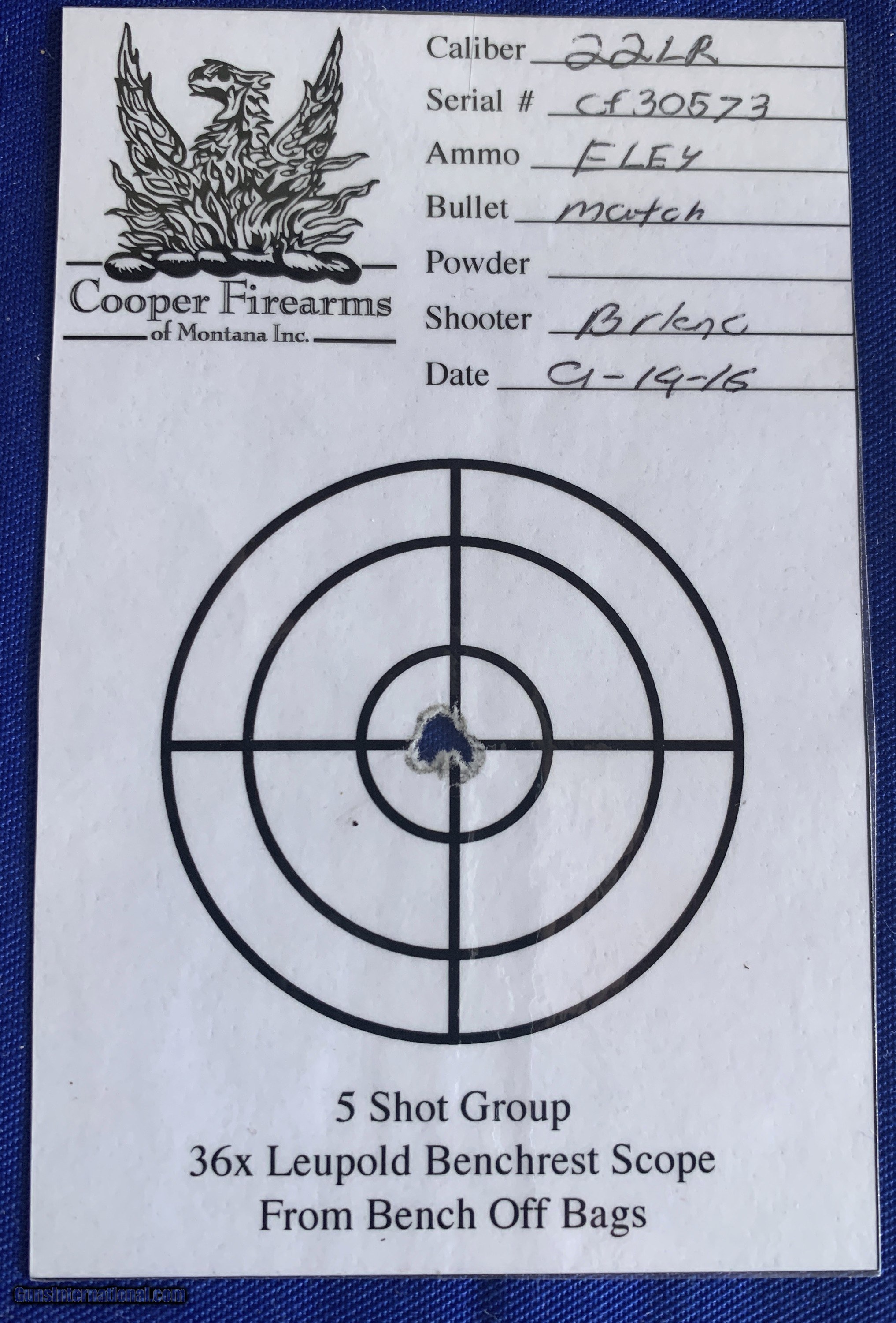 Description: Like new COOPER MODEL 57 M VARMINT 22LR. 24" stainless BBL. very nice Walnut stock , with 36 X leupold Benchrest scope ( Sold sold ) ) $ 2,450.00 + $150.00 shipped to your FFL ( ships in Hard case ) I accept for payment : Postal money orders ( ships same day ) Personal checks ( Ships in 12 days) MY BANK REQUIRES 11 BUSINESS DAYS TO GUARANTE ( ME ) FUNDS FOR CHECKS IF GUN SHIPS TO CALIFORNIA ADD $ 25 TO SHIPPING SOLD |
