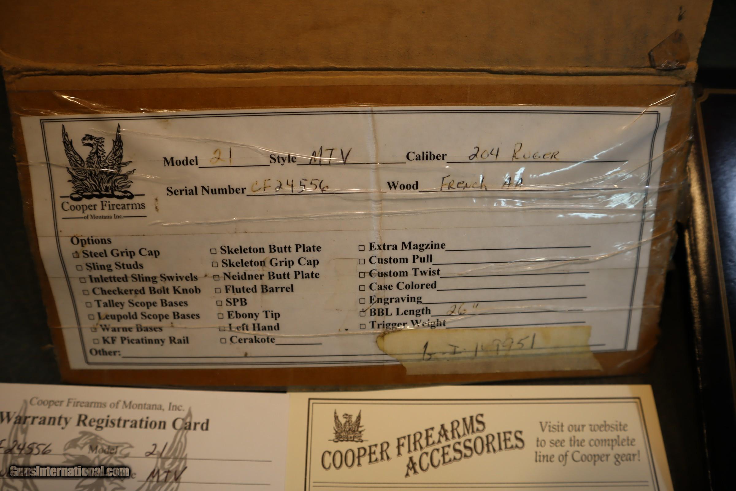 Cooper Model 21 MTV 204 Ruger w/French Walnut