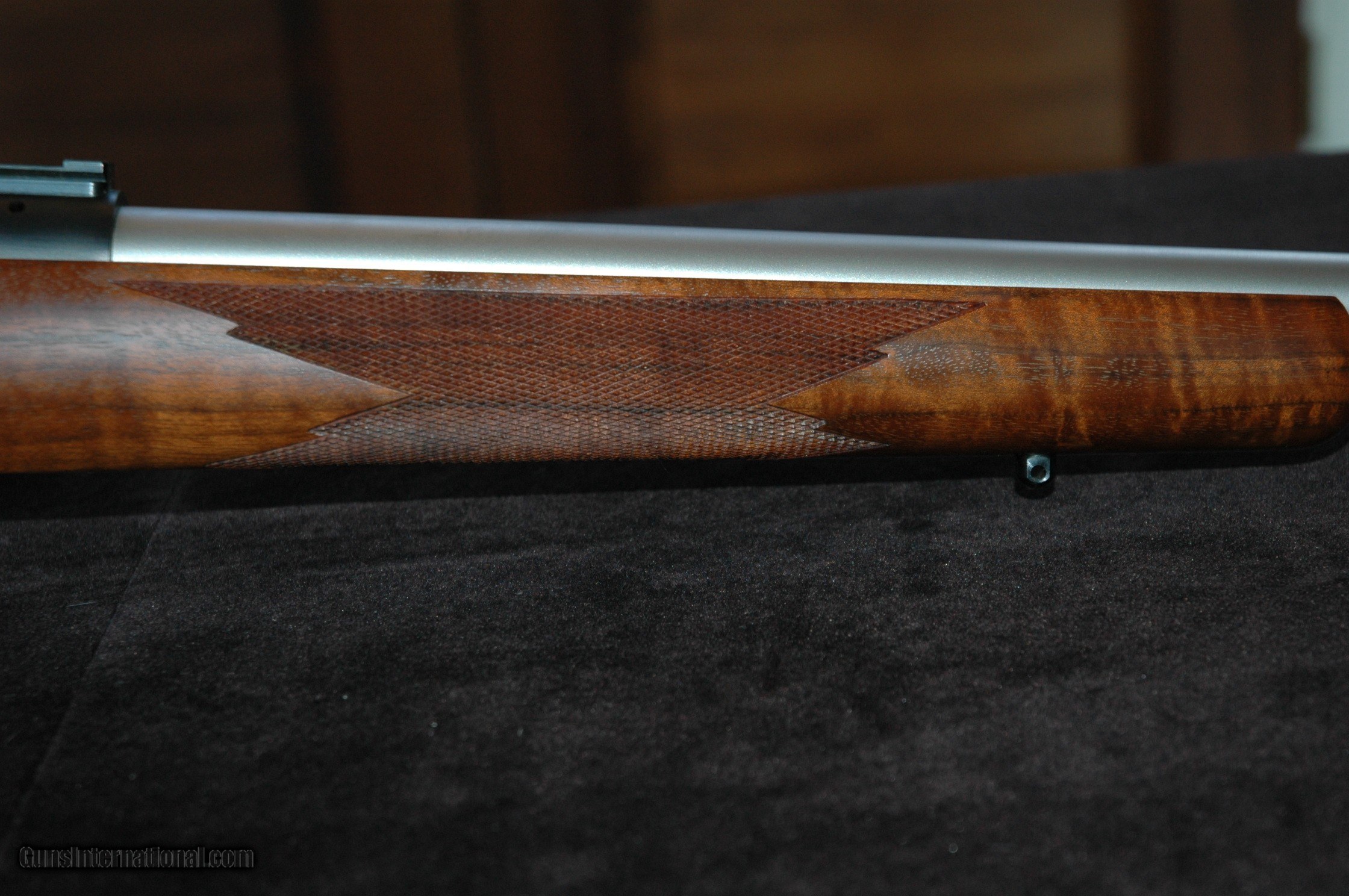 Description: I won't go into the details of this model as they are everywhere on the internet if you are not familiar. This one is a very early model and is in excellent condition with outstanding graining in the wood. There is one visual mark, please see the close up of the last photo. Looking at the bolt and overall condition, it appears to have been shot very little. Ships with Warne bases. There is no box or paperwork, just an outstanding instance of a semi custom gun. What does make this one different is the 6 point connecting panels on the piston grip and the wraparound checking on the forearm. Sold only where legal to own and you are expected to know your local laws. Shipping to the lower 47 (If you are in CA, you must have your FFL contact me before buying) will be $45. Price listed is for cash,if paying by a credit card, please add 3 1/2% and you must contact me with your info. Thanks for looking. SOLD Rifle Caliber: .243 Winchester Manufacturer: Cooper Model: 22 Barrel Length: 24 Condition: Excellent Metal Condition: Excellent Wood Condition: Excellent Bore Condition: Excellent Action: Single Shot Triggers: Adjustable Stock: Wood Weight: 8lb 6oz |