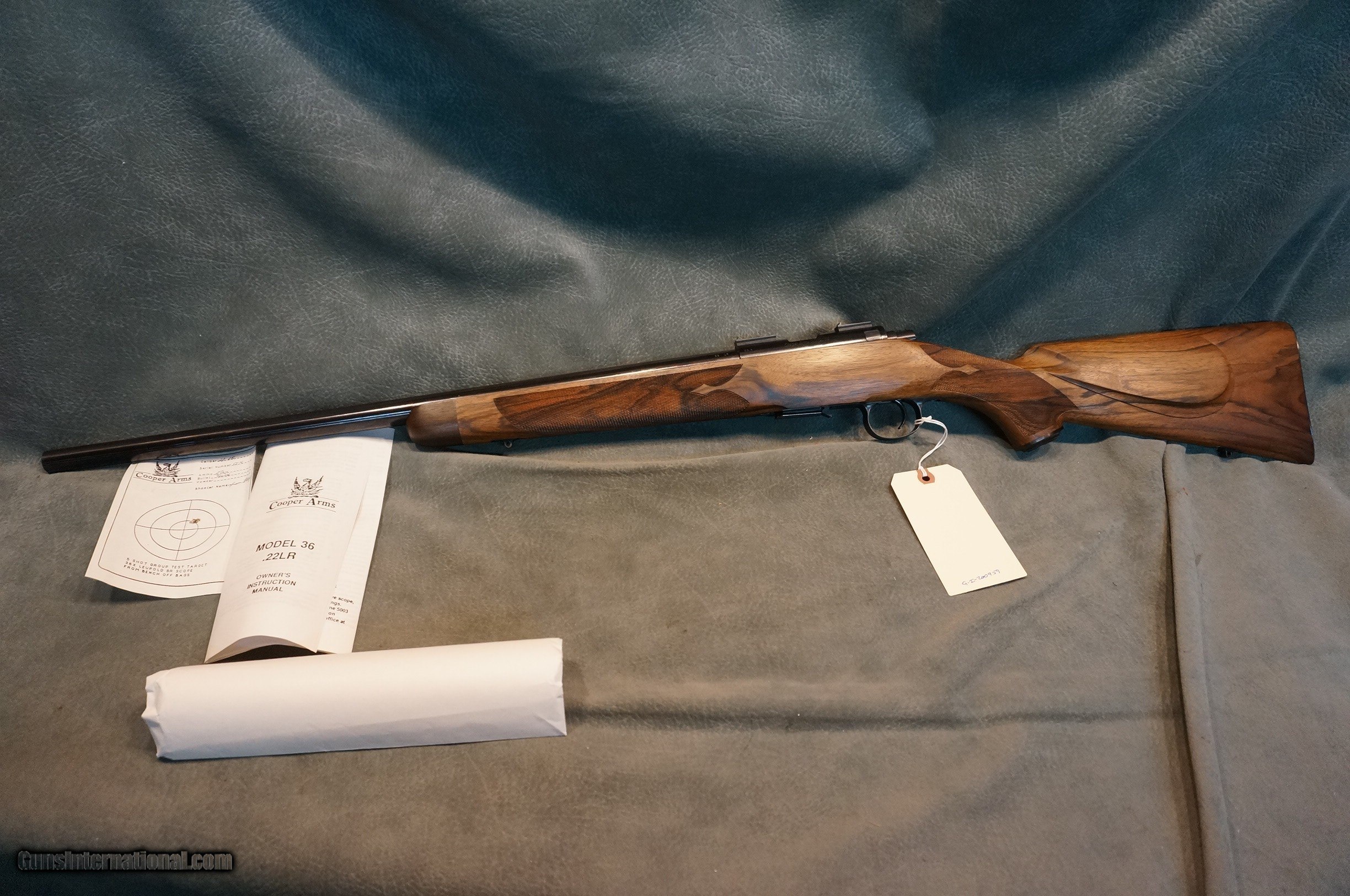 Description: Cooper Model 36 Custom Classic 22LR,serial #CC4 from the famous Earl Kelly rimfire collection,beautiful exhibition grade french walnut stock,checkpiece,wrap fluer de lis checkering,ebony forend tip,22" barrel,Neidner checkered steel buttplate,inletted swivels,steel grip cap,new in the box with papers,great gun! GUN COLLECTIONS WANTED FOR CASH! We buy, sell, consign and trade new and used firearms.We will pay finders fees and travel for large collections. This is our 45th year in business. We offer 90 day layaways with 20% down. No return on layaways. Firearms will need to be transferred through a FFL dealer. Prices reflect a cash discount. There will be 3% added to credit card sales. We trade for gold and silver. THANK YOU! SOLD |
