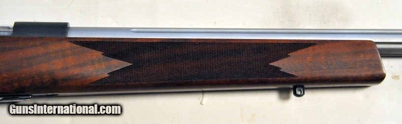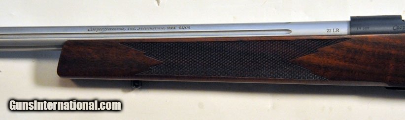 Description: Cooper Model 36IR 50-50 Ser. No. IR 105. .22 LR- 22" heavy fluted stainless steel barrel. Beautiful wood, Jewel trigger and Neidner butt plate. New in the box. SOLD |
