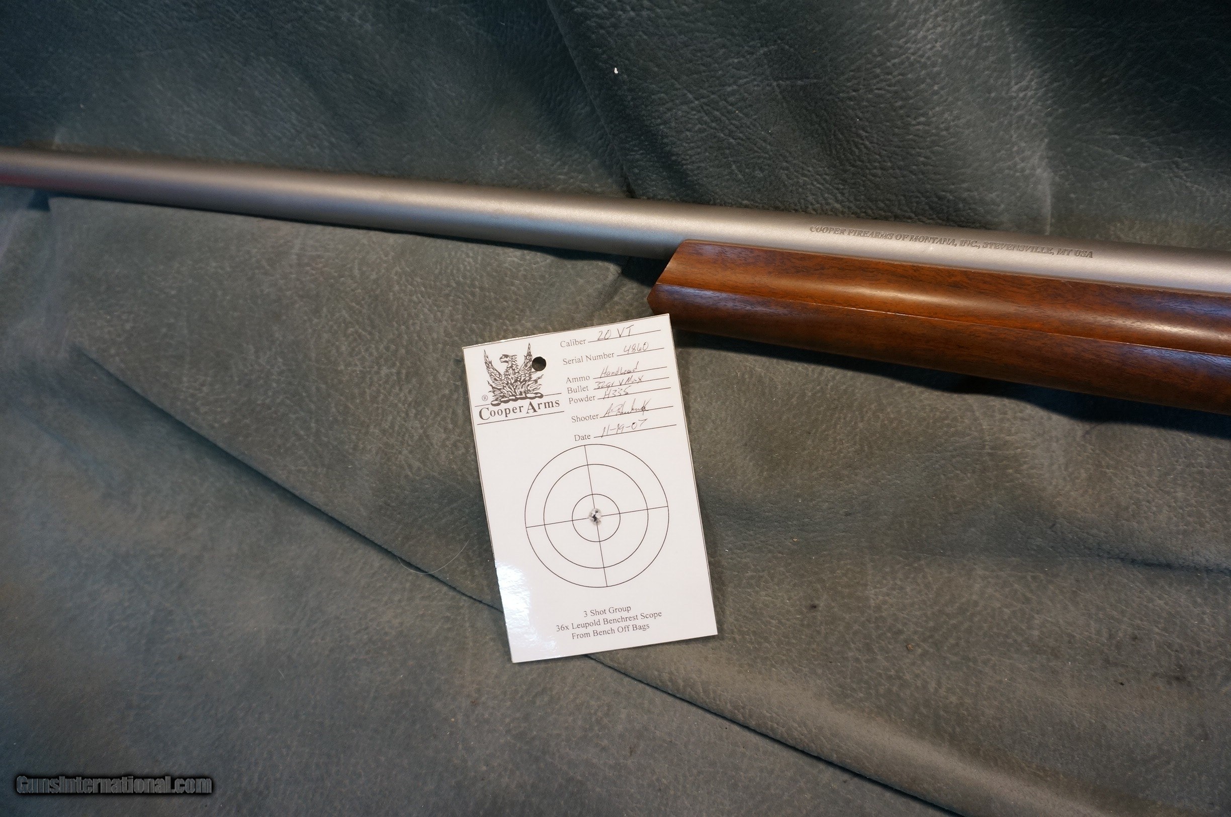 Description: Cooper Model 38 20VarTarg Varminter 24" stainless heavy barrel,nice condition,excellent bore,with box and one hole test target. GUN COLLECTIONS WANTED FOR CASH! We buy, sell, consign and trade new and used firearms. This is our 44th year in business. We offer 90 day layaways with 20% down. No return on layaways. Firearms will need to be transferred through a FFL dealer. Prices reflect a cash discount. There will be 3% added to credit card sales. We trade for gold and silver. THANK YOU! SOLD |