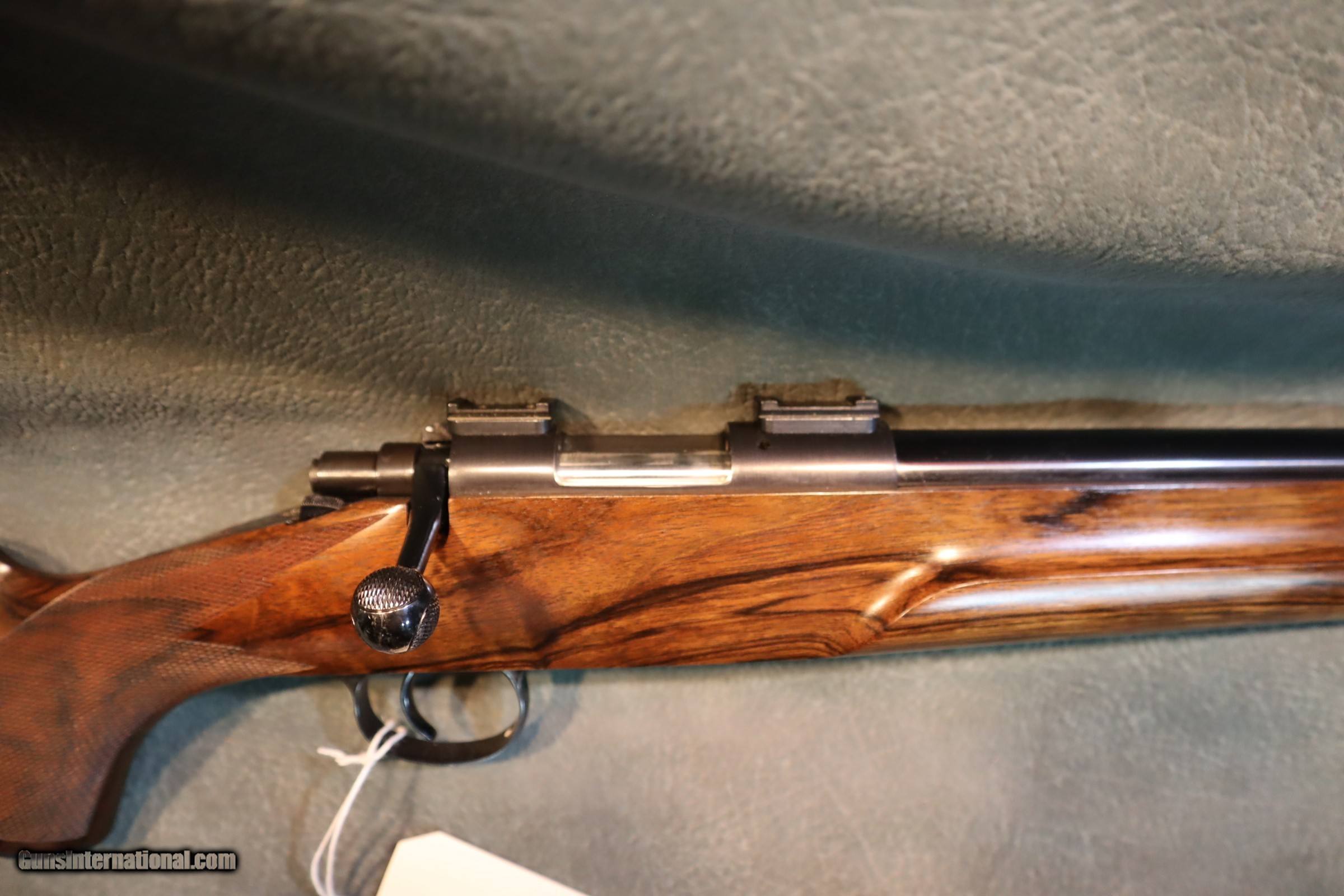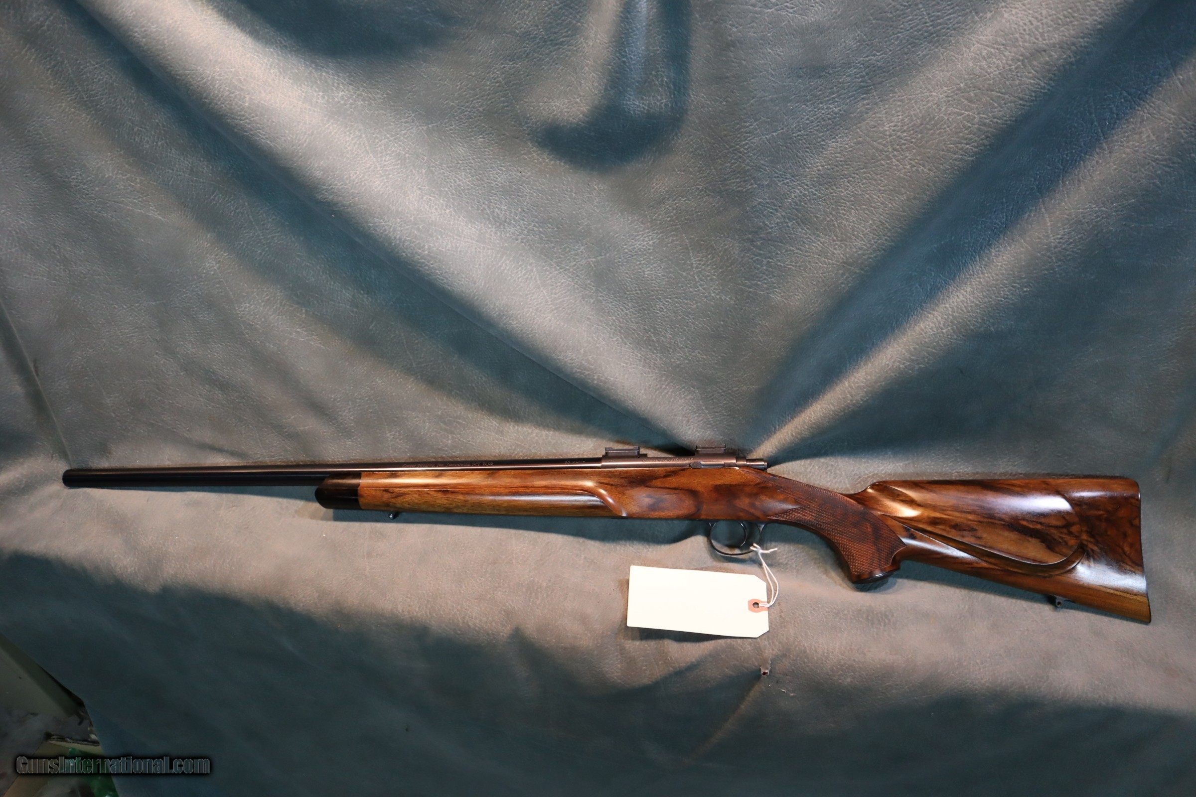 Description: Cooper Model 38 Deluxe Varmint Extreme 22K Hornet,24" heavy barrel,upgraded high polish blued finish,outstanding French Walnut stock with dark figure,cheekpiece,ebony forend tip,skeleton grip cap,inletted swivels and checkered bolt knob,very fine condition with box and Talley bases. GUN COLLECTIONS WANTED FOR CASH! We buy, sell, consign and trade new and used firearms.We will pay finders fees and travel for large collections. This is our 48th year in business. We offer 90 day layaways with 20% down. No return on layaways. Firearms will need to be transferred through a FFL dealer. Prices reflect a cash discount. There will be 3% added to credit card sales. We trade for gold and silver. THANK YOU! SOLD |