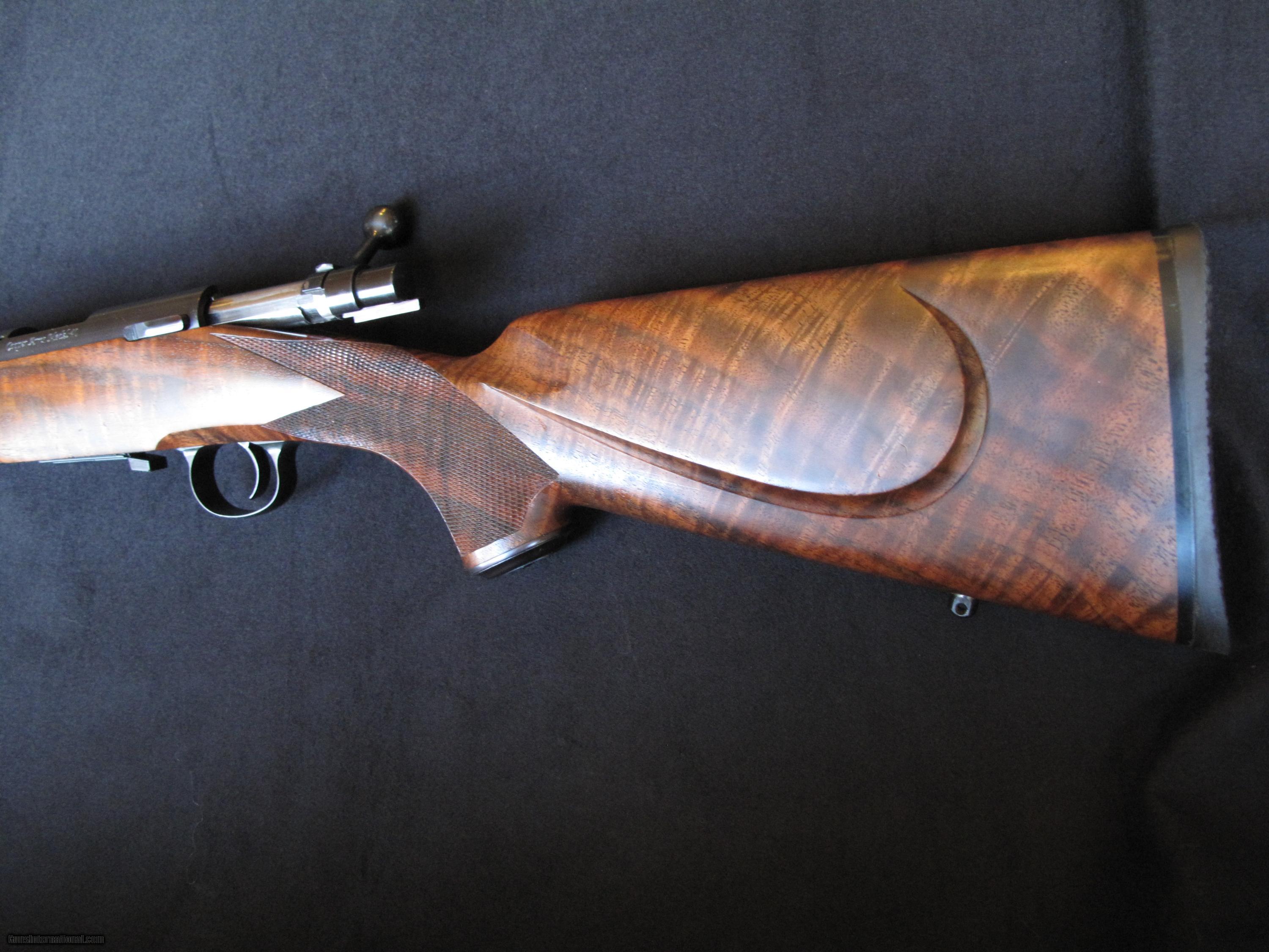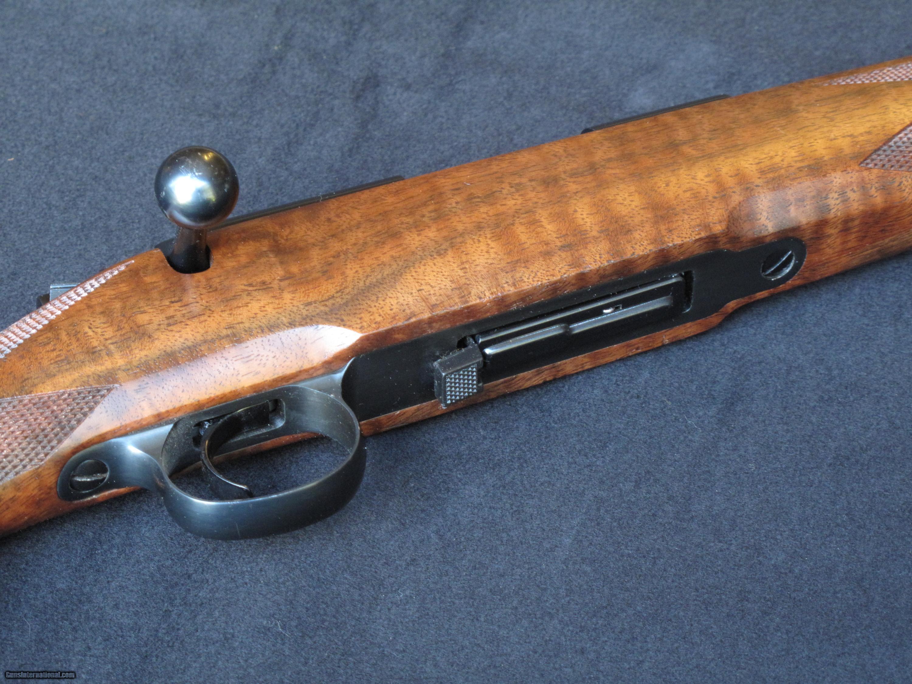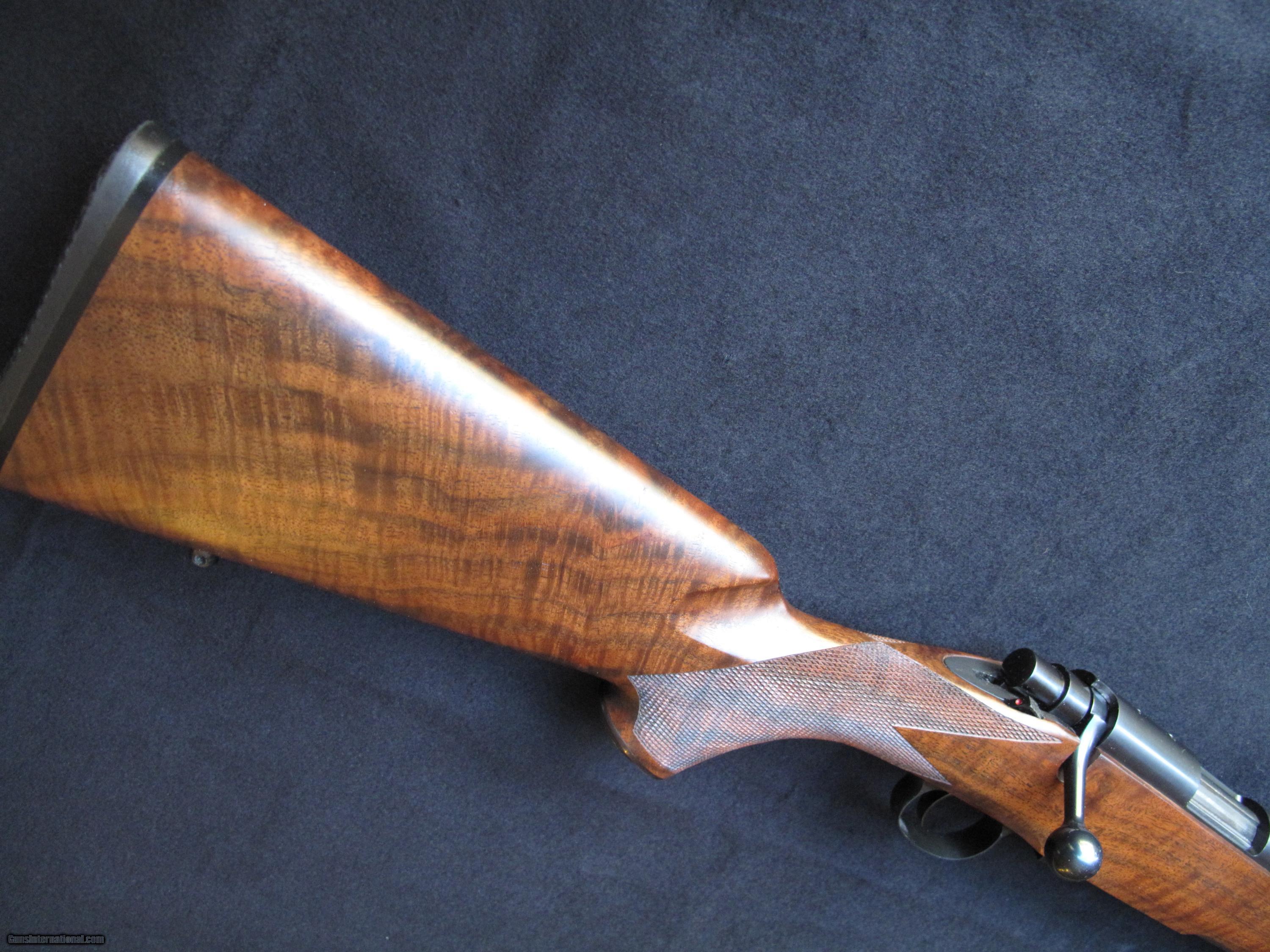 Description: Cooper Model 40 in the rare 22 Hornet, 24" factory target conture barrel, appears test fired only. Factory drilled for a scope, Rosewood tipped stock, LOP 13 1/5" SR#R1xx SOLD |