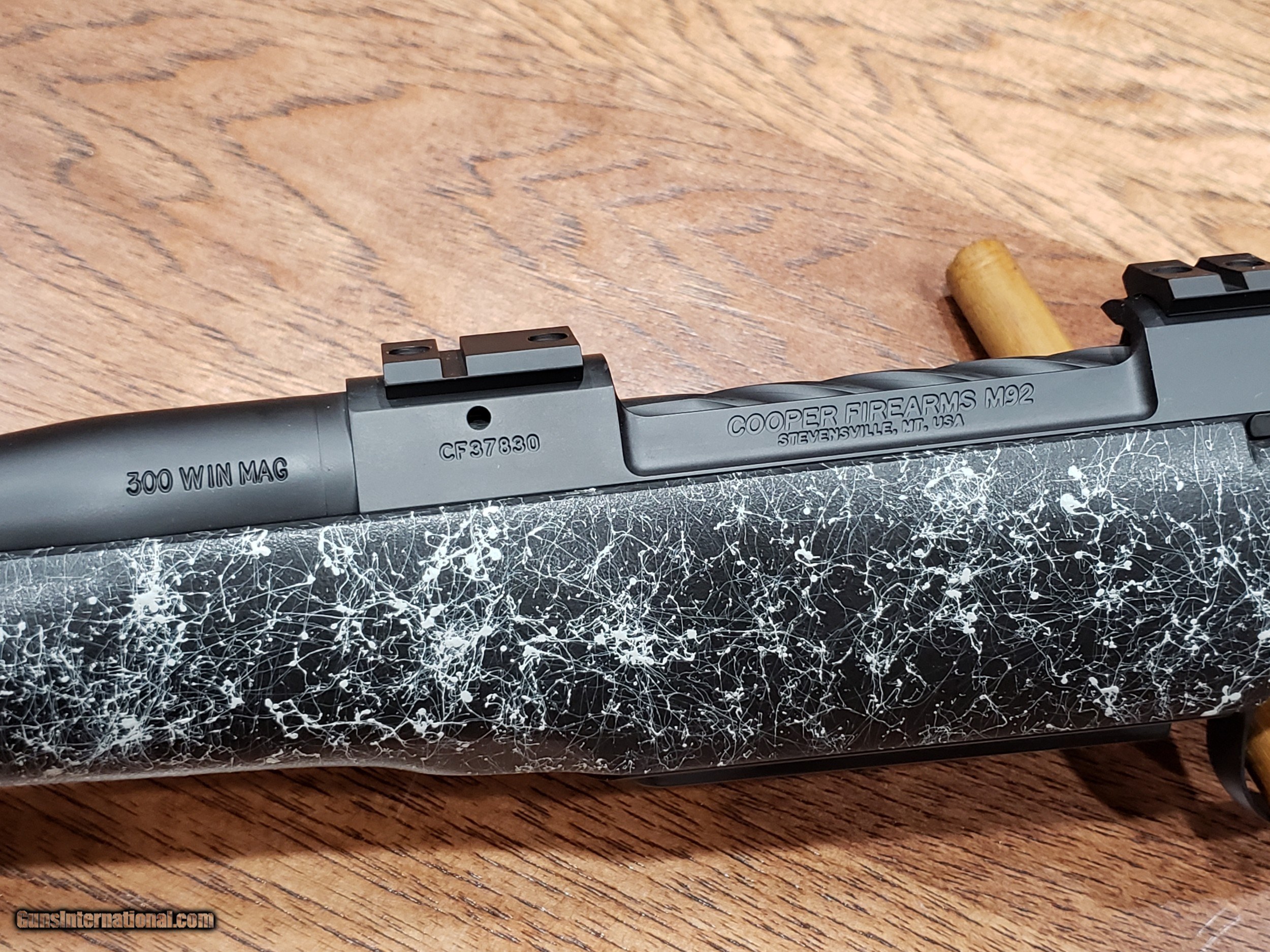 SOLD Manufacturer: Cooper Model: Model 92 Backcountry Serial Number: CF37830 Caliber Info: 300 Win Mag Condition: Brand new Barrels: 26 in Barrel Type: Stainless Fluted Chrome-moly Action: Bolt Action Stock: Synthetic Grey Webbing Butt Pad: Rubber Finish: Graphite Black Cerakote Weight: 5 lbs 12 oz Manufacture Date: 2019 Case: Factory Box |