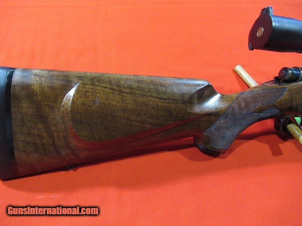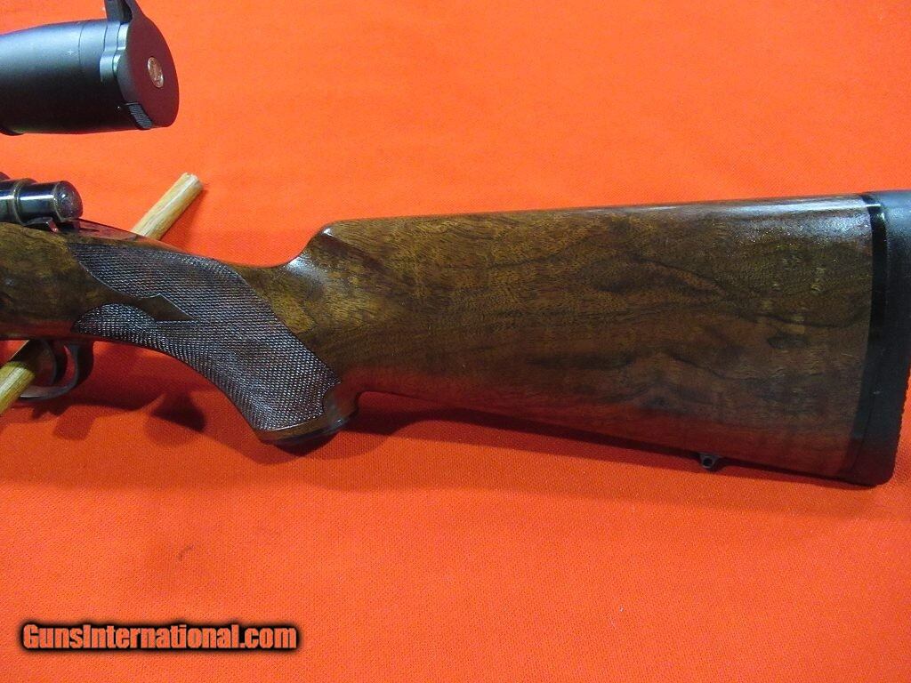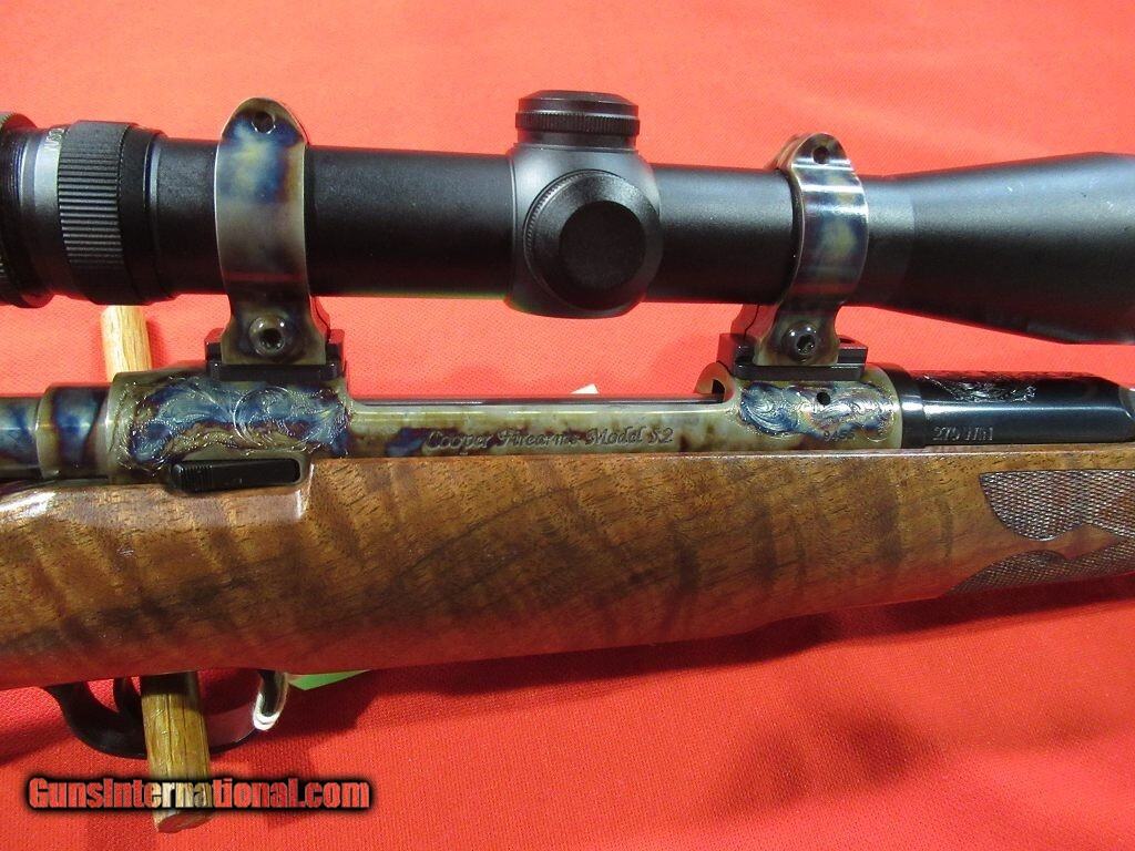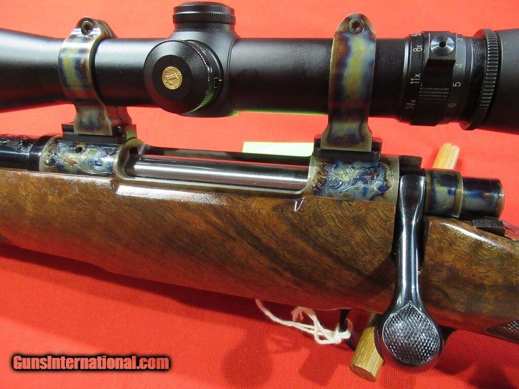 Description: Cooper Model 52 Custom Classic -- Color case hardened receiver with factory scroll engraved receiver, color case hardened Talley Rings, octagonal barrel, case hardened fully engraved floorplate, shadow-line cheekpiece, inletted sling swivels, checkered bolt knob, and ebony forend tip. This rifle is topped with a Leuplod VX-3 4.5-14x40mm. Near new condition with a few handling marks to the wood. This is a beautiful rifle overall. Price: $6,995.00 Contact Seller |