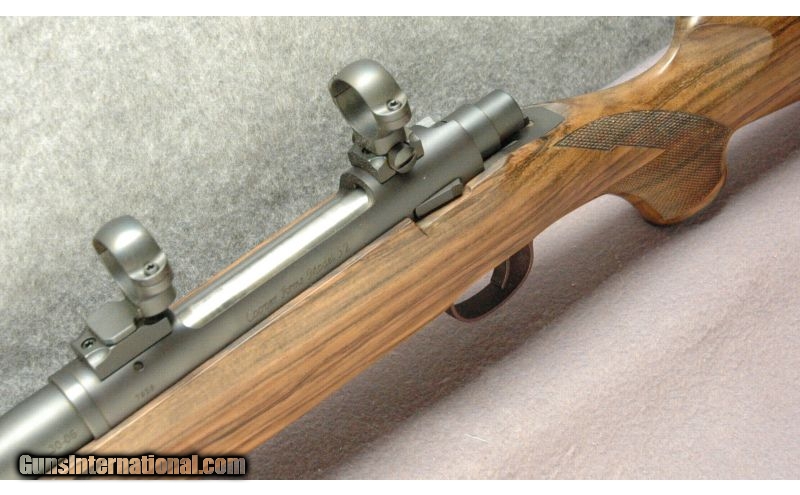 Description: SOLD Caliber Info: .30-06 Metal Condition: Excellent, Appears As New Wood Condition: Stock is Excellent, Appears As New Bore Condition: Bright Barrels: 24 Stock: Premium English Walnut, Natural Finish Fore End: Checkered Butt Pad: Pachmayr Pad Weight: 7 Lbs 10 ozs Sights: 1" Scope Rings Installed Extras: With one mag, no box Item Location: La Vista, NE |
