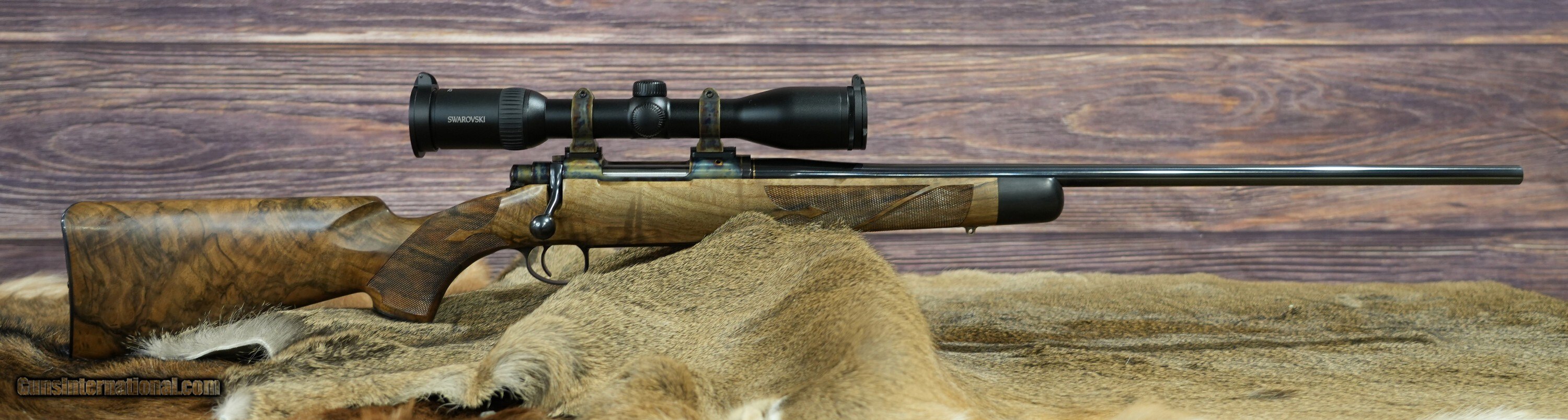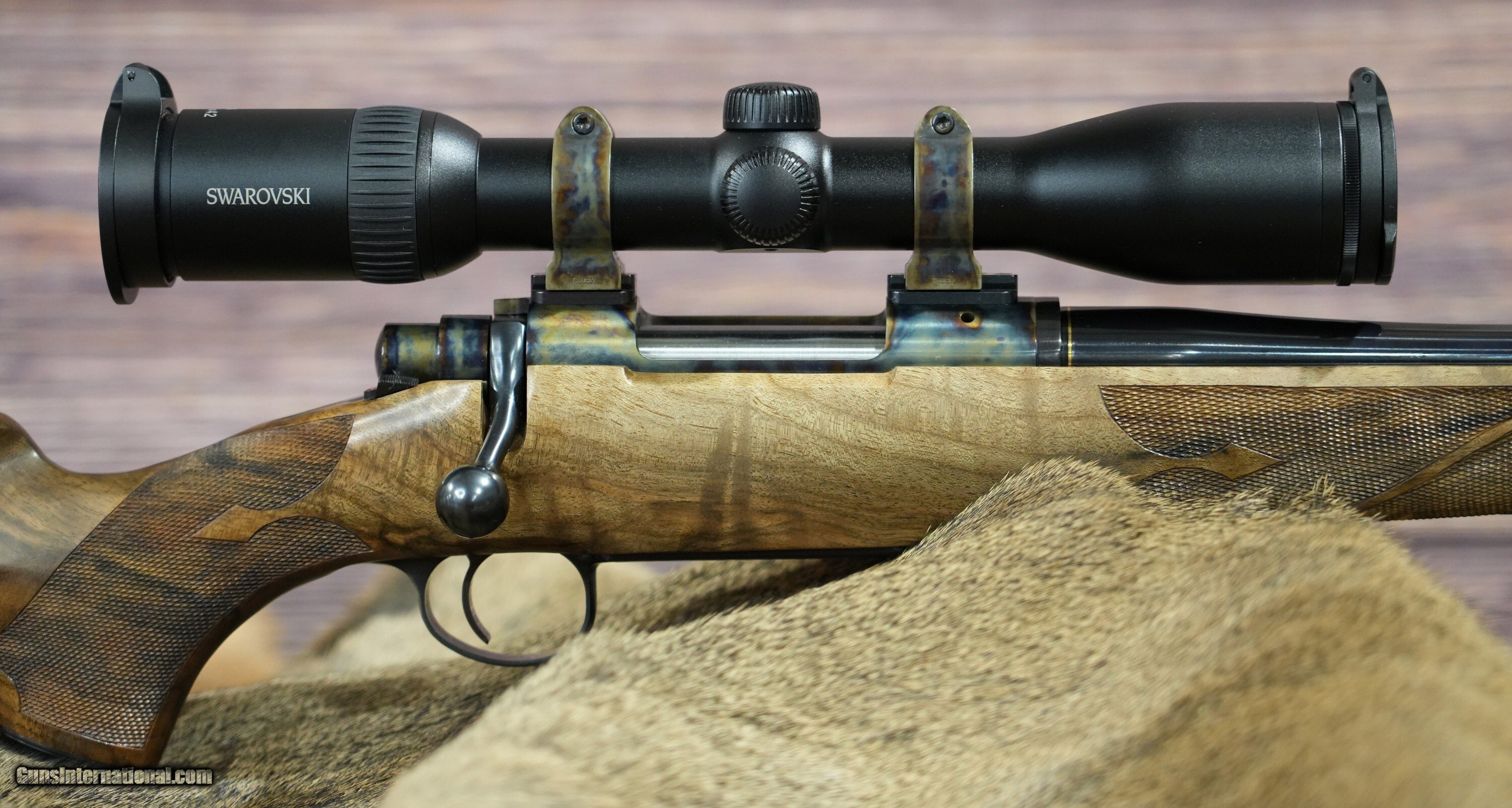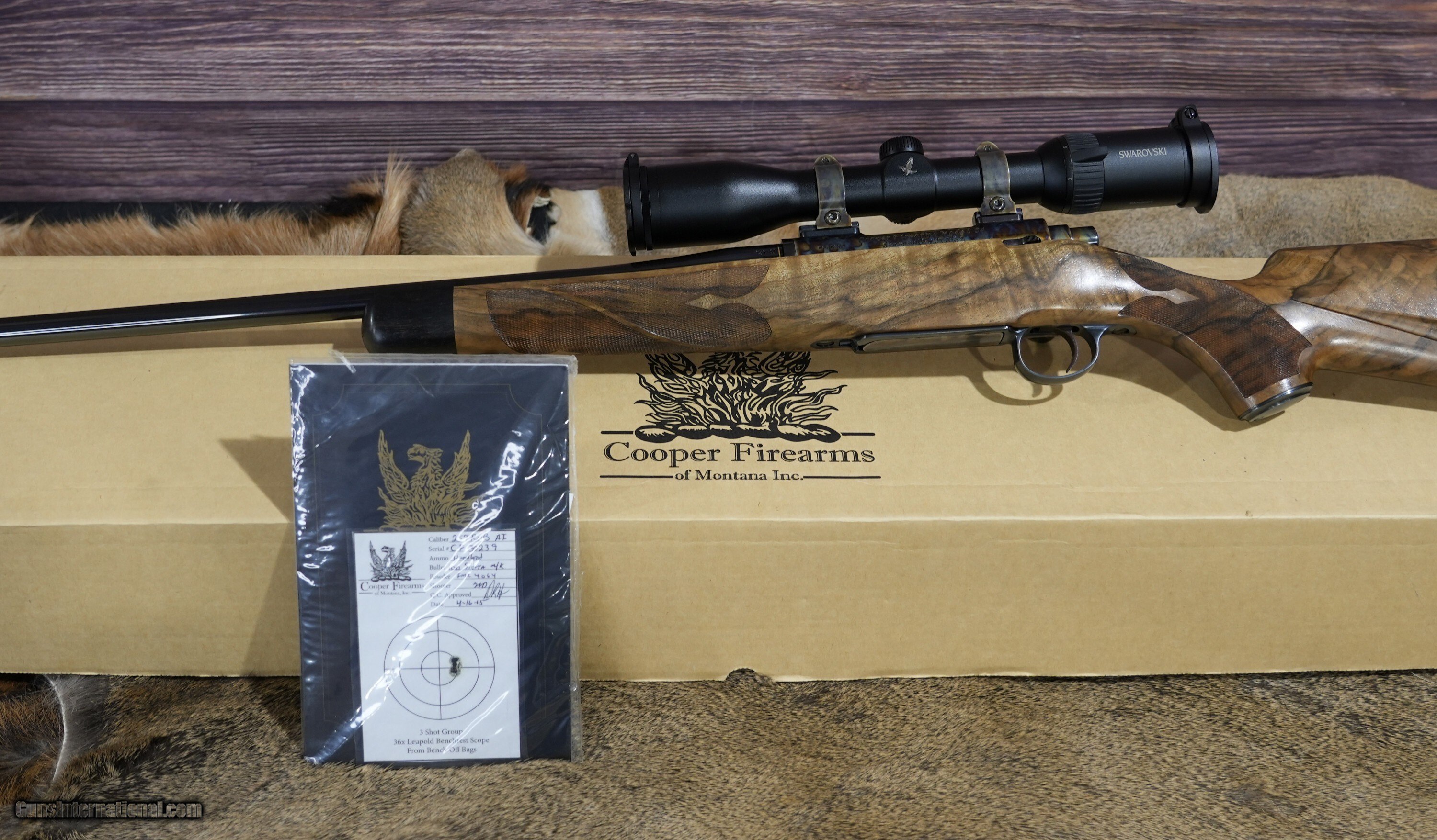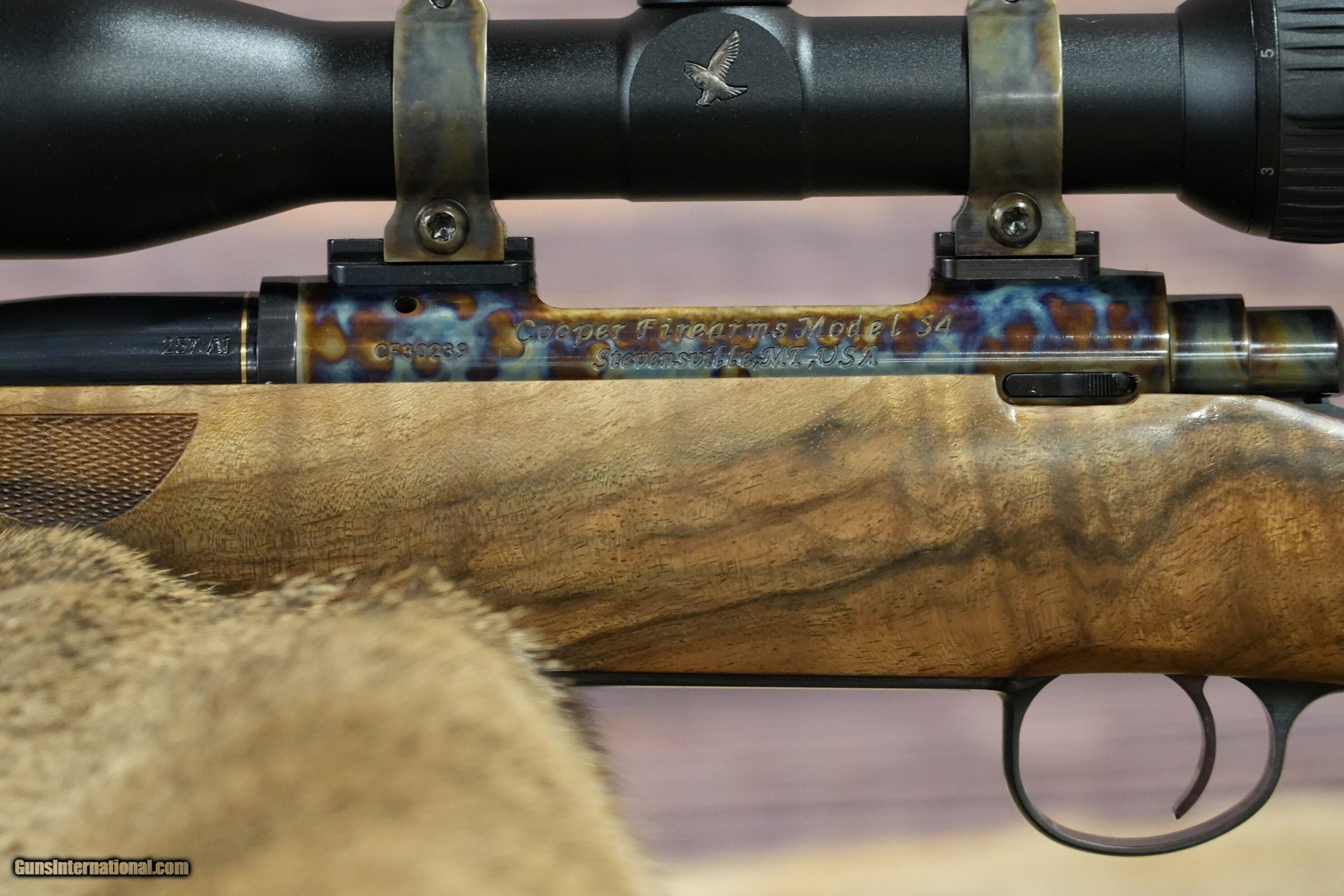 Description: Cooper Model 54 257 Ackley Improved. Custom ordered with hand picked Exhibition Turkish Walnut. Color Case on receiver, rings, and magazine. Skeleton butt plate and one 24 karat gold ring inlay on the barrel in front of the receiver. Swarovski Z6 1.7-10X42 with BRH reticle. You can't get a Cooper like this anymore! Factory box and target included. Rifle Caliber: .257 Roberts Improved Price: $8,789.00 Contact Seller |