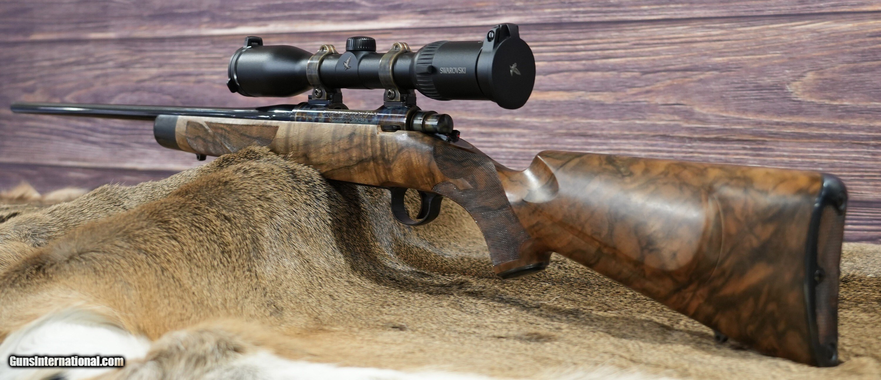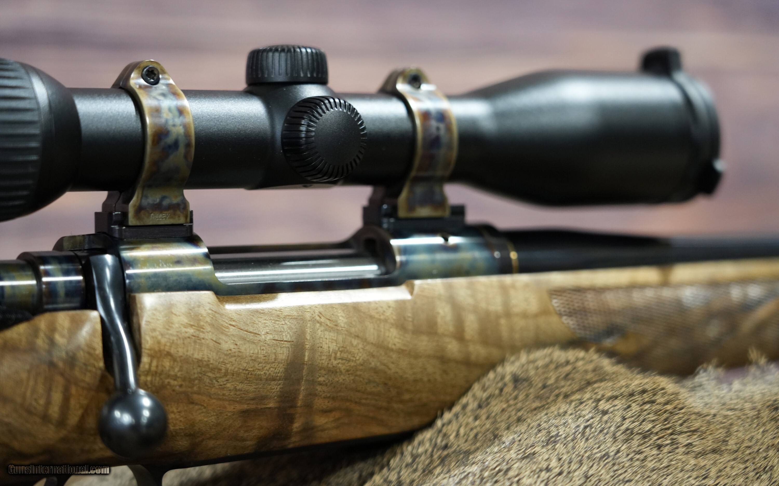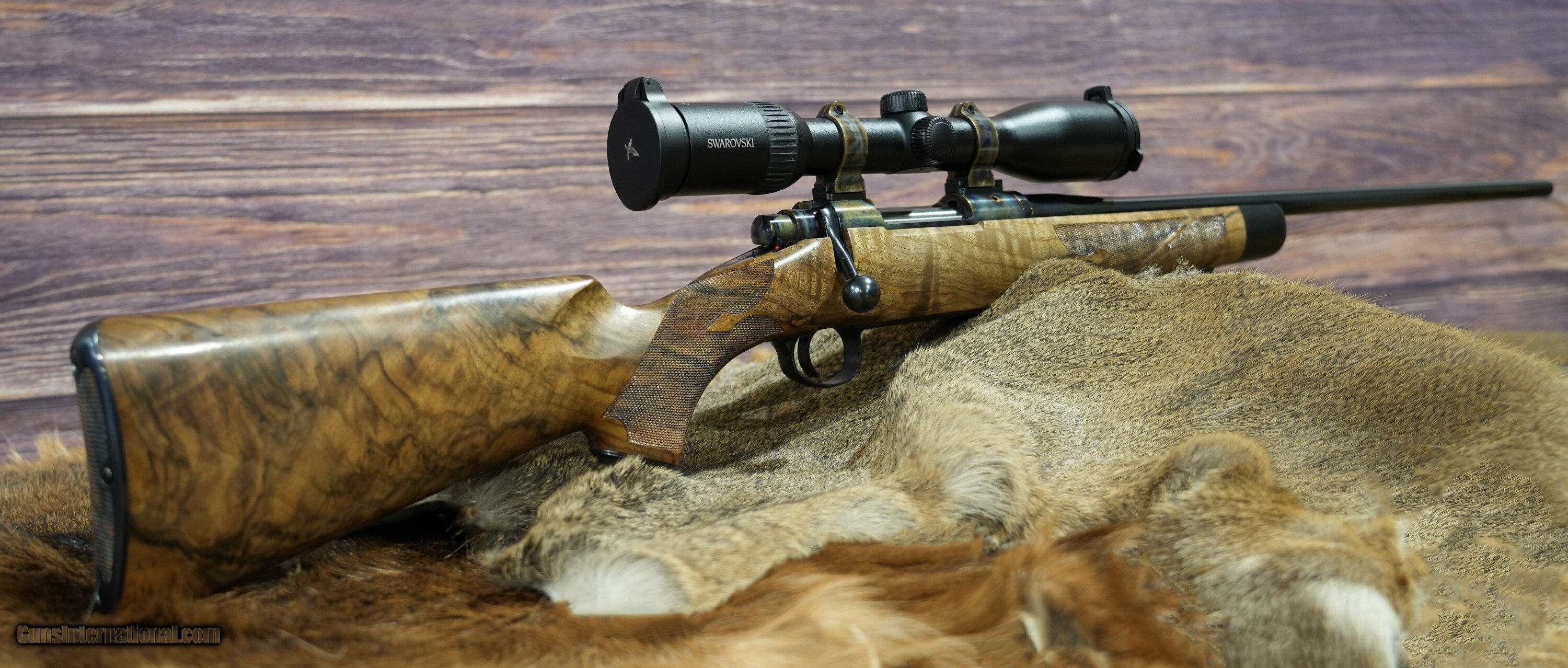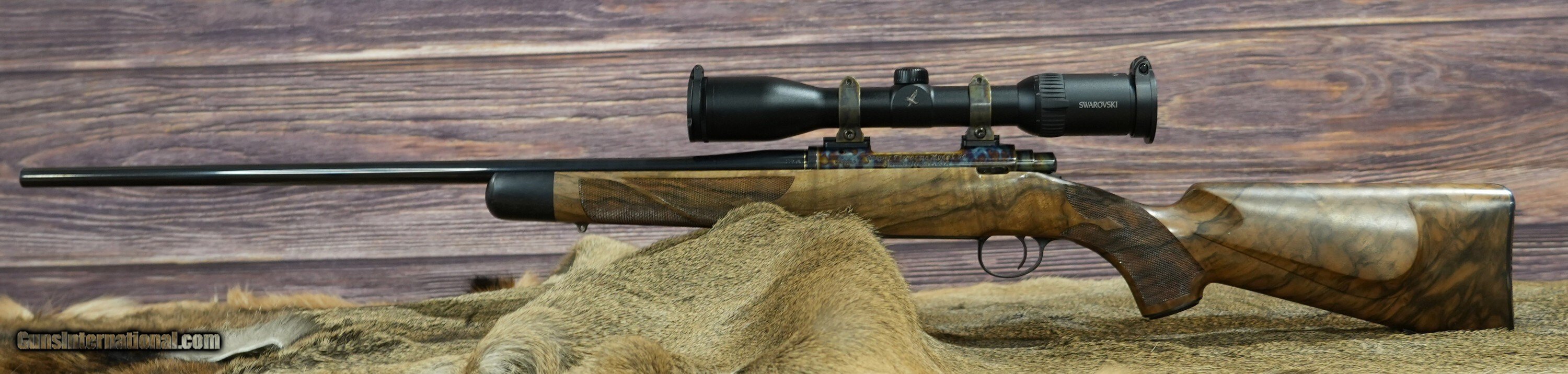 Description: Cooper Model 54 257 Ackley Improved. Custom ordered with hand picked Exhibition Turkish Walnut. Color Case on receiver, rings, and magazine. Skeleton butt plate and one 24 karat gold ring inlay on the barrel in front of the receiver. Swarovski Z6 1.7-10X42 with BRH reticle. You can't get a Cooper like this anymore! Factory box and target included. Rifle Caliber: .257 Roberts Improved Price: $8,789.00 Contact Seller |